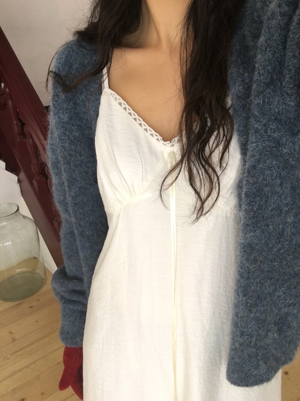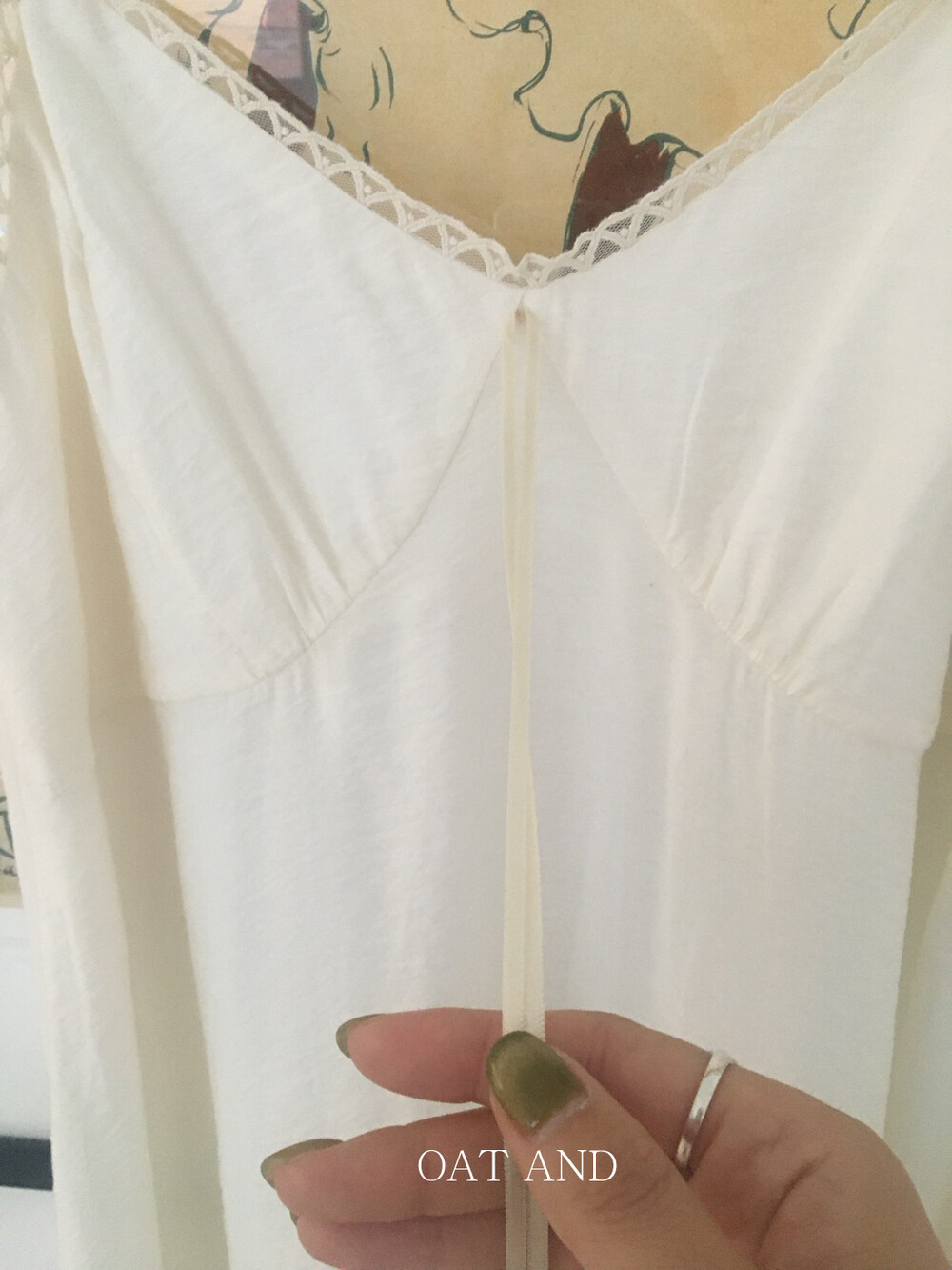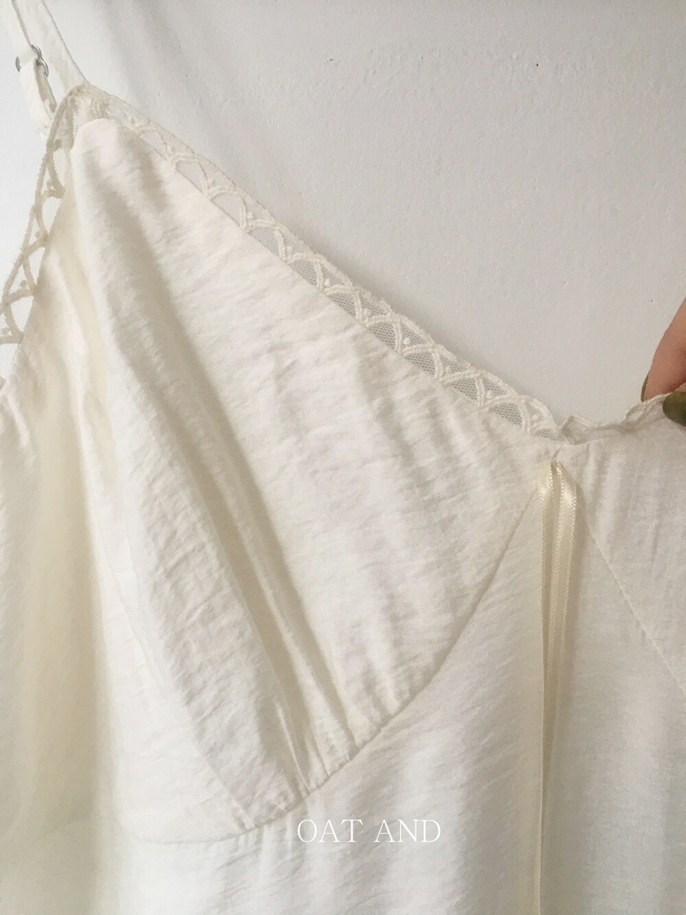 넥 라인과 암홀까지 레이스 디테일이 더해지고, 가슴 부분에 다트와 절개선이 있어 부드럽고, 몸이 더 슬림해 보이는 느낌이 듭니다.