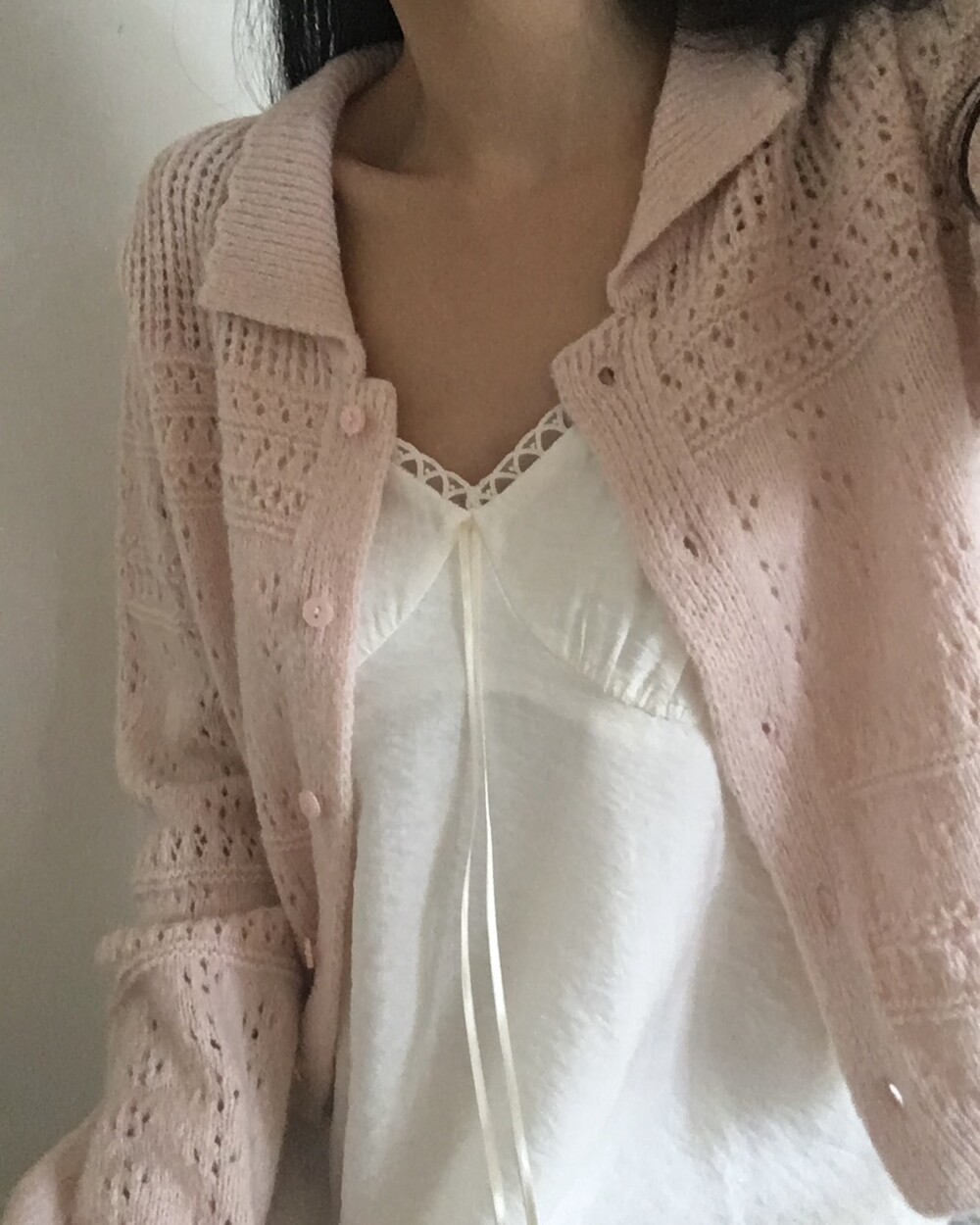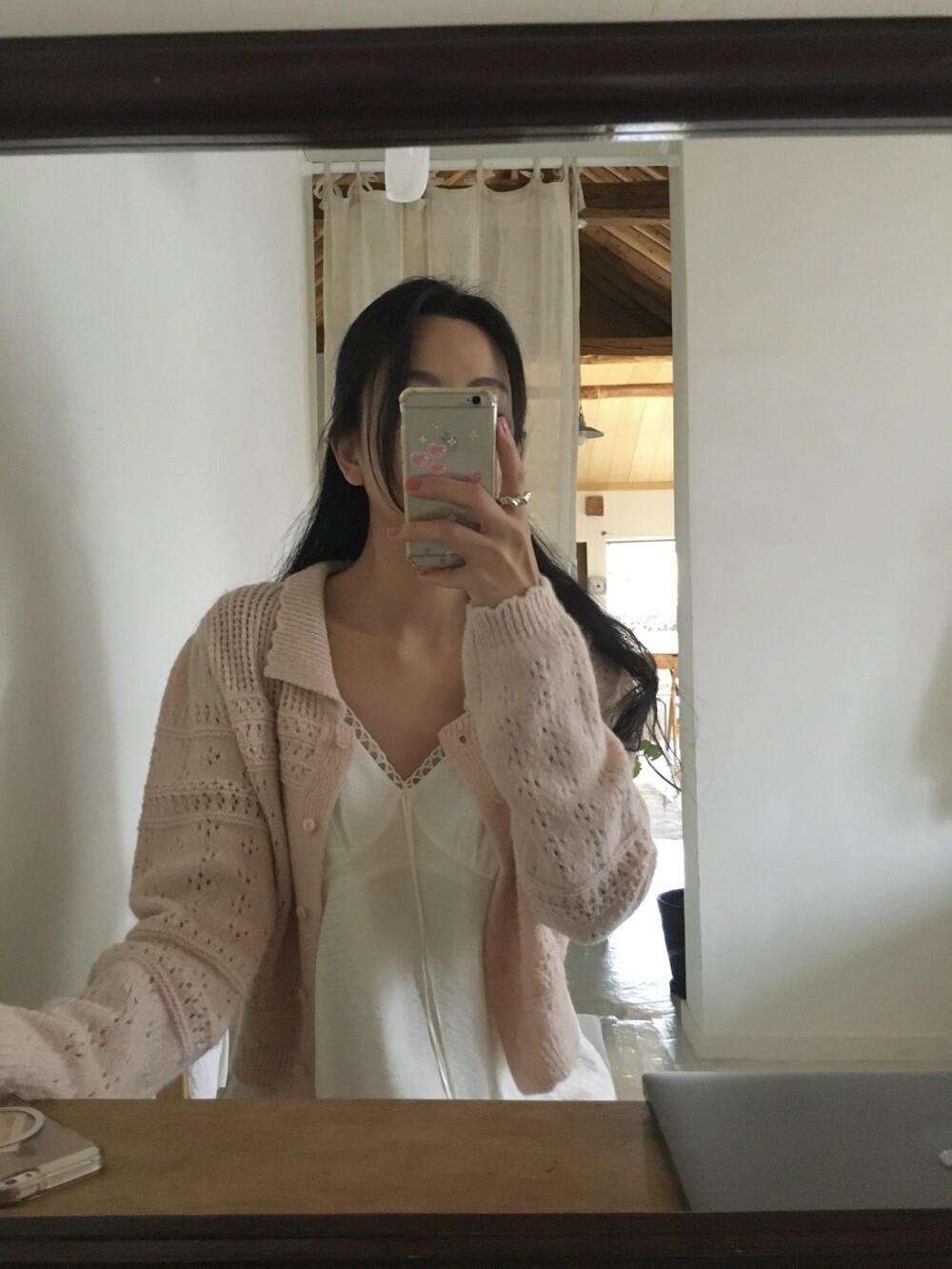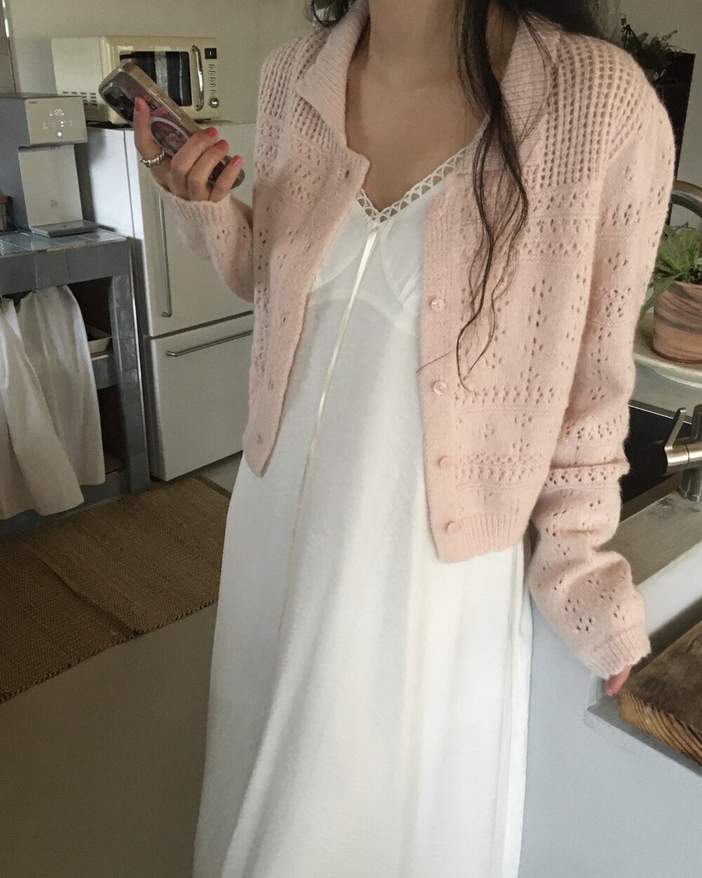 넥 라인과 암홀까지 레이스 디테일이 더해지고, 가슴 부분에 다트와 절개선이 있어 부드럽고, 몸이 더 슬림해 보이는 느낌이 듭니다.
