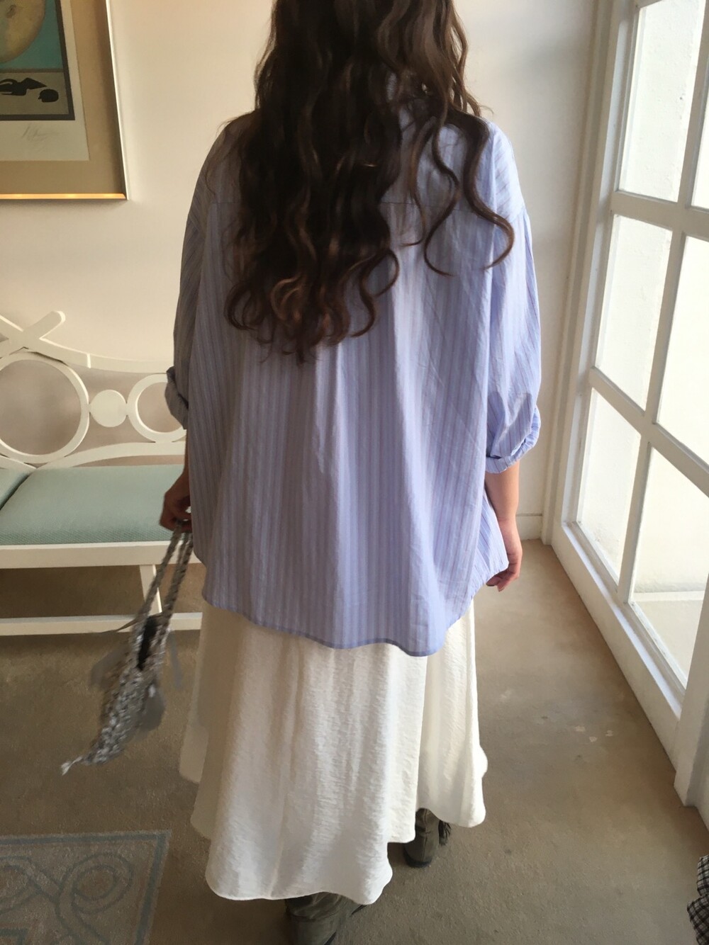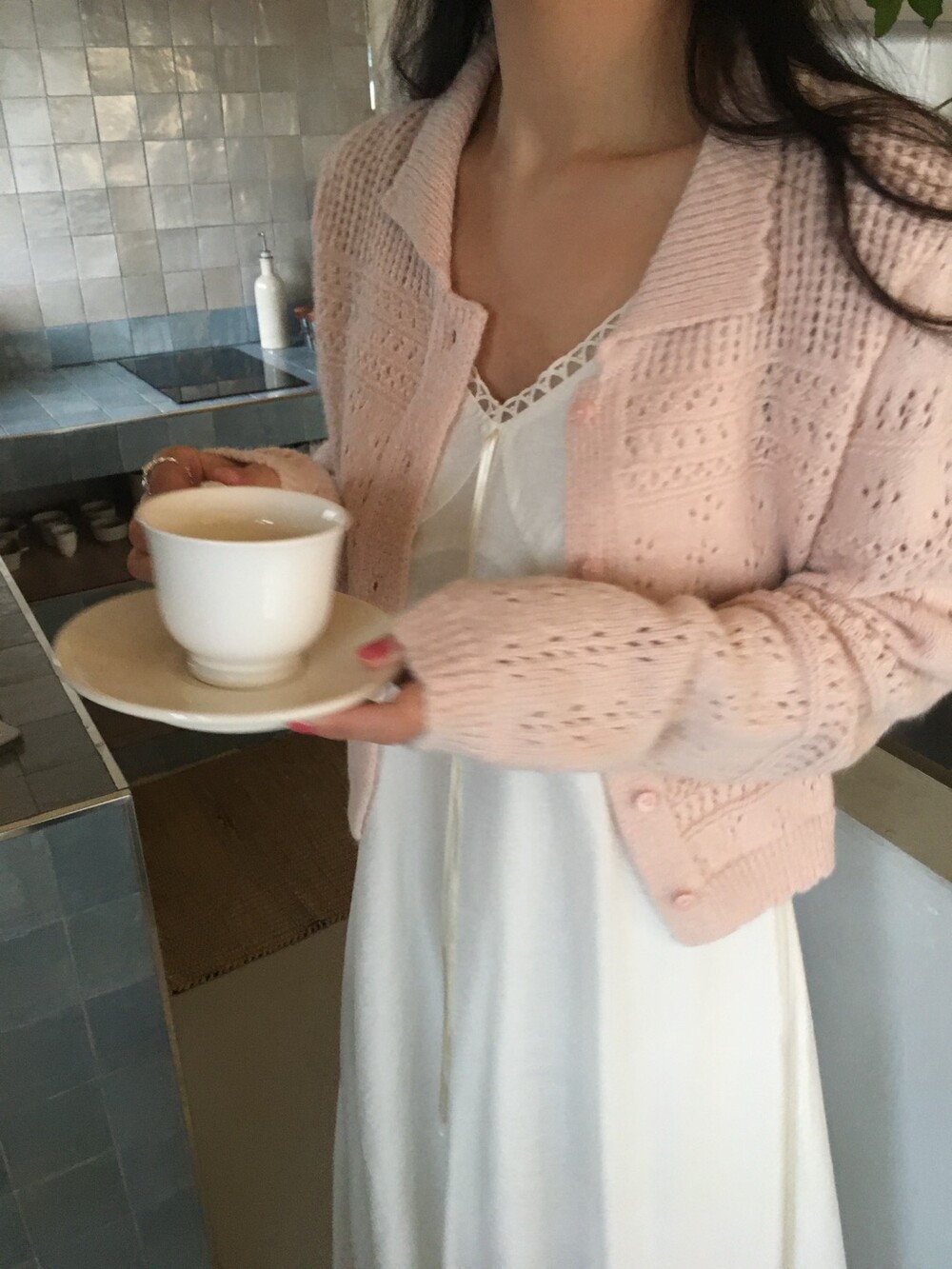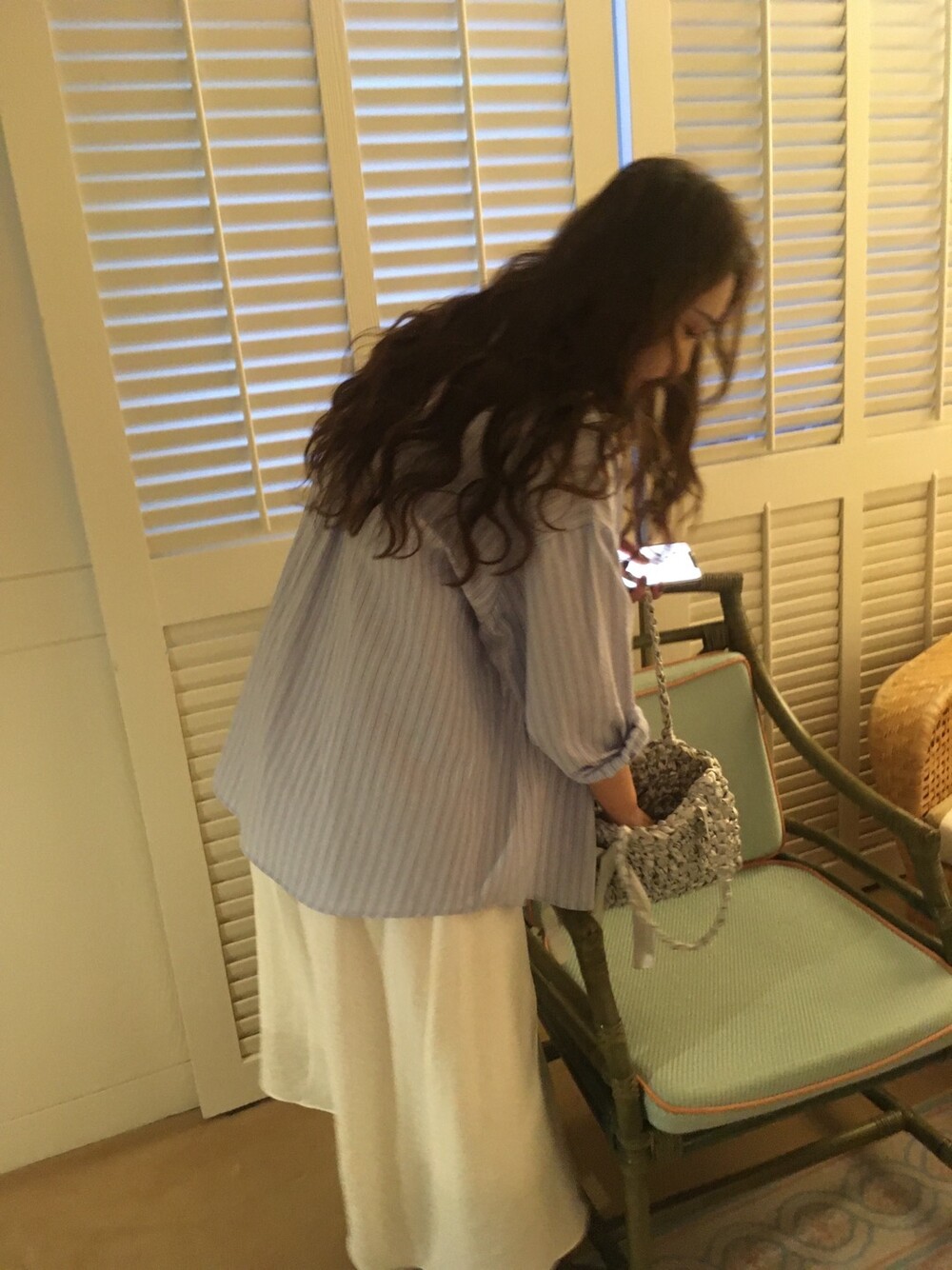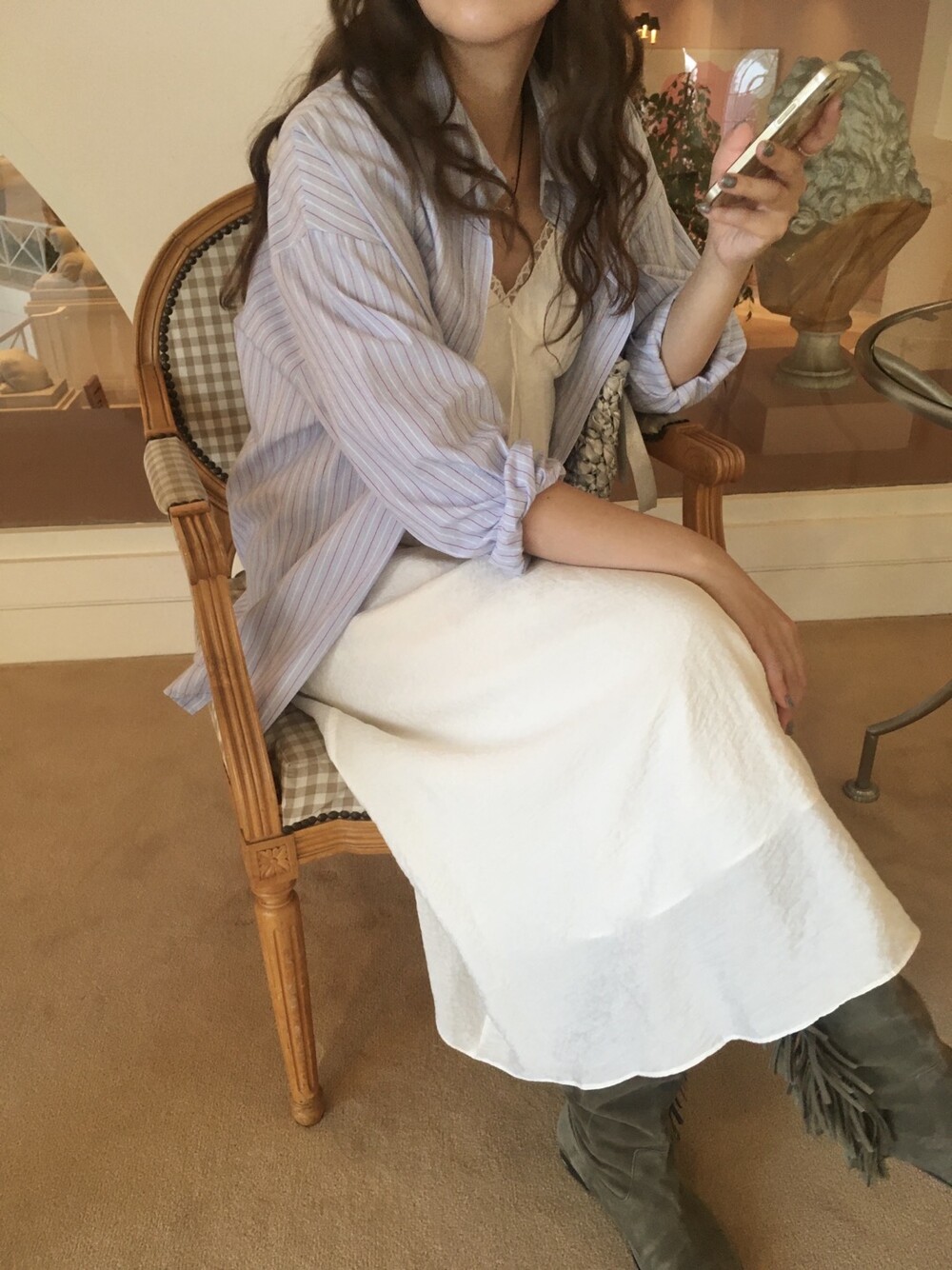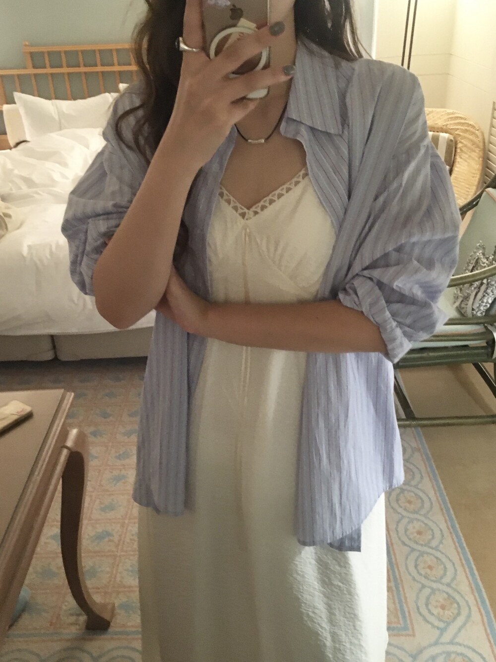 자연스럽게 흘러내리는 느낌으로, 움직일 때마다 살짝 퍼지며 여성스러운 분위기가 느껴지고, 레이스와 리본 디테일이 어우러져 빈티지한 무드까지 느껴진답니다.