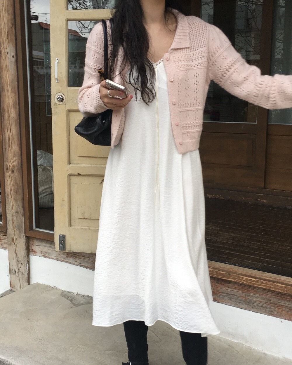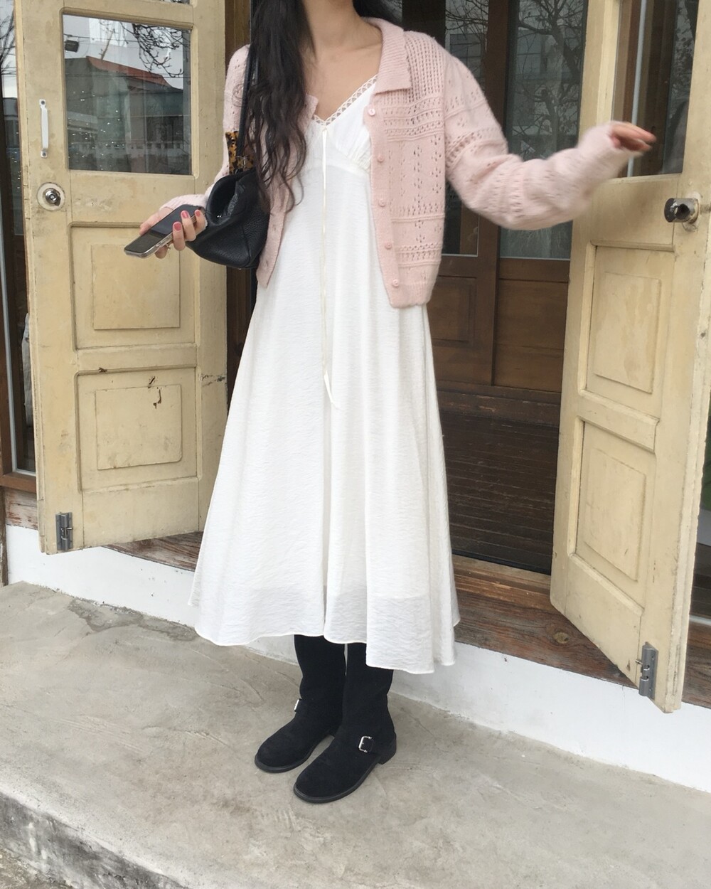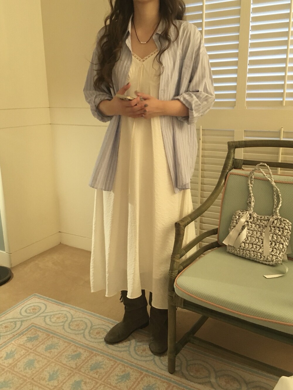 가을 겨울철엔 가디건, 니트등 레이어드 해주고, 봄엔 셔츠를 걸쳐 레이어드 원피스로 스타일링 해주시면 좋아요!