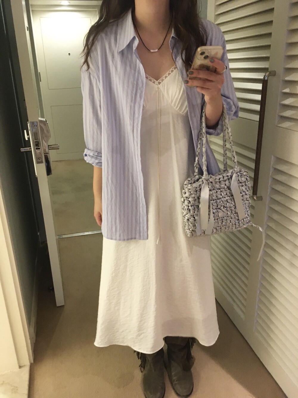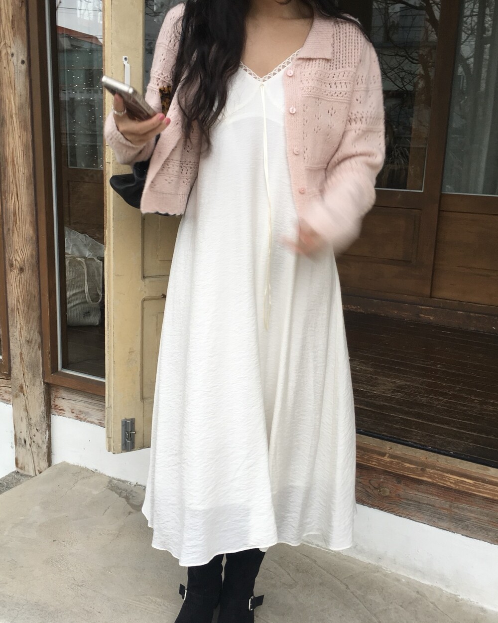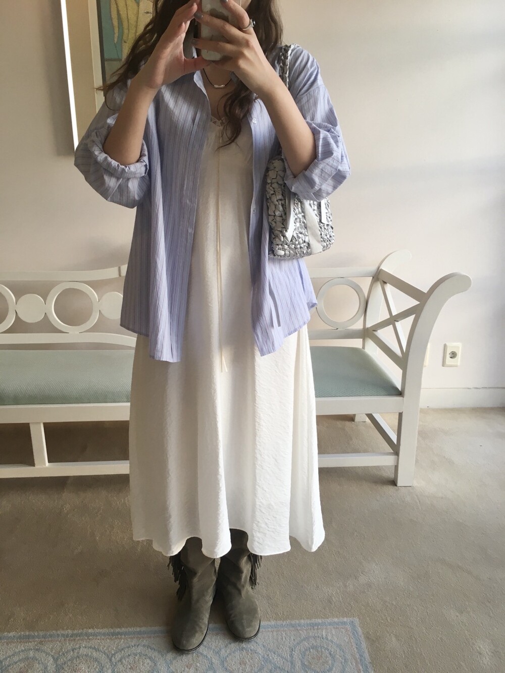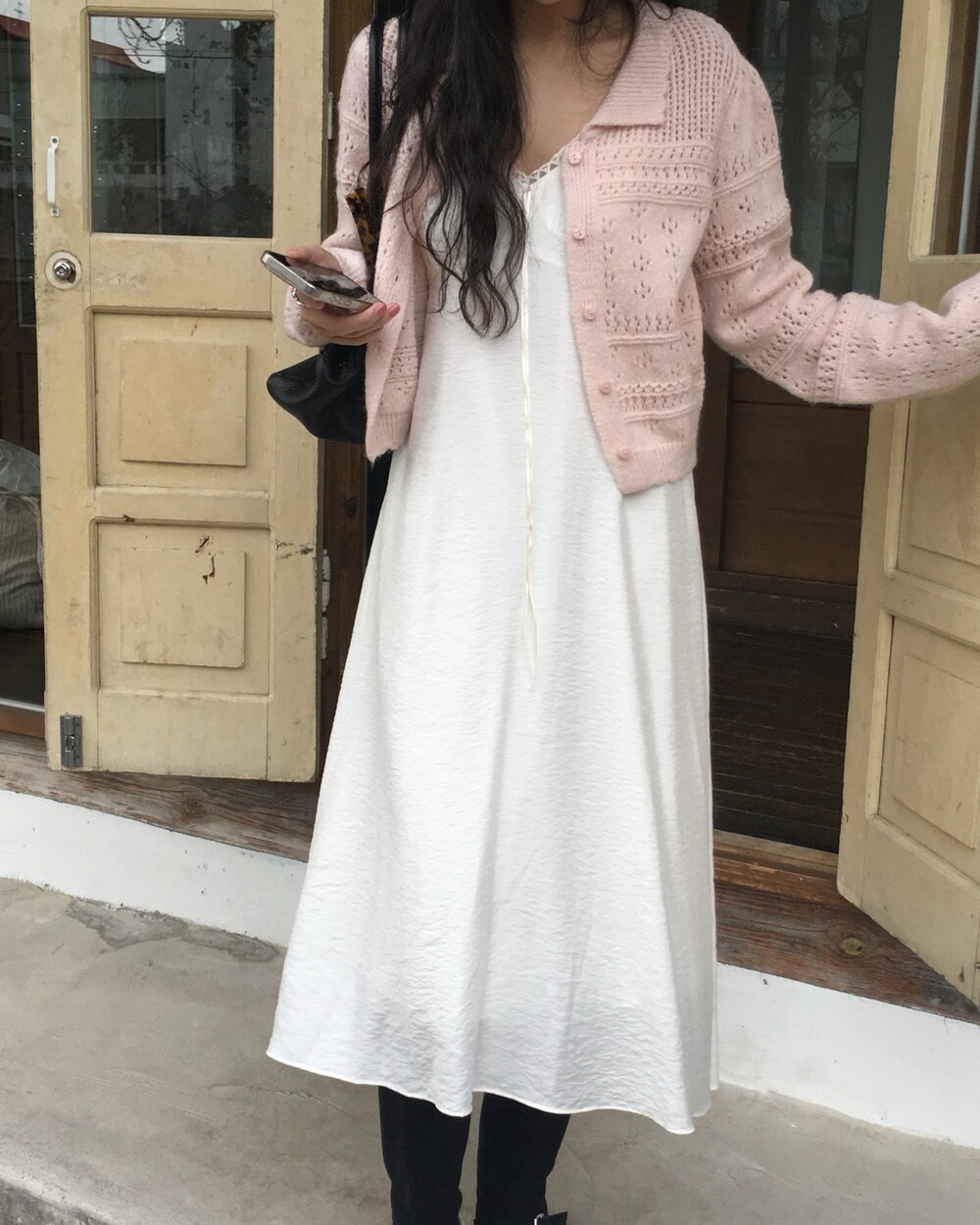 가을 겨울철엔 가디건, 니트등 레이어드 해주고, 봄엔 셔츠를 걸쳐 레이어드 원피스로 스타일링 해주시면 좋아요!
