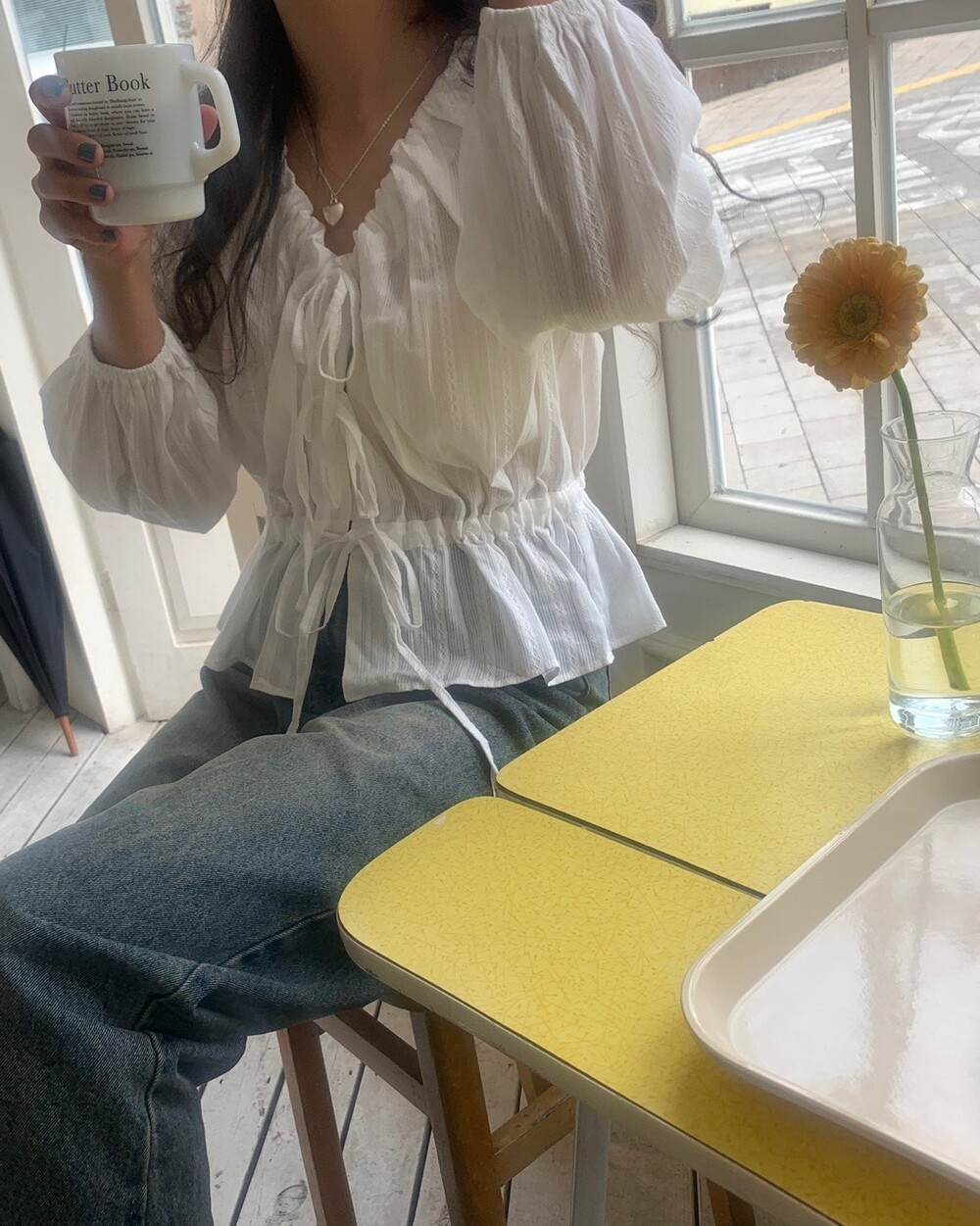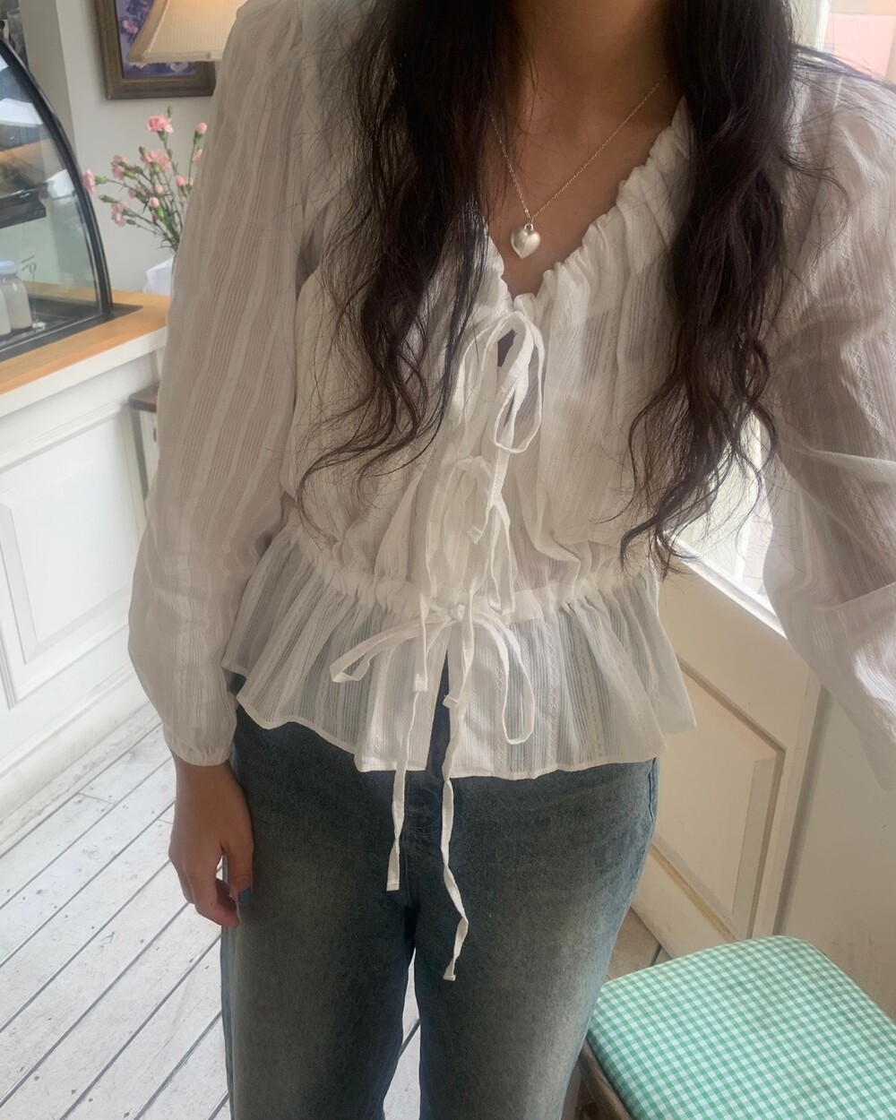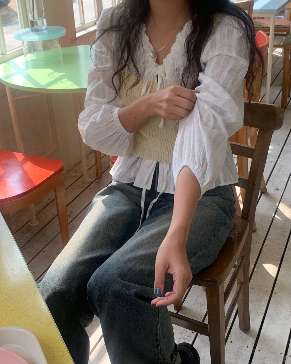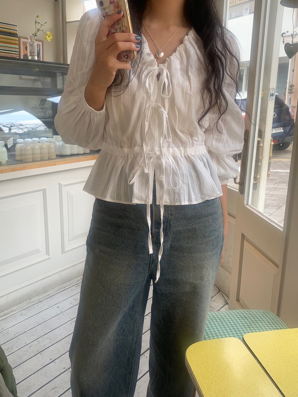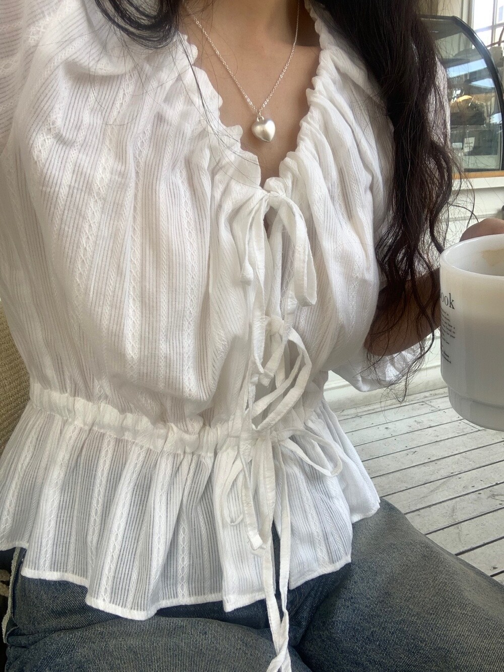 * 단추가 없는 제품으로 리본으로 클로징되는 제품입니다.