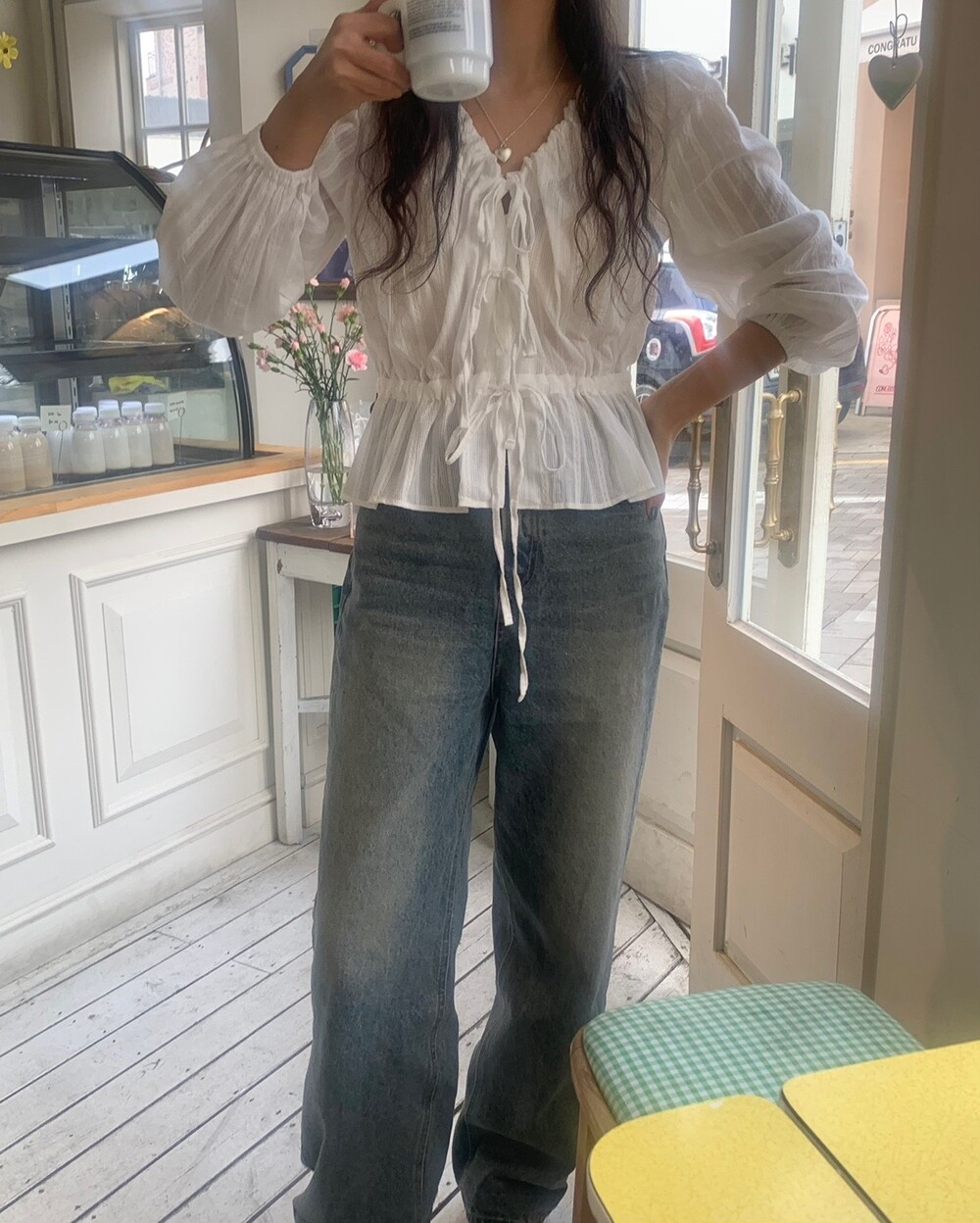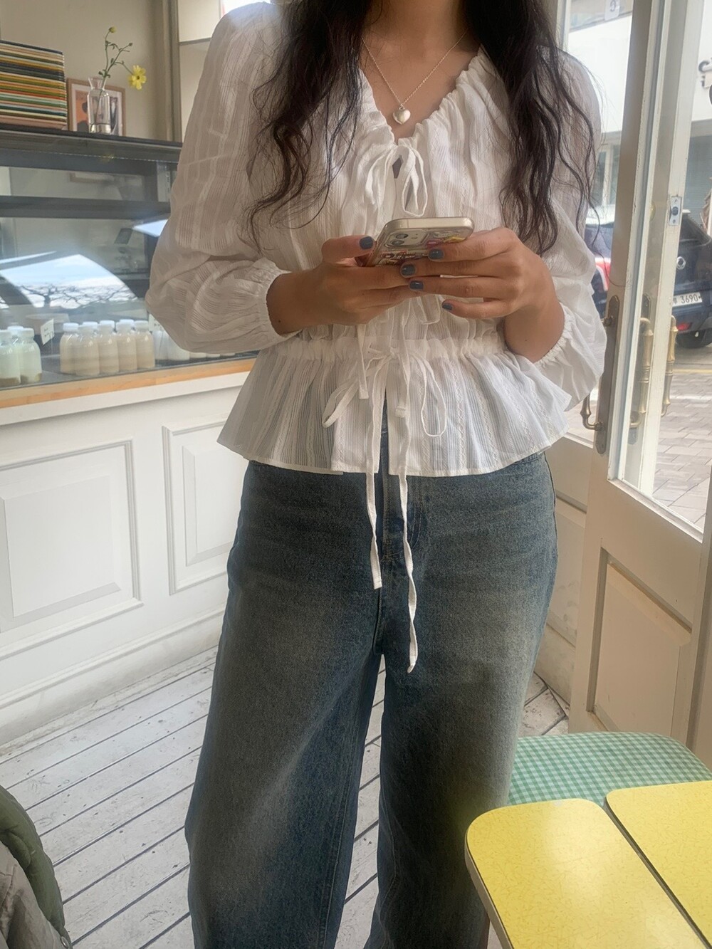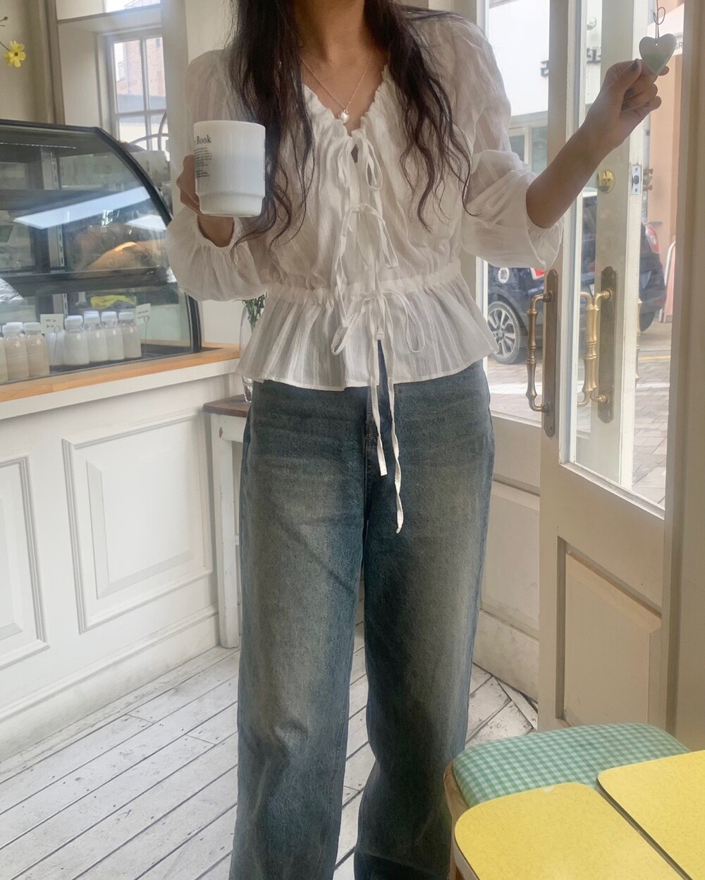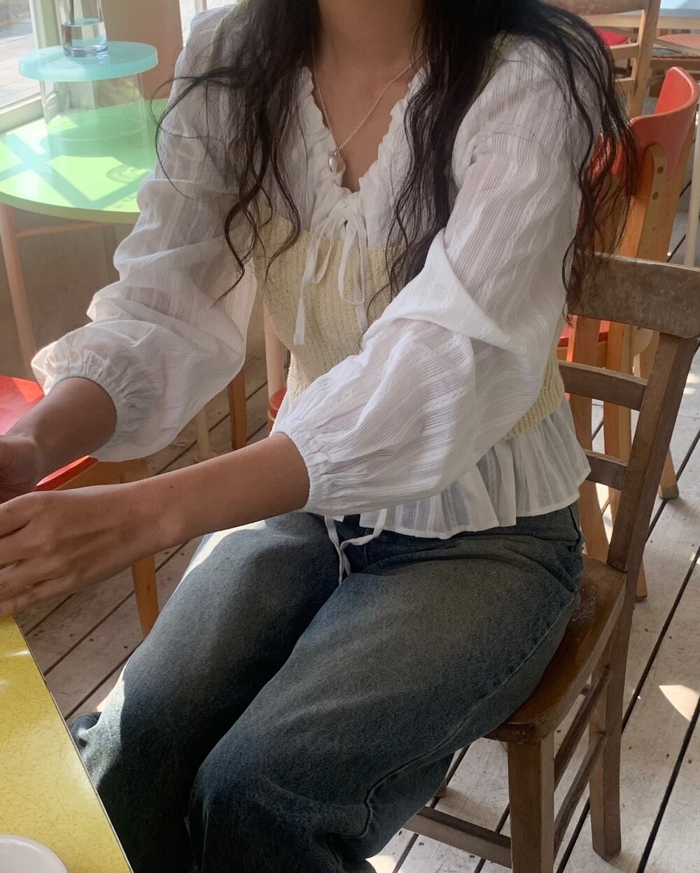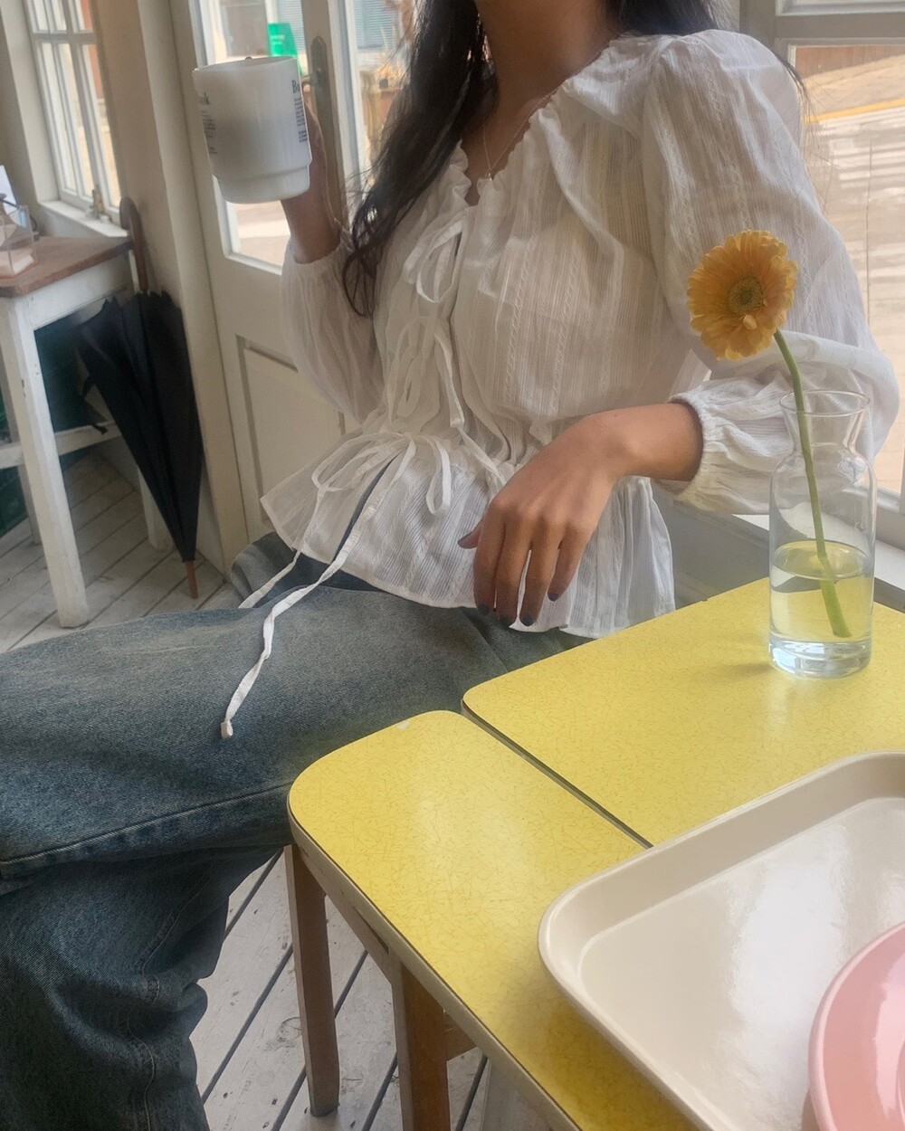 * 단추가 없는 제품으로 리본으로 클로징되는 제품입니다.