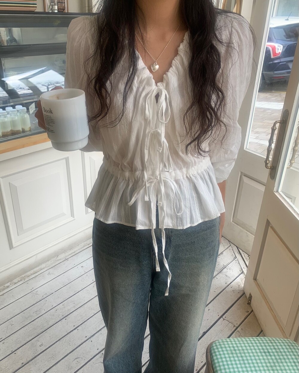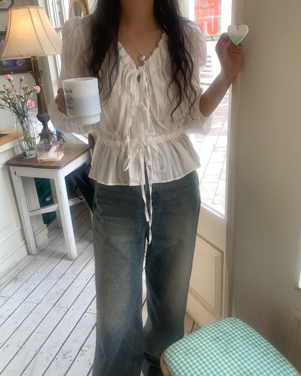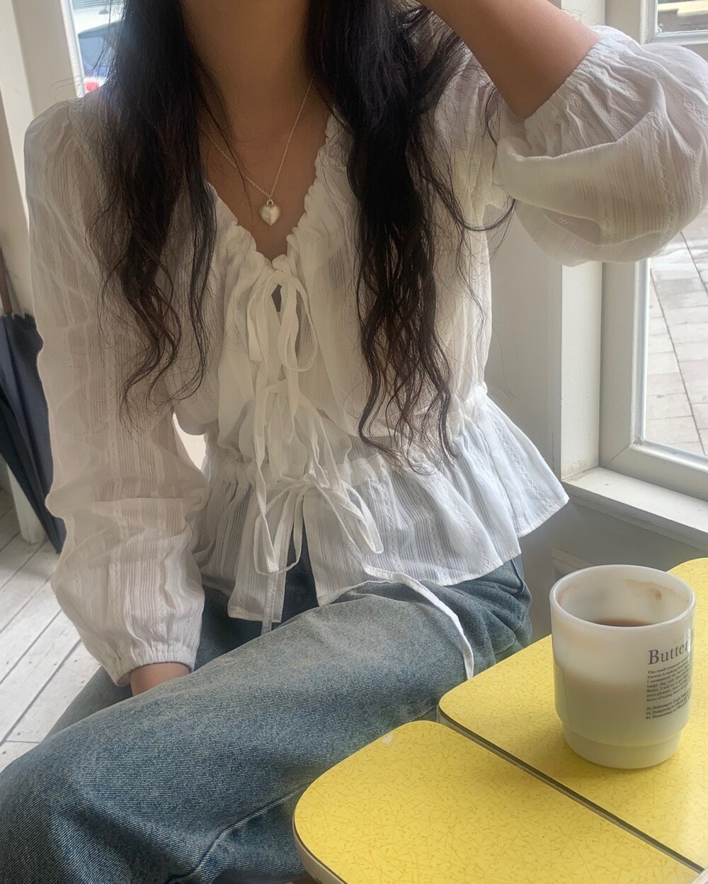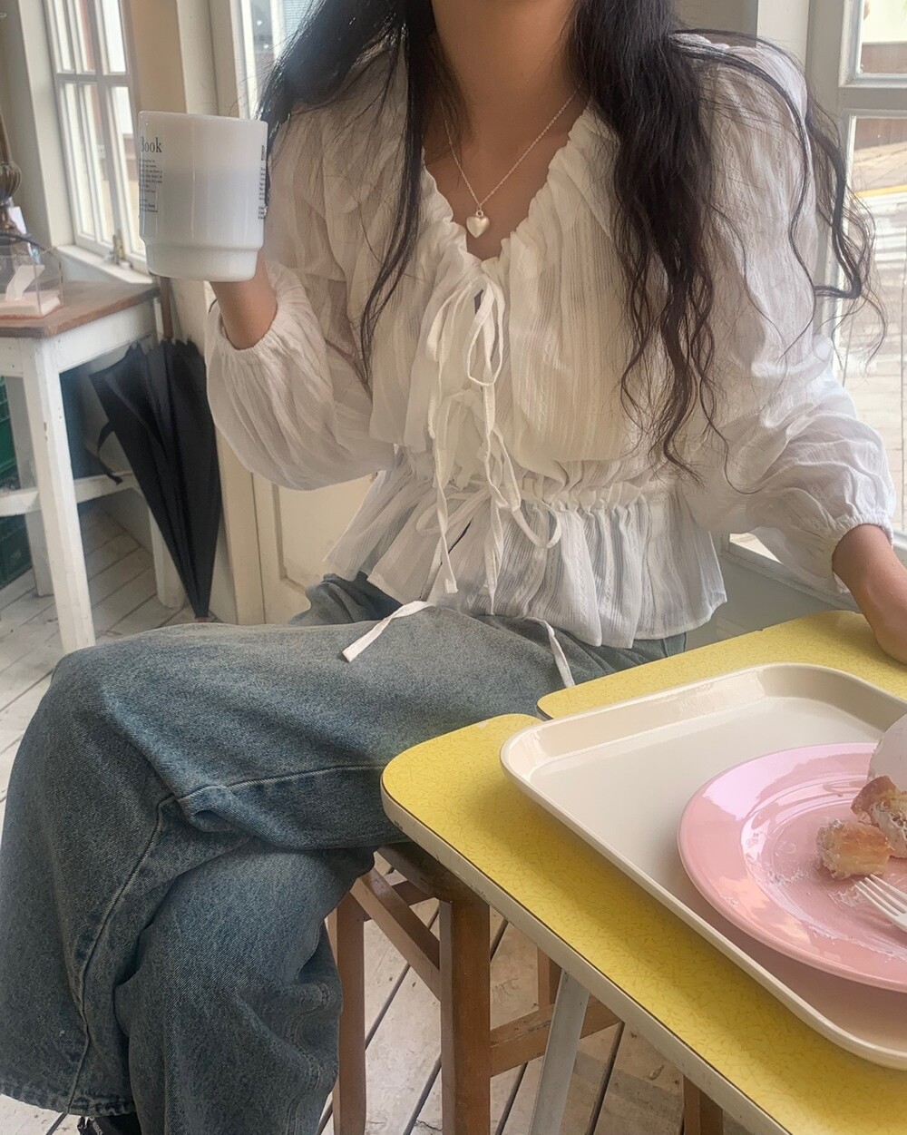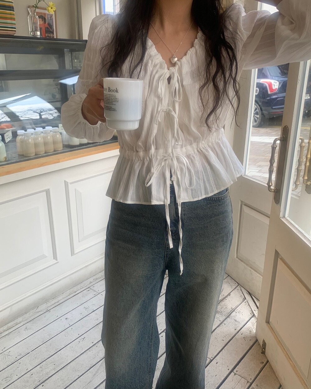 * 단추가 없는 제품으로 리본으로 클로징되는 제품입니다.