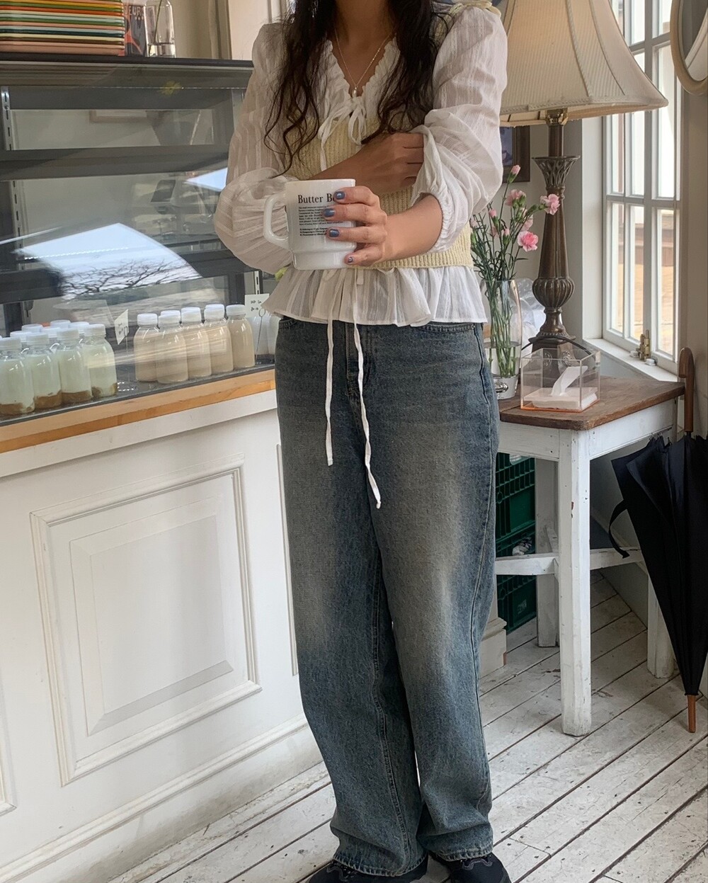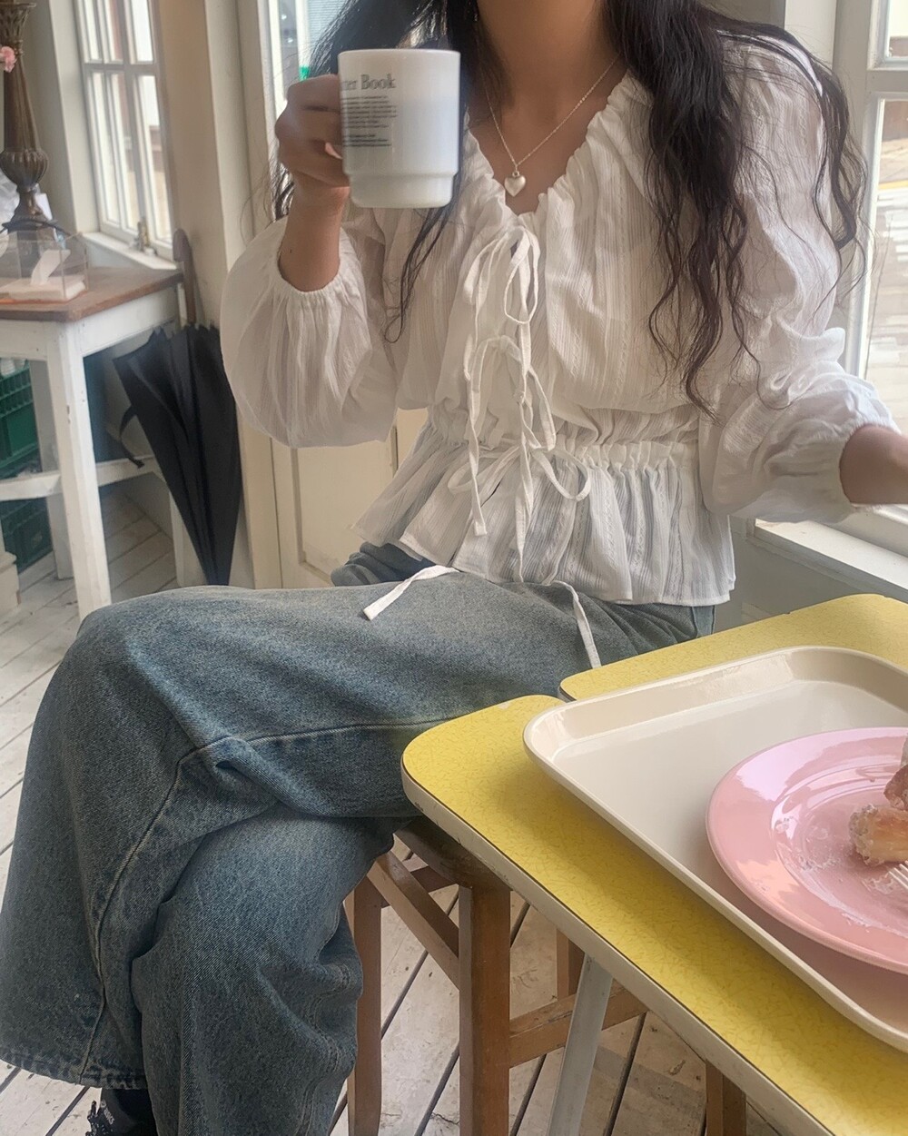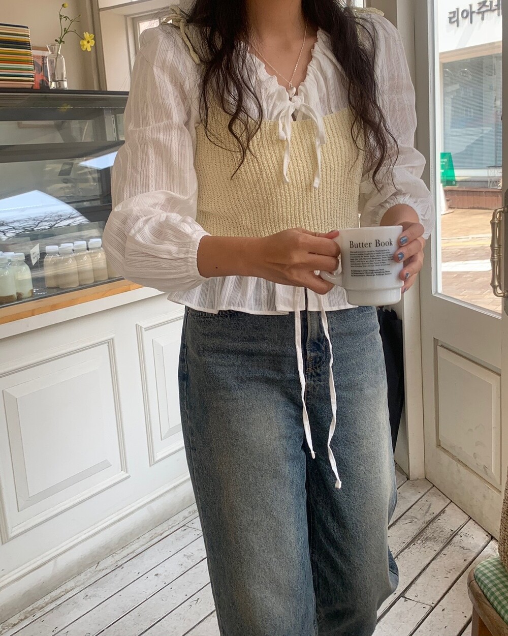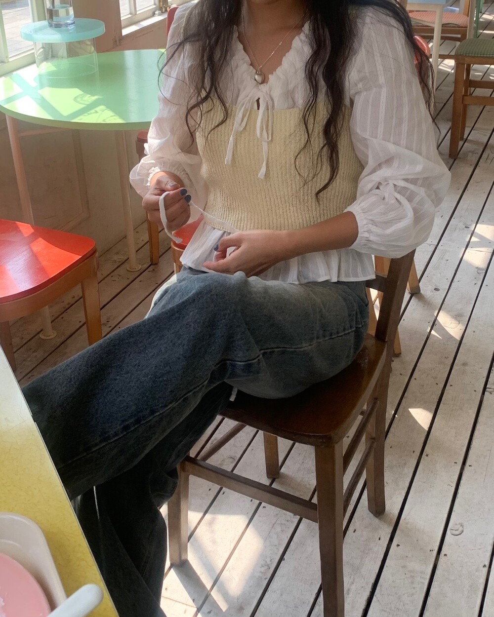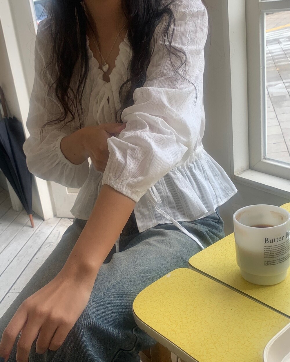 * 단추가 없는 제품으로 리본으로 클로징되는 제품입니다.