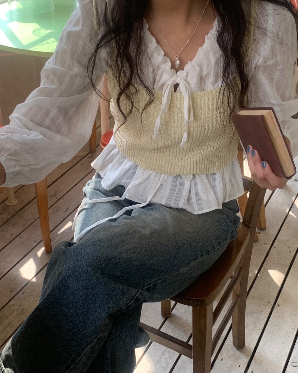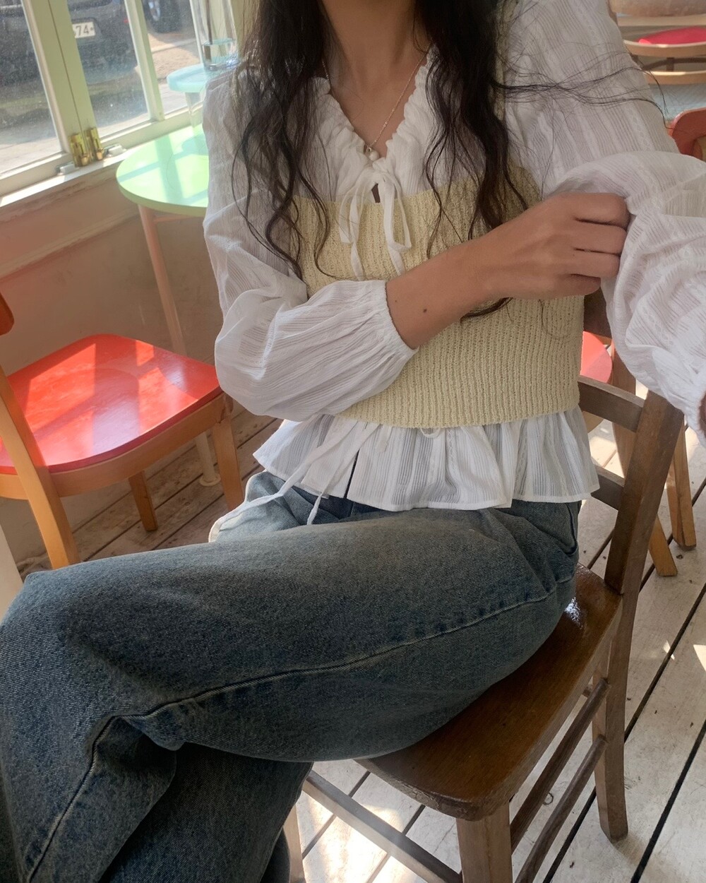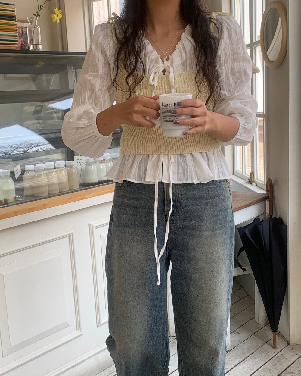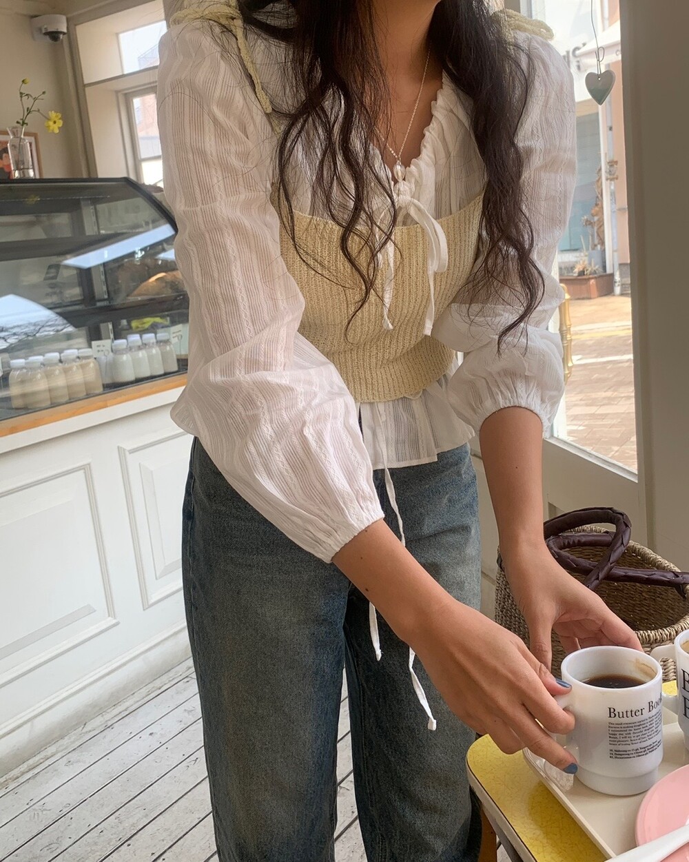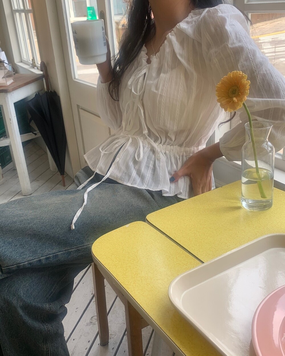 * 단추가 없는 제품으로 리본으로 클로징되는 제품입니다.