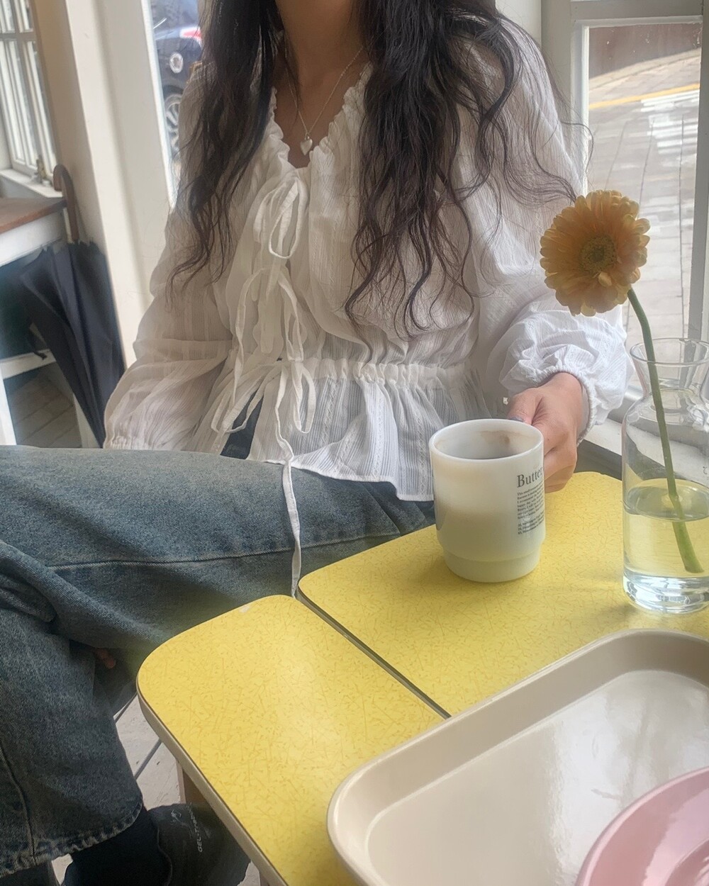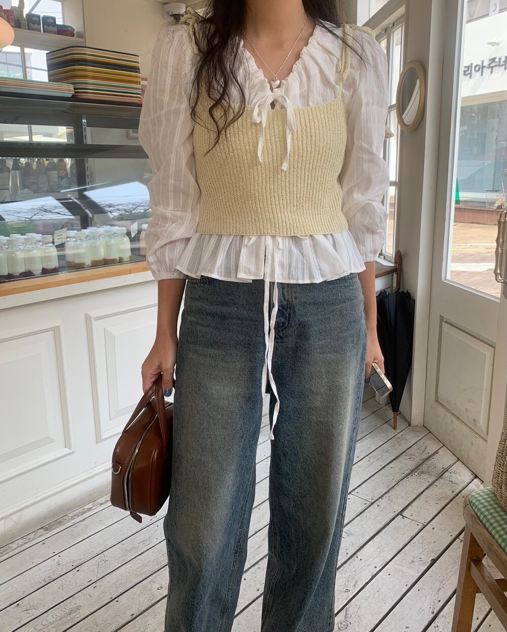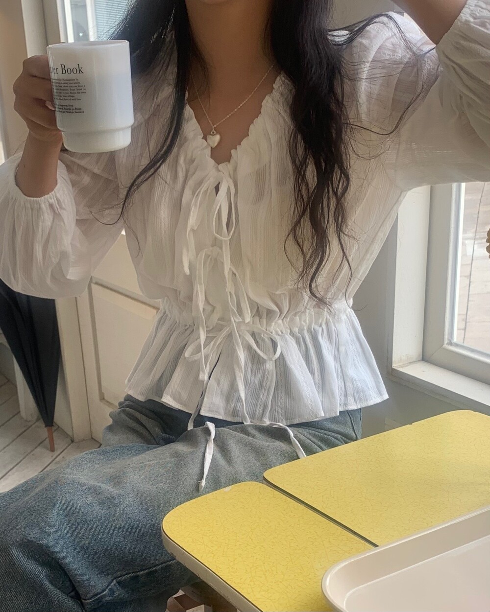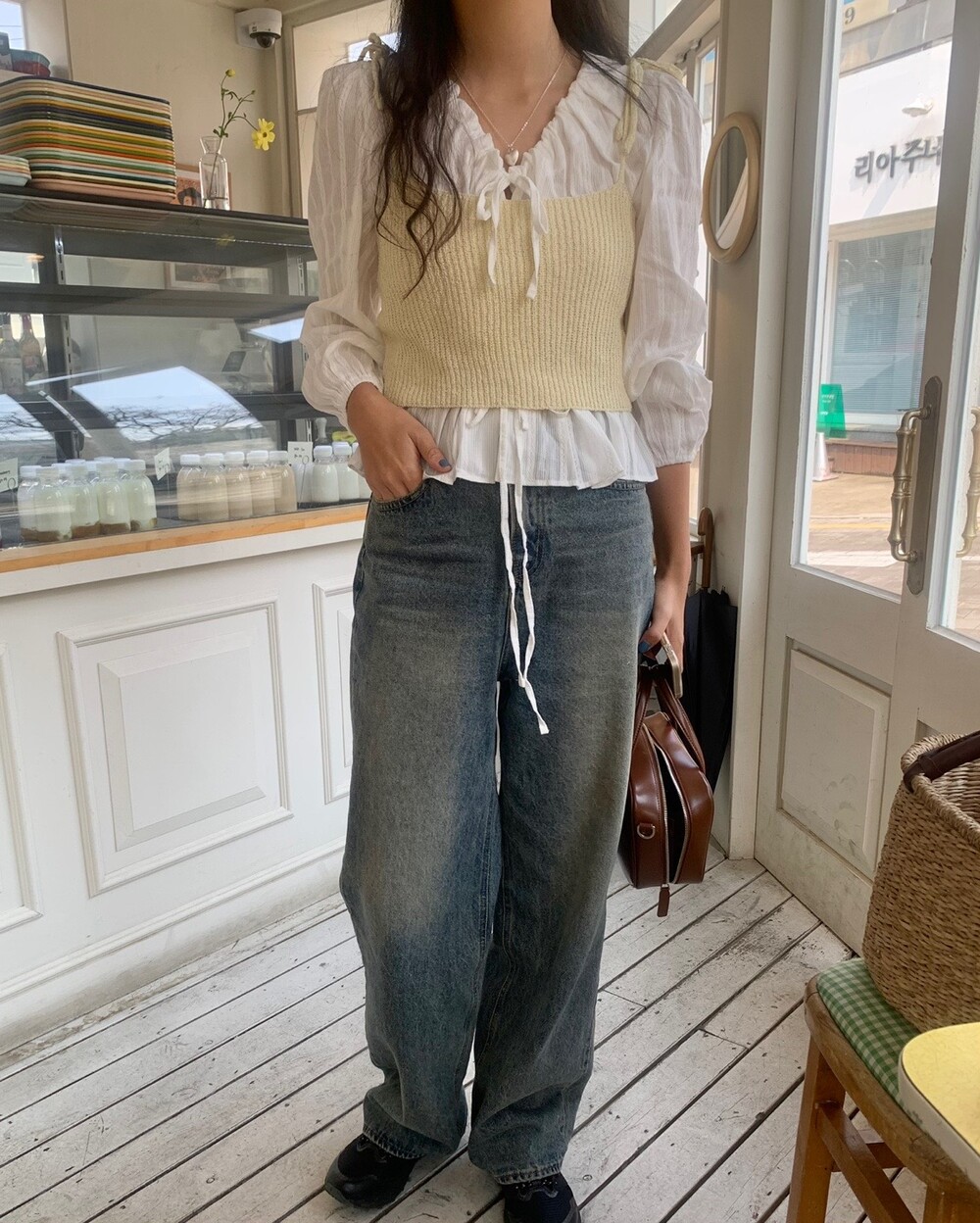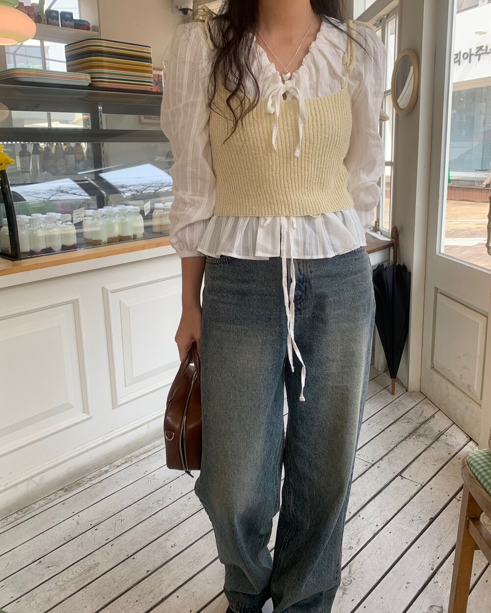 * 단추가 없는 제품으로 리본으로 클로징되는 제품입니다.
