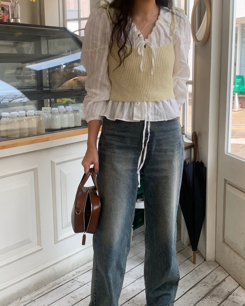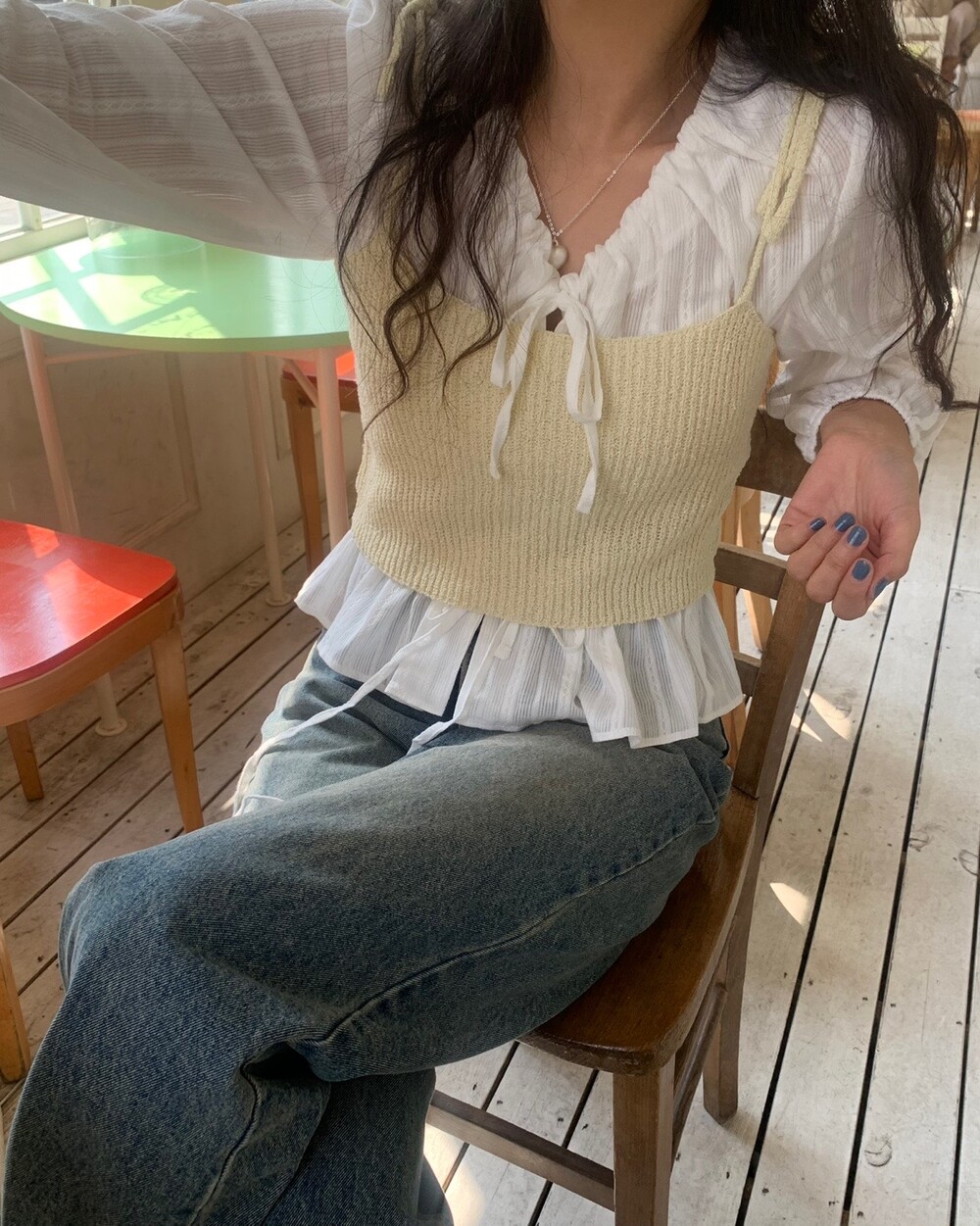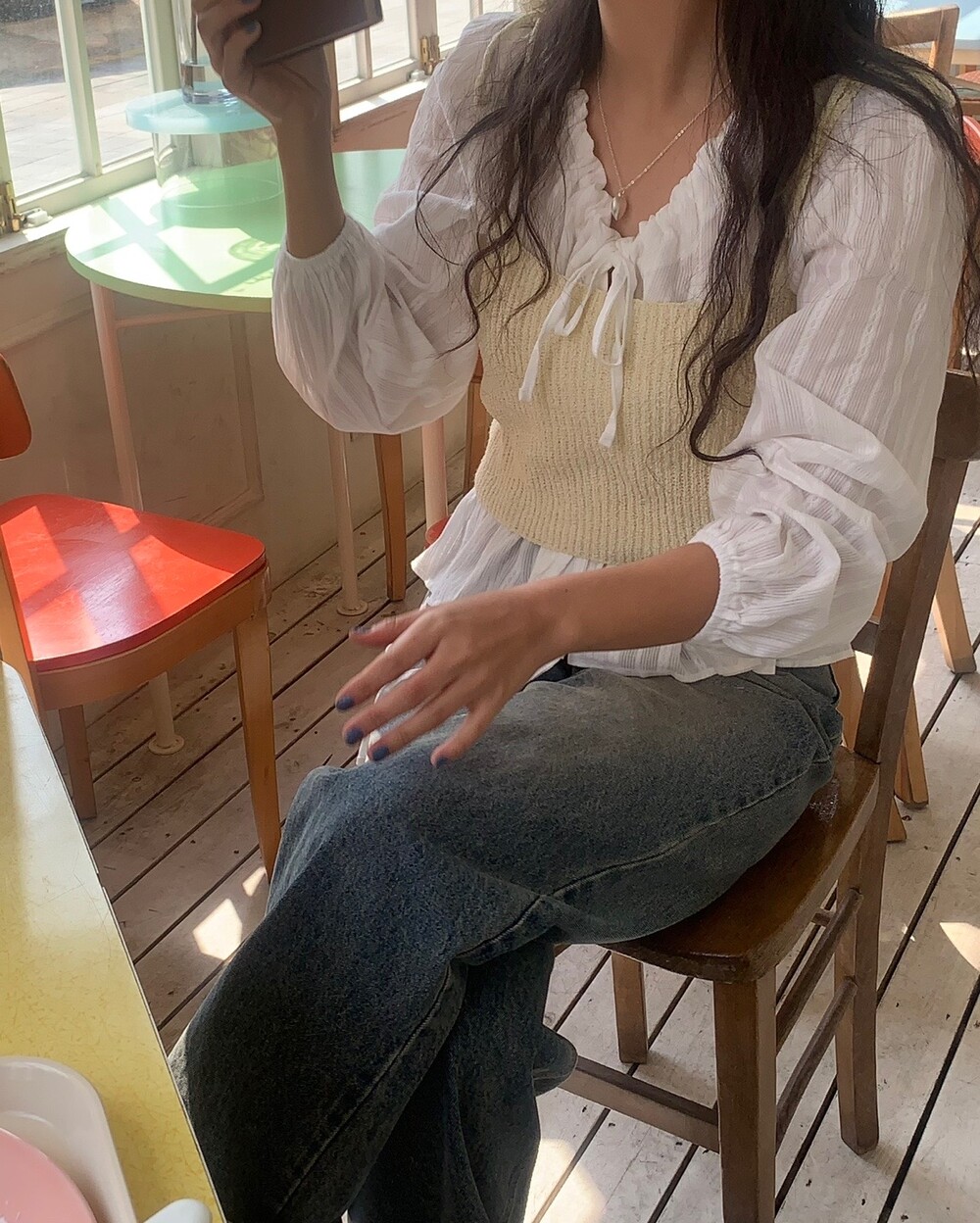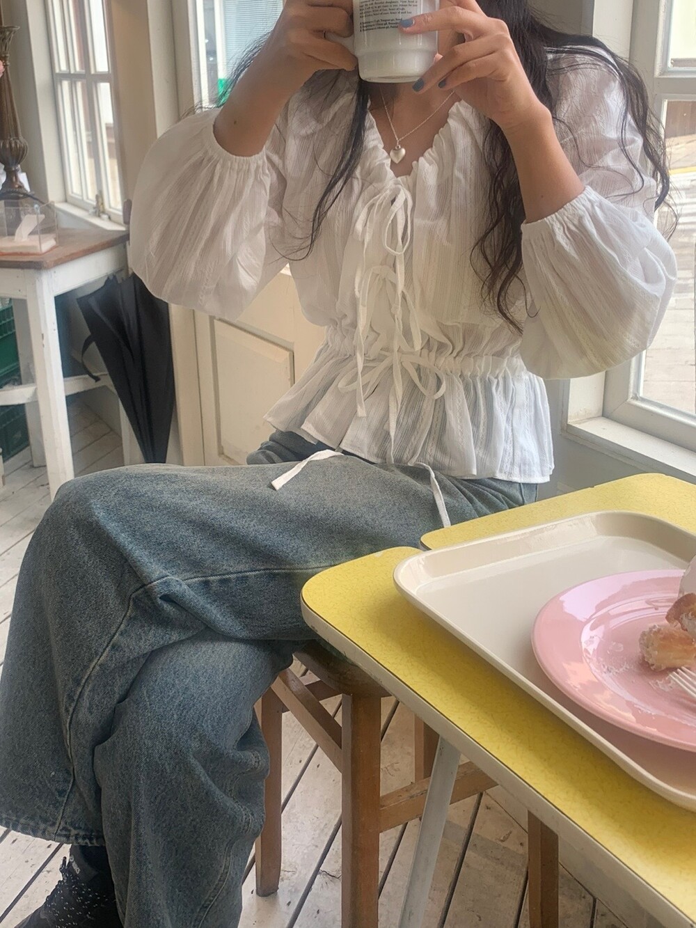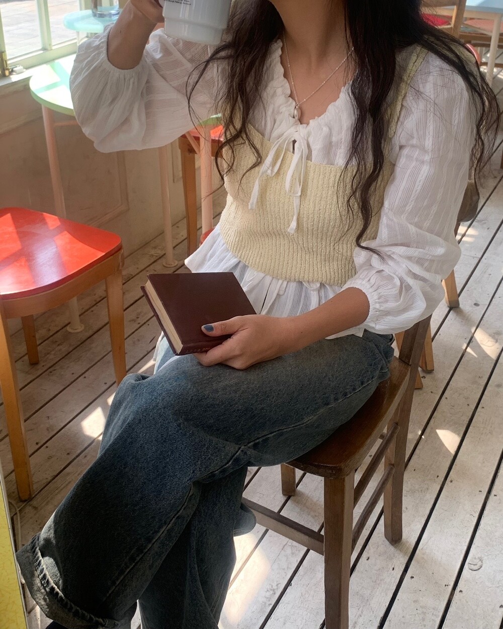 * 단추가 없는 제품으로 리본으로 클로징되는 제품입니다.