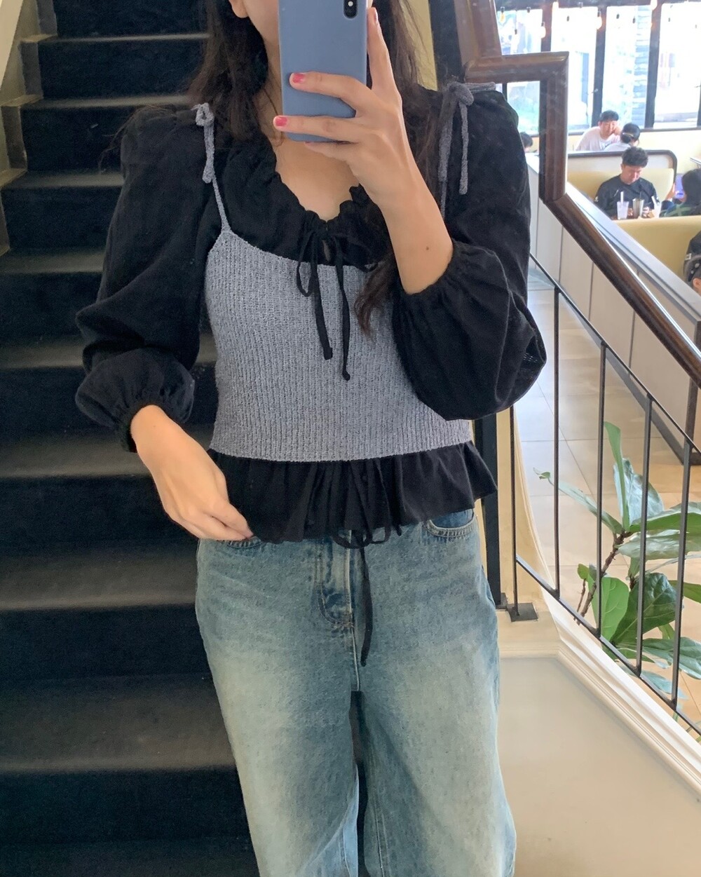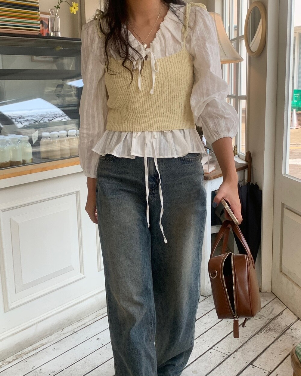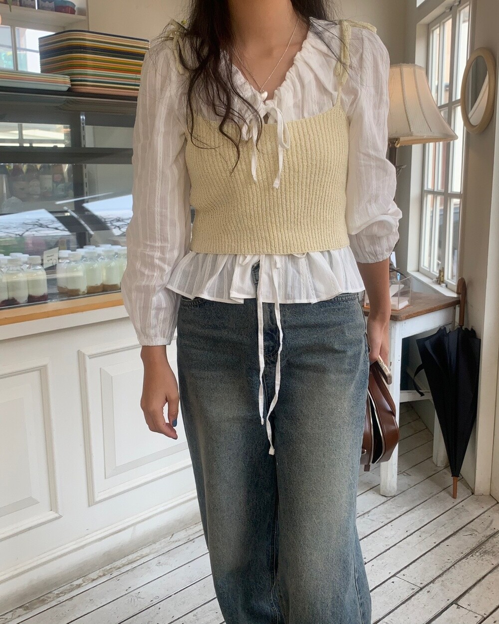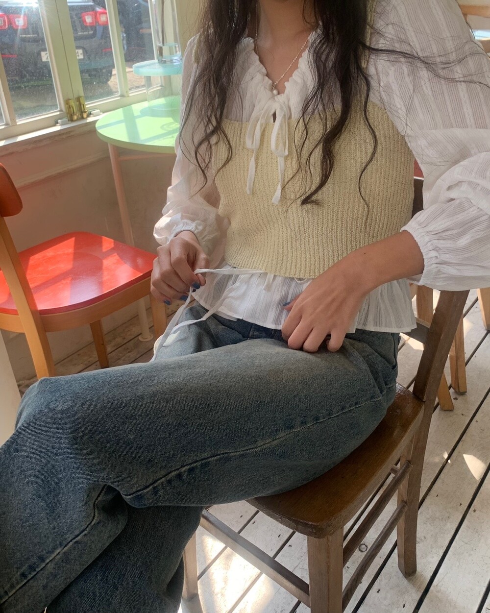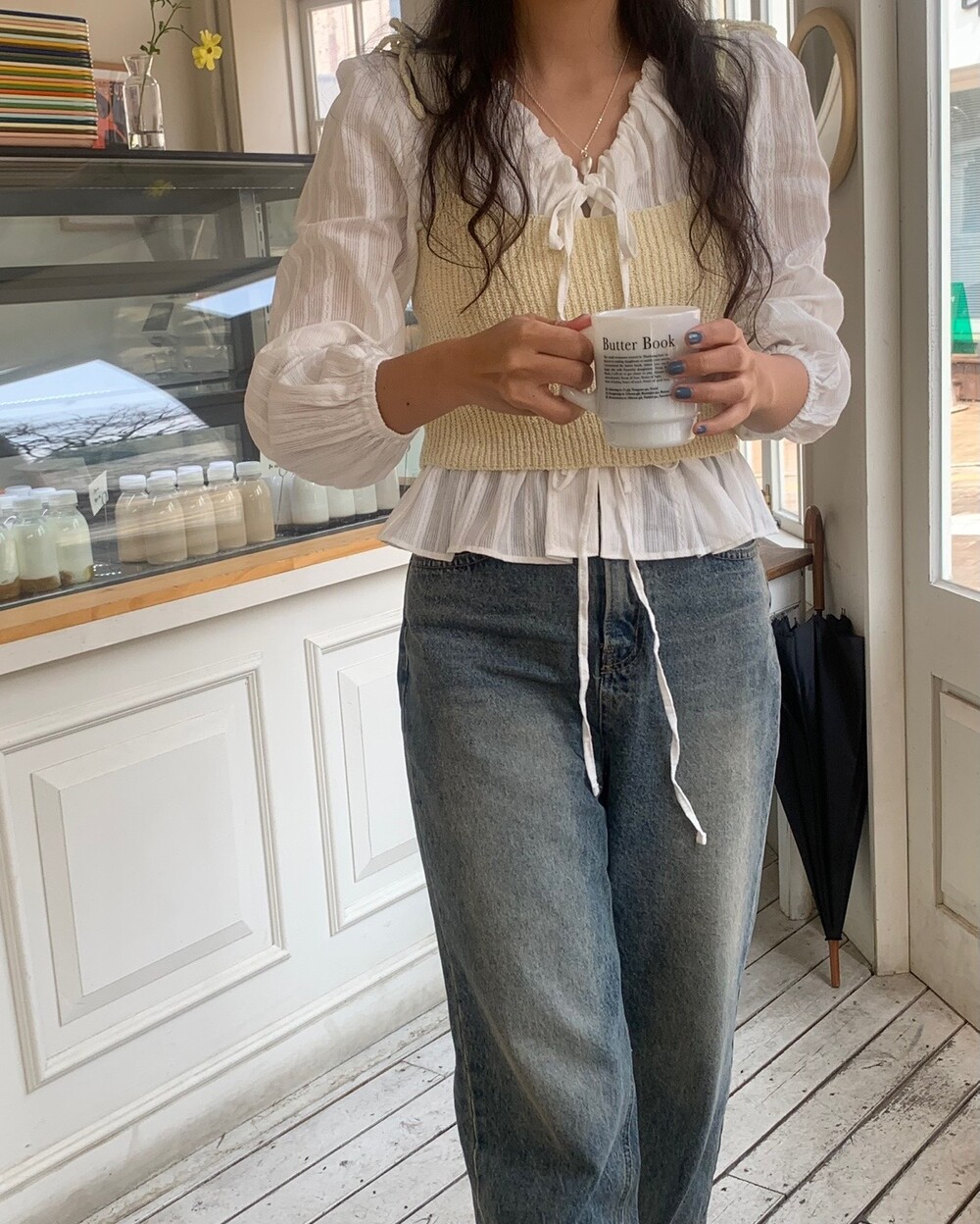 * 단추가 없는 제품으로 리본으로 클로징되는 제품입니다.