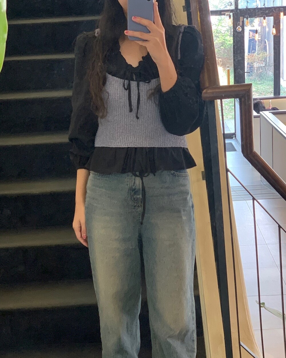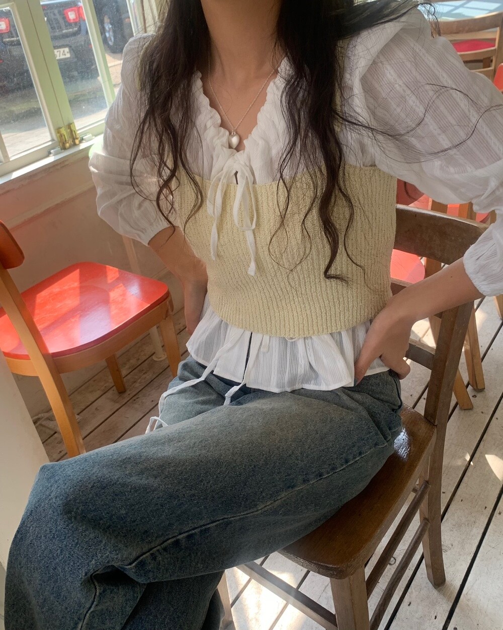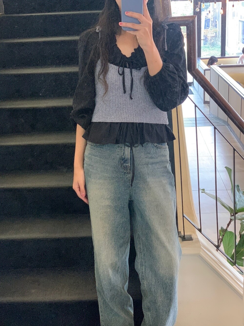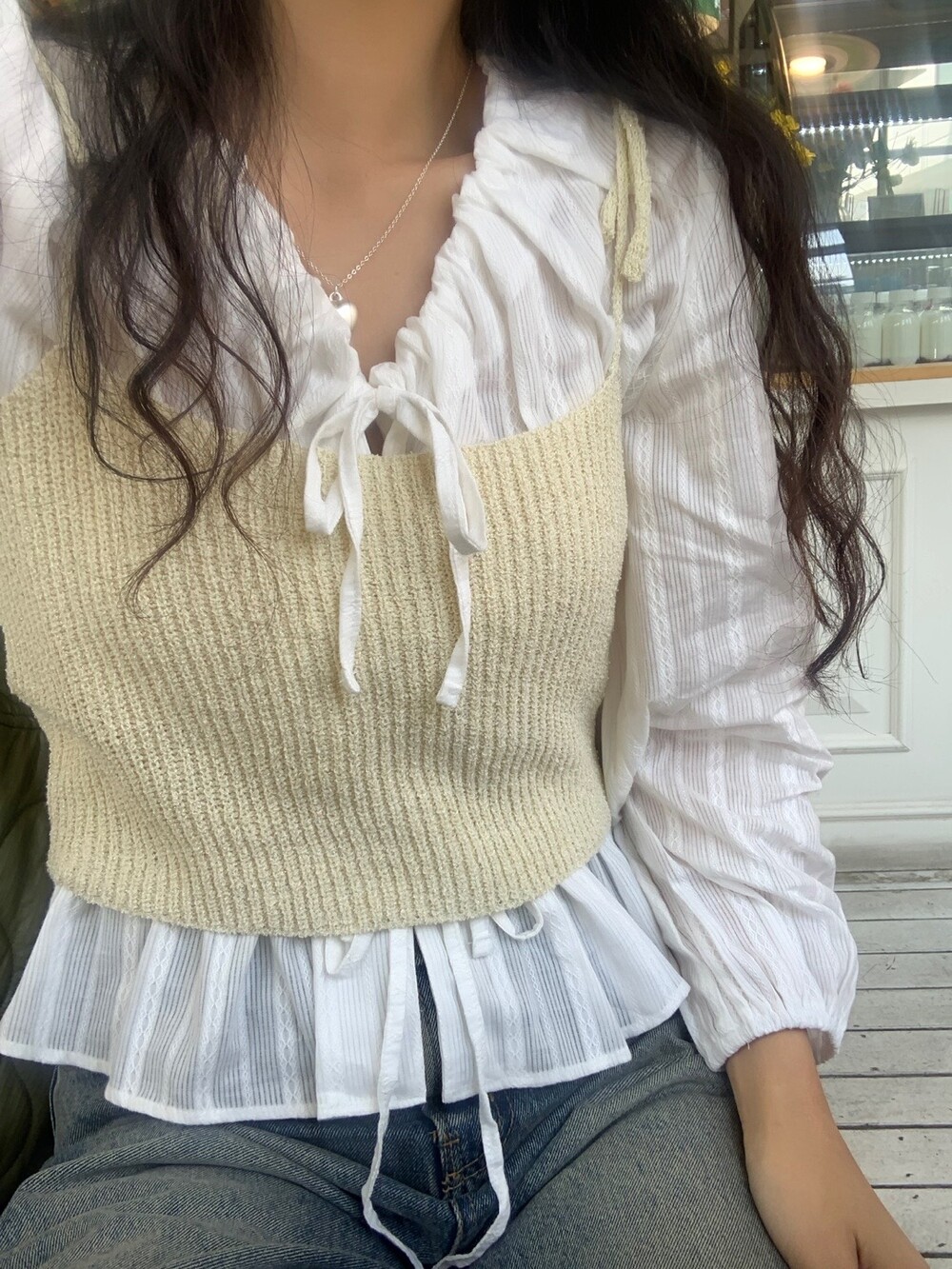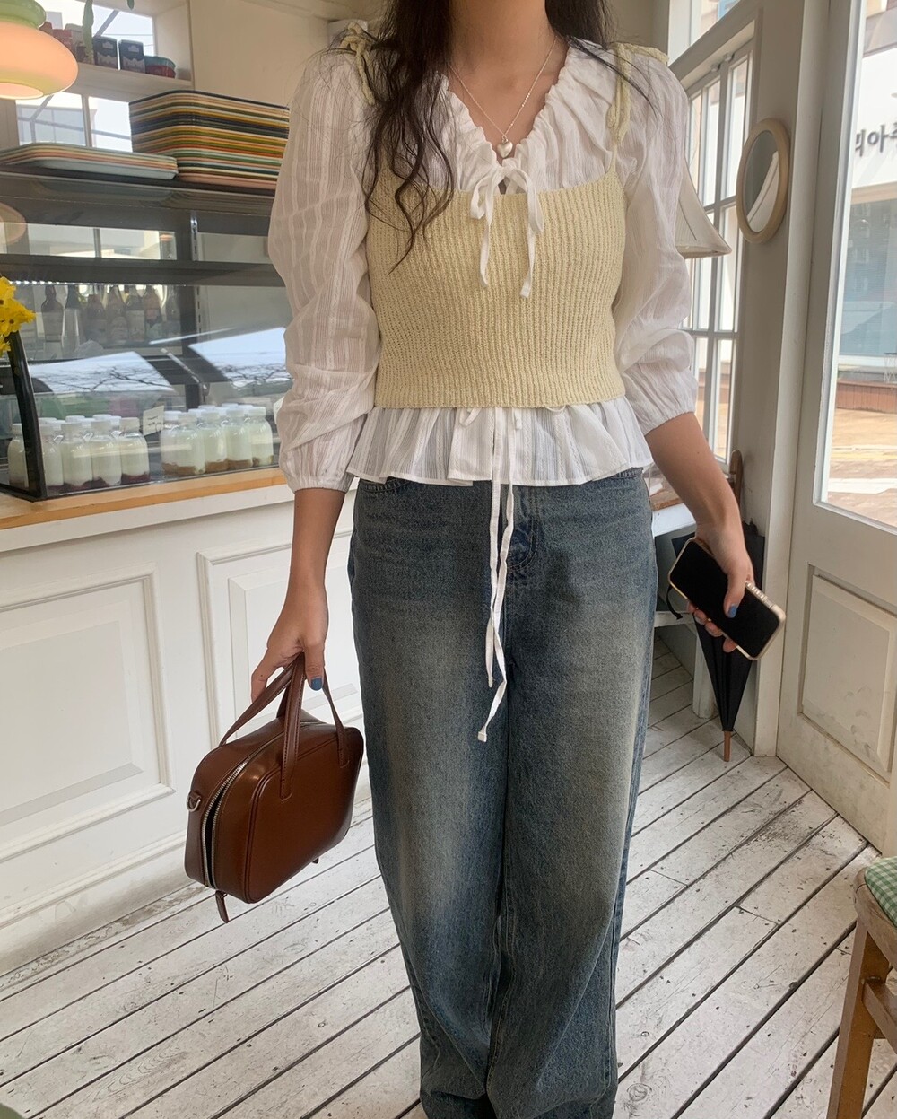 * 단추가 없는 제품으로 리본으로 클로징되는 제품입니다.