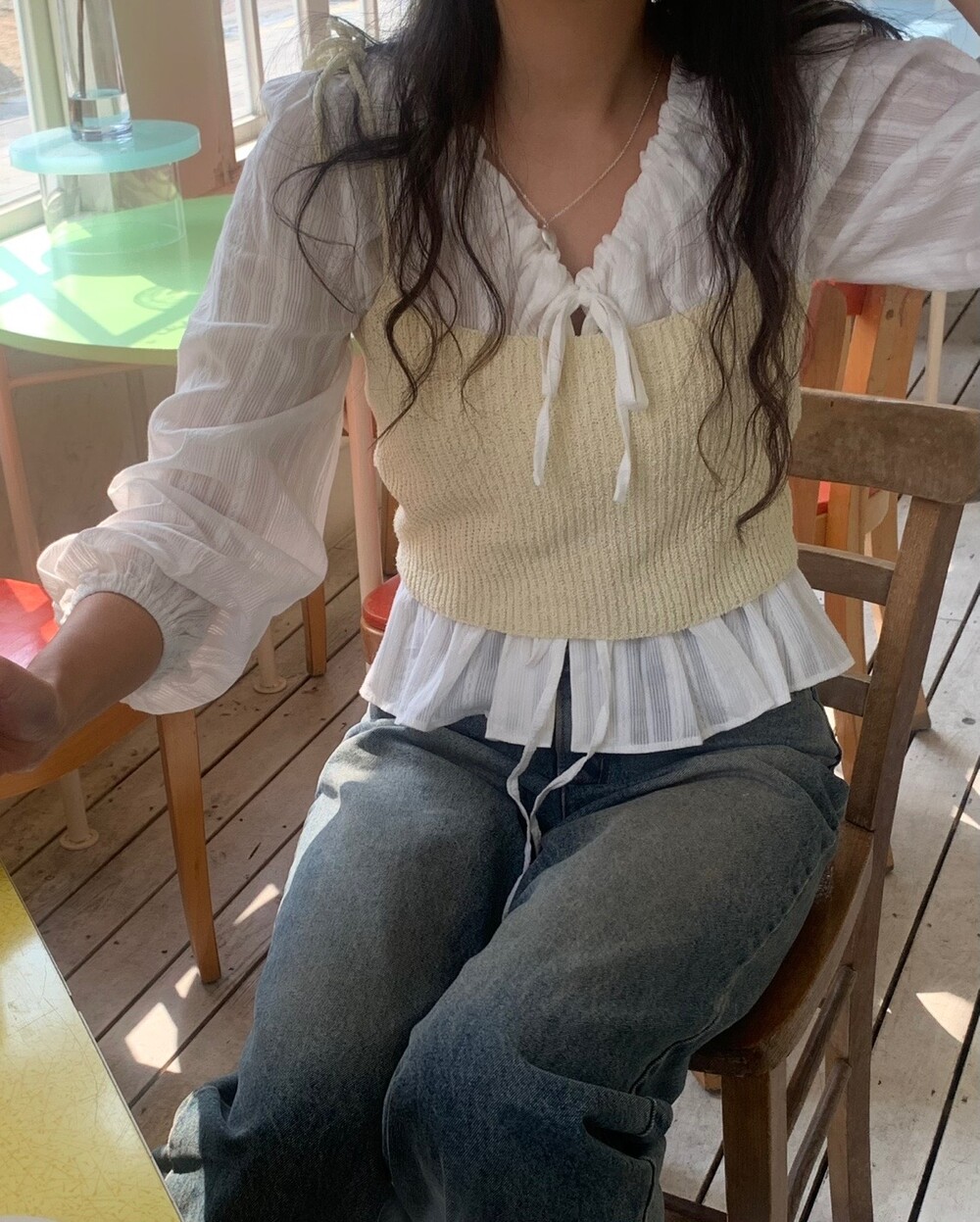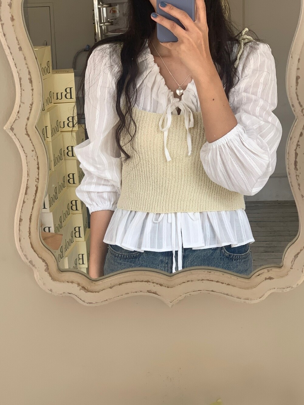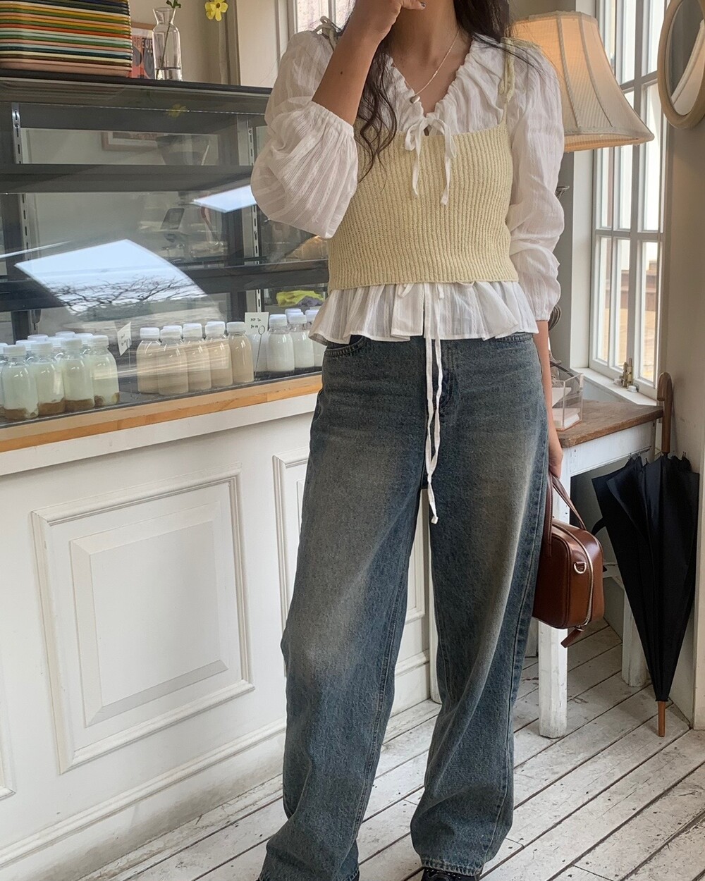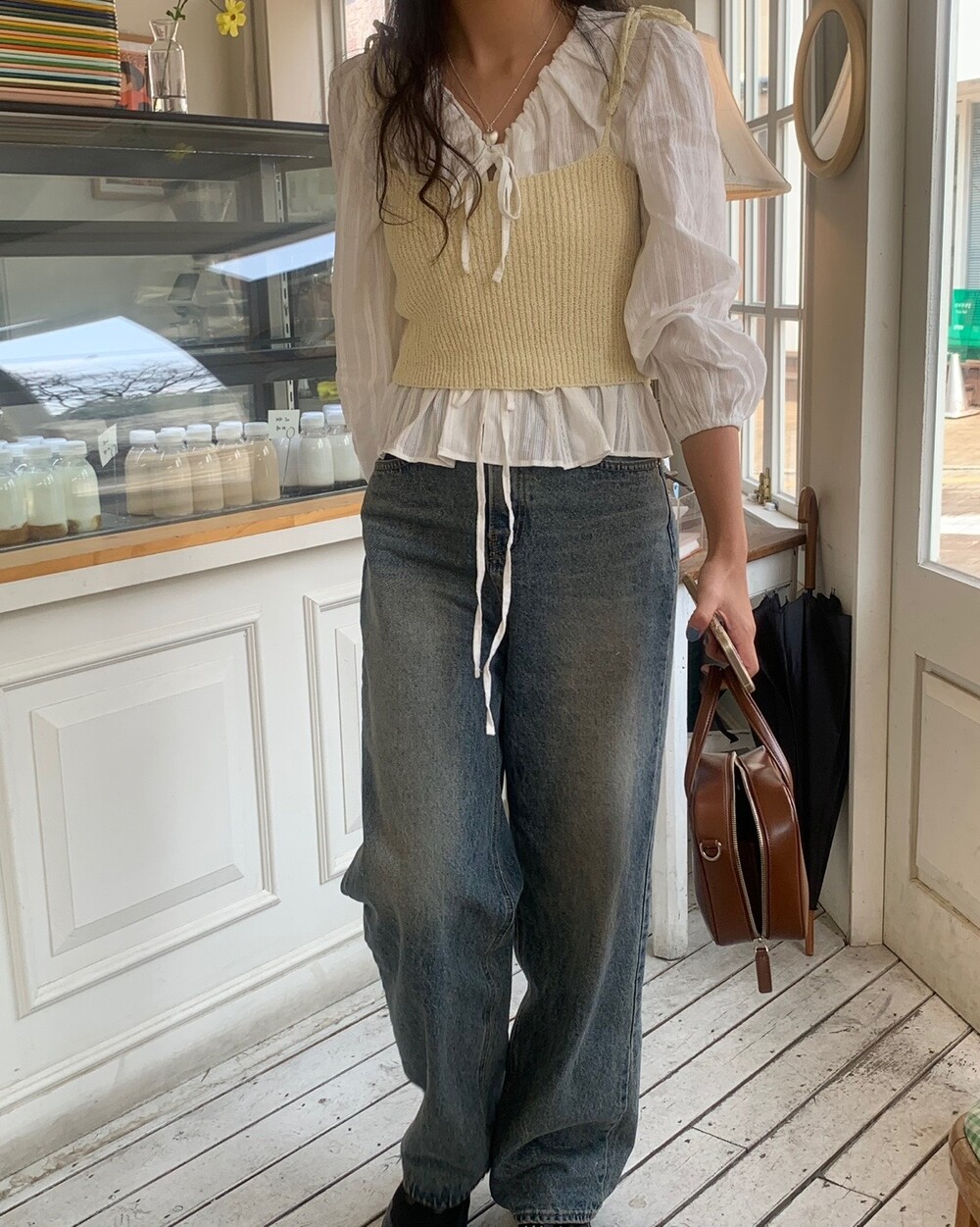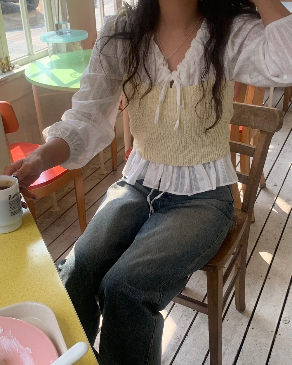 * 단추가 없는 제품으로 리본으로 클로징되는 제품입니다.