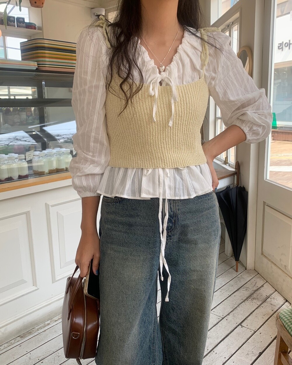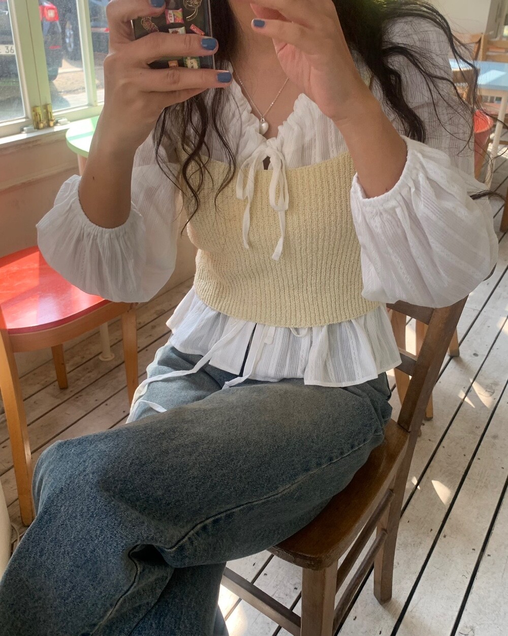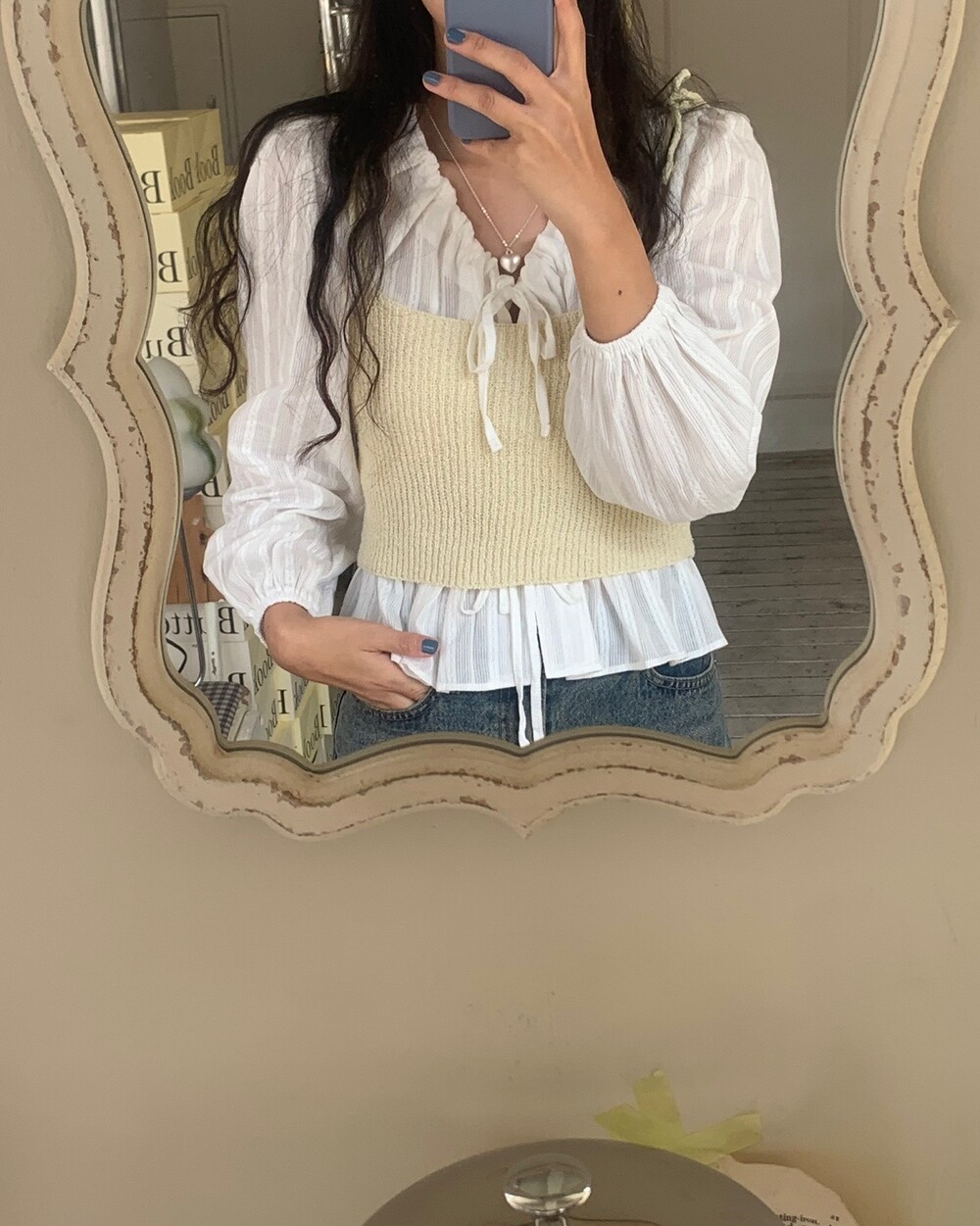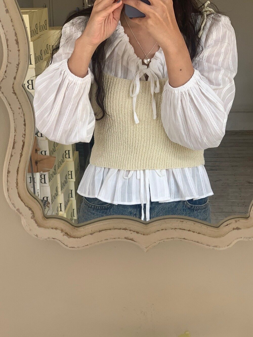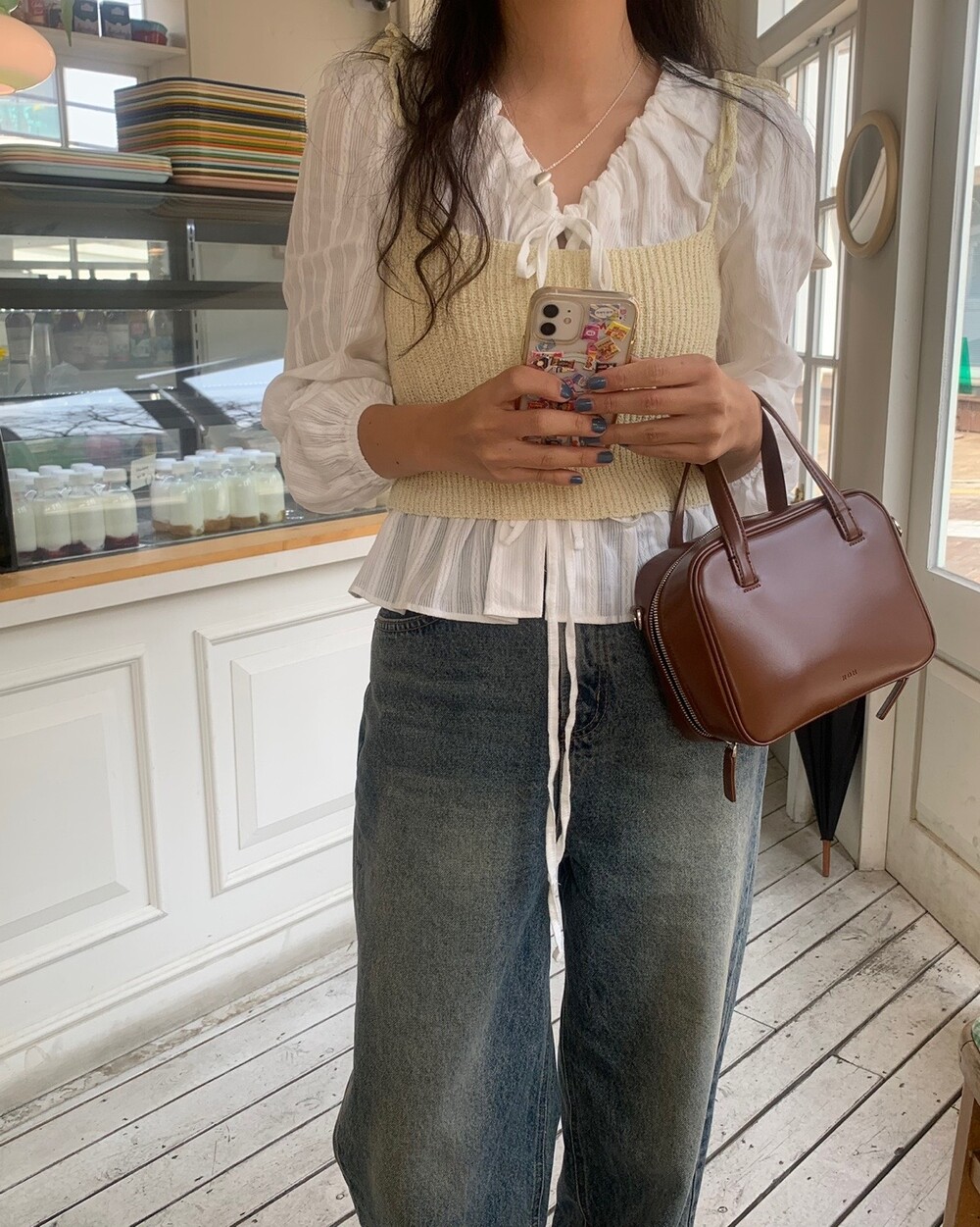 * 단추가 없는 제품으로 리본으로 클로징되는 제품입니다.
