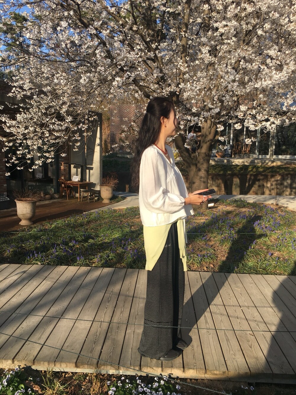 프론트 셔링 디테일로 자연스럽게 볼륨감을 살려주어 체형 커버는 물론, 한층 더 여성스러운 라인을 완성해주고, 살짝 퍼지는 플레어 핏으로 더욱 사랑스러운 무드를 연출해줘요.