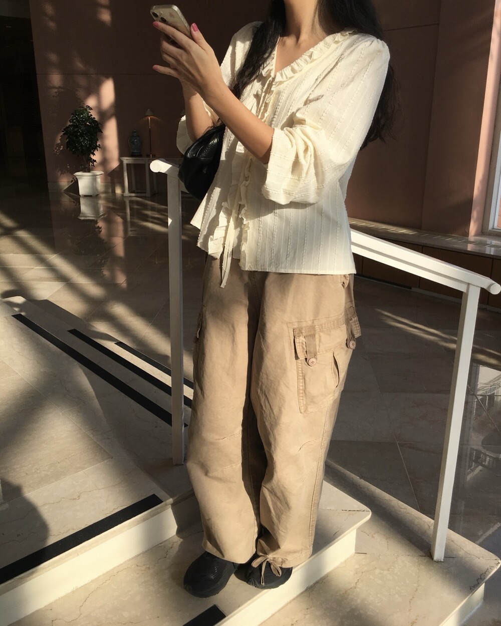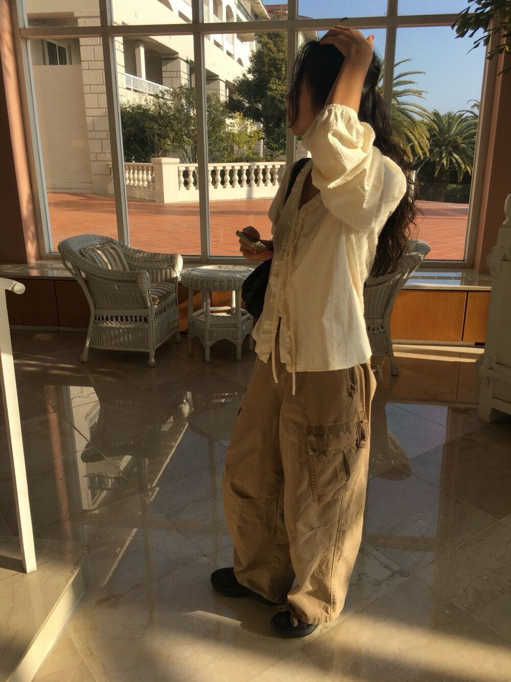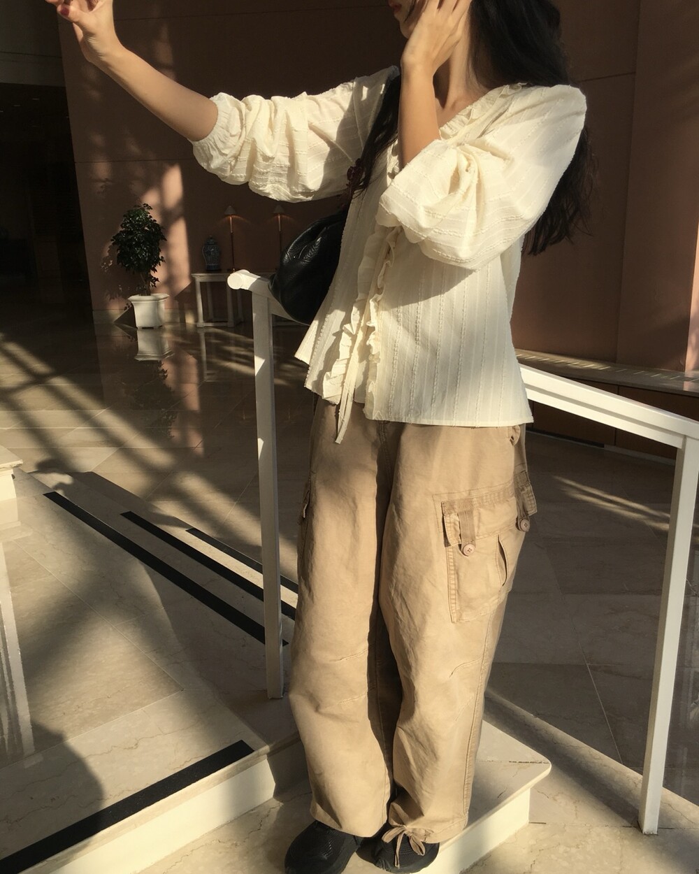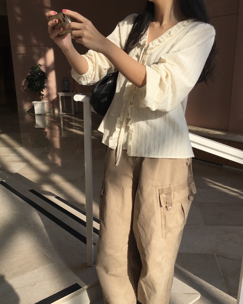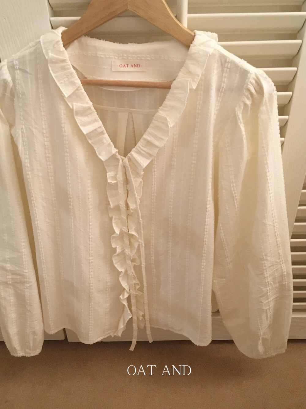 은은한 크림베이지 컬러와 흐르는 결감이 더해져 로맨틱한 무드가 느껴지는 블라우스 소개드려요 :)