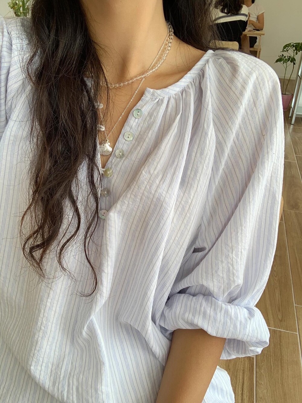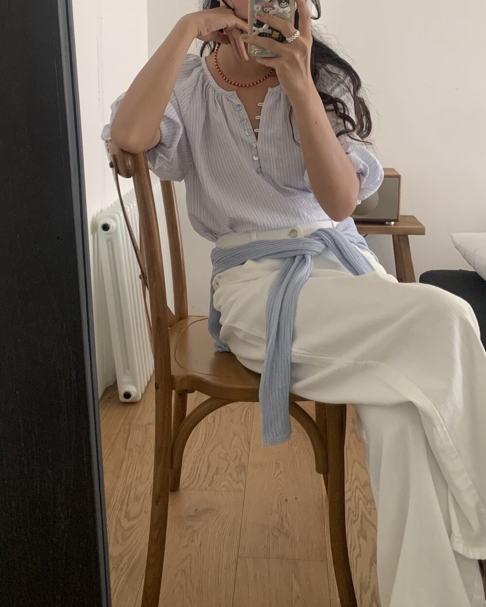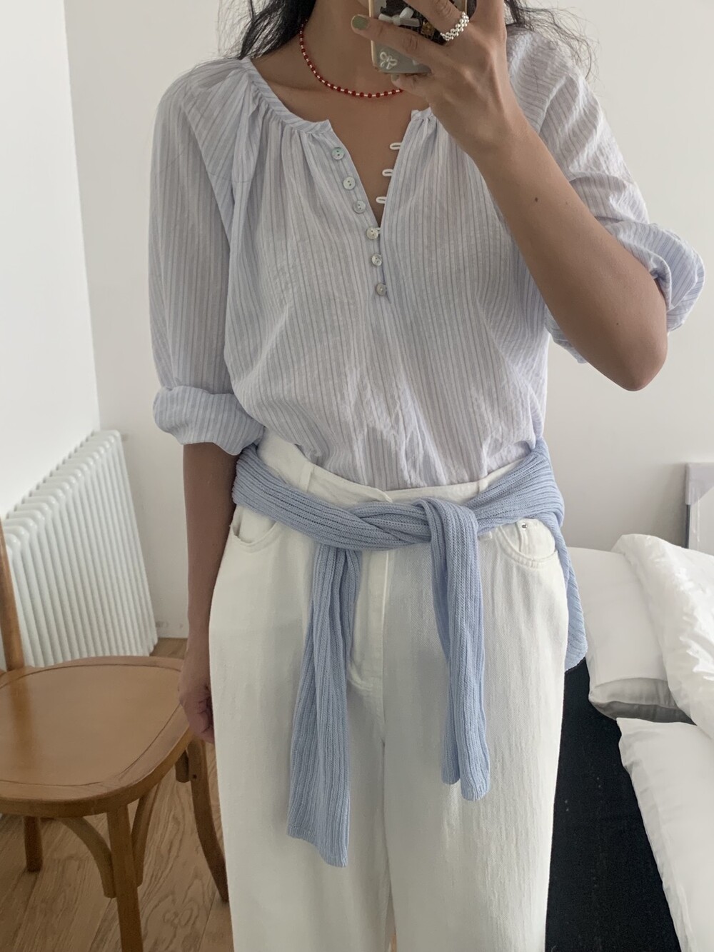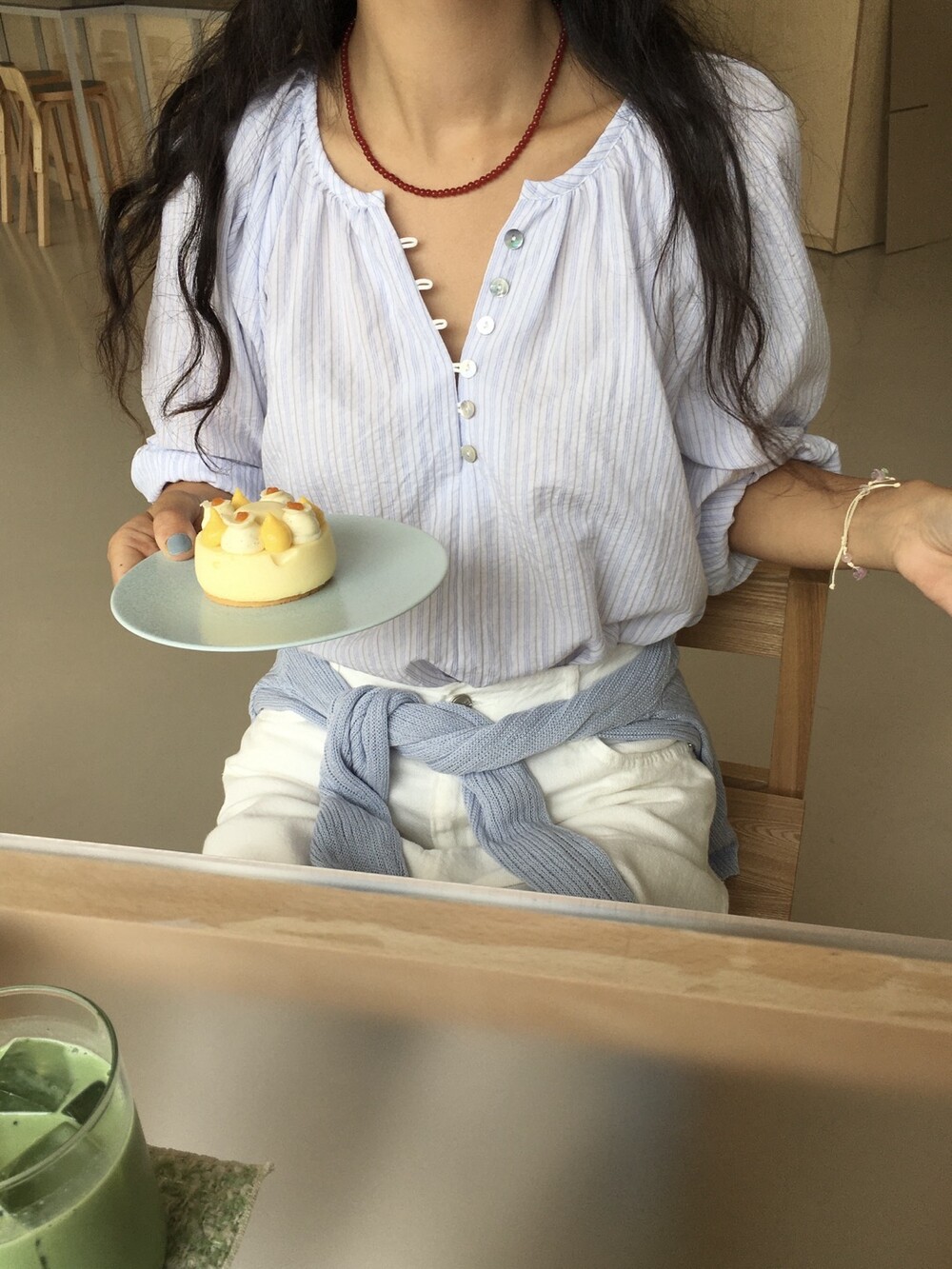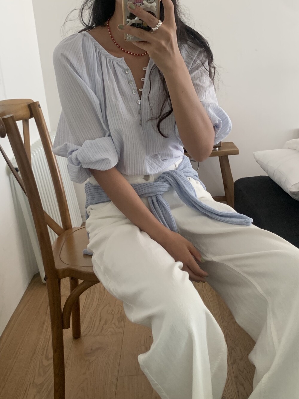 살에 닿는 순간 기분 좋은 촉감이 느껴지며, 햇빛을 막아주는 가볍고 시원한 소재로 제작되어, 봄부터 여름 내내 손이 자주 갈 블라우스랍니다.