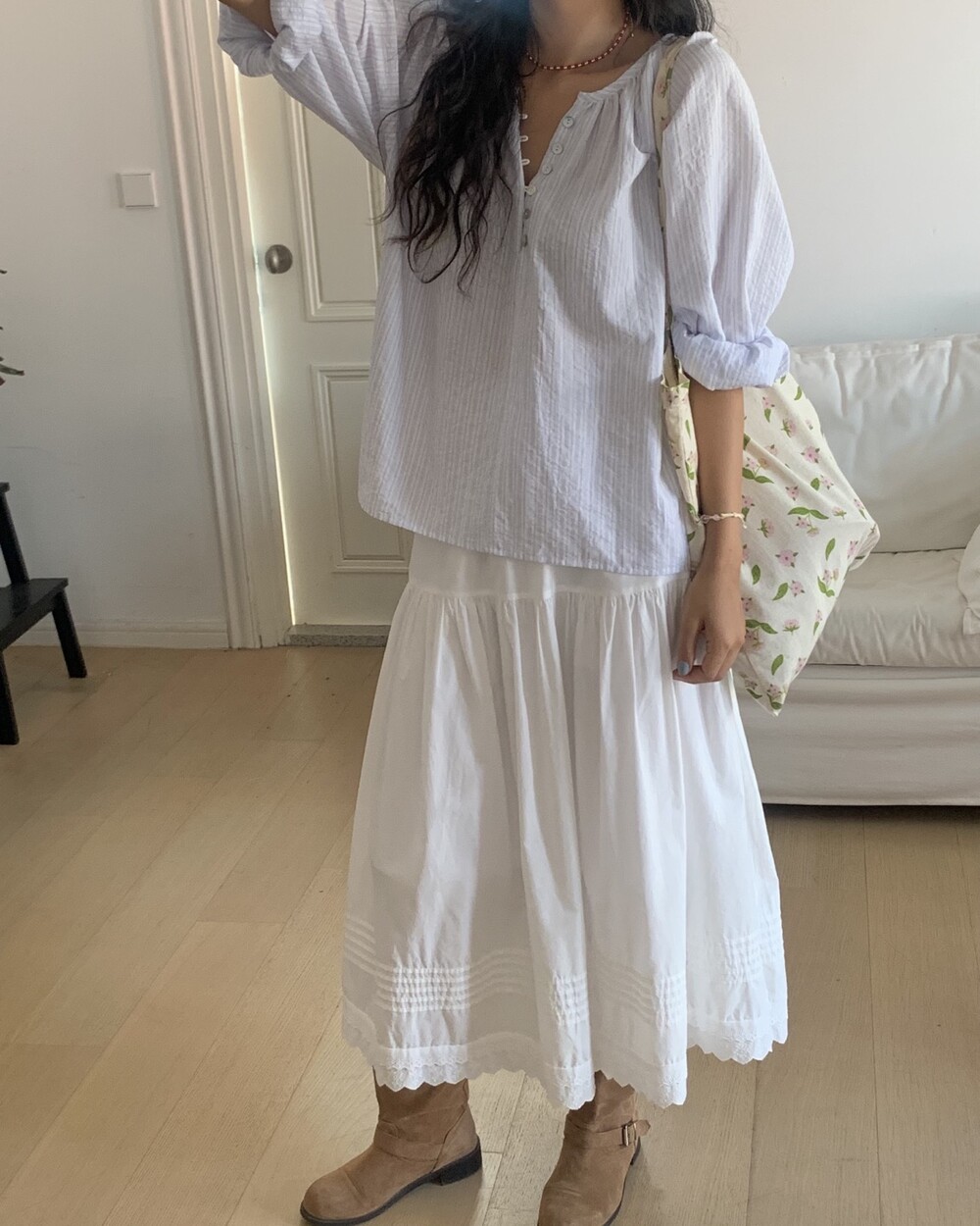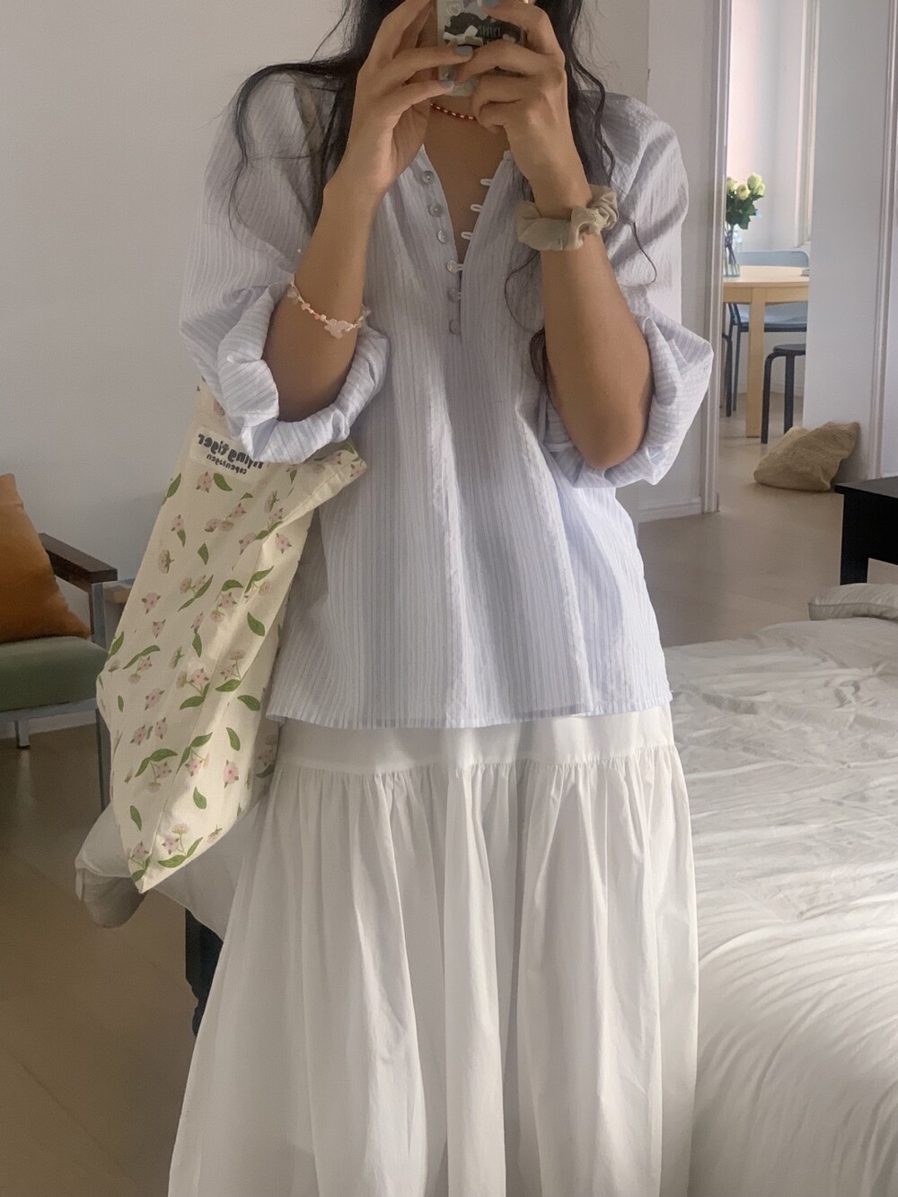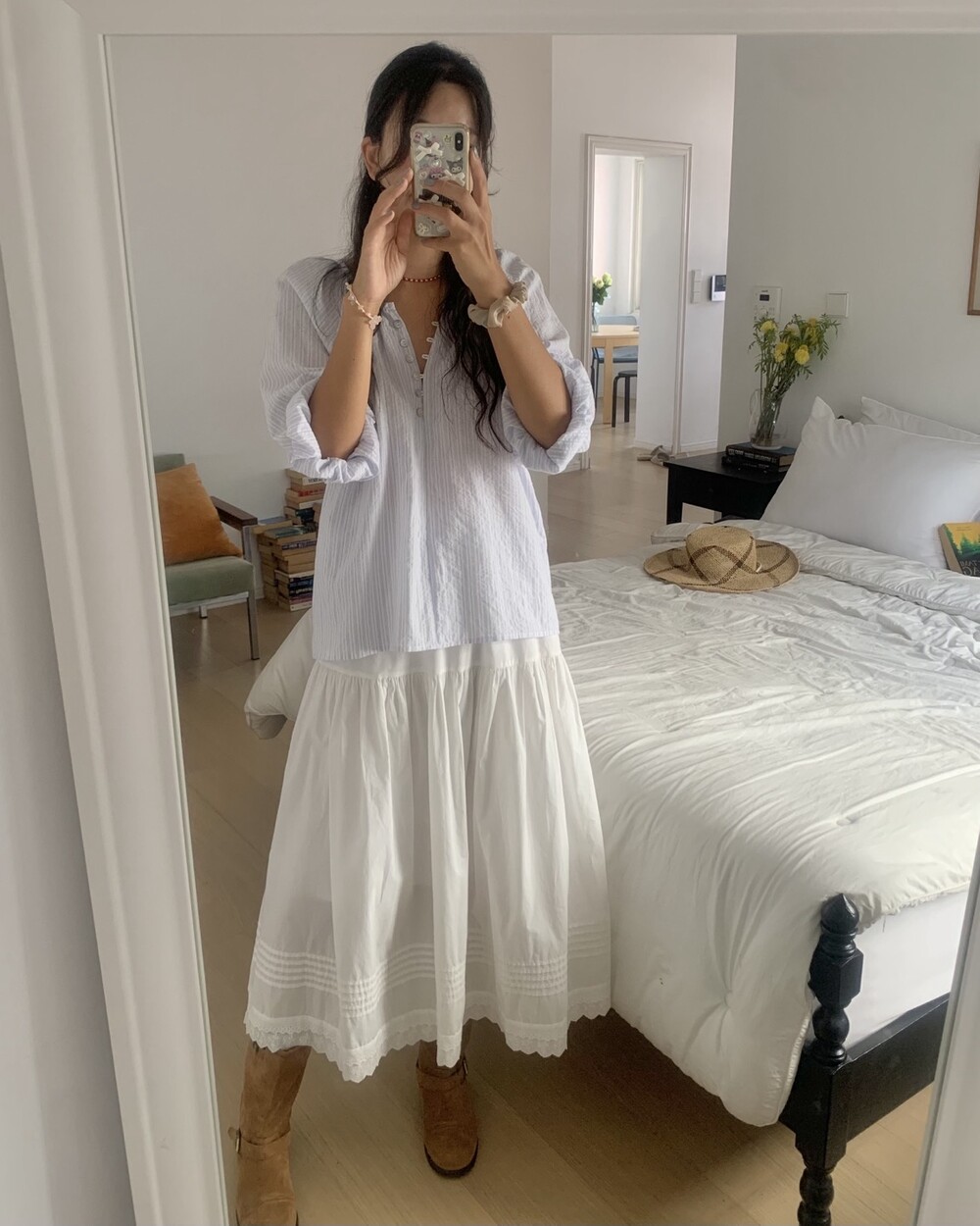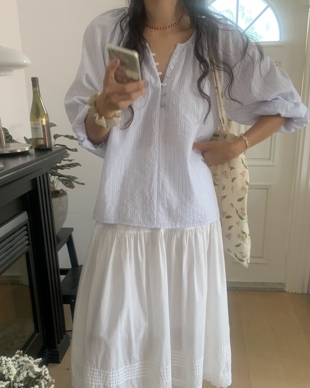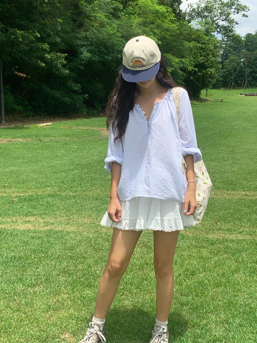 살에 닿는 순간 기분 좋은 촉감이 느껴지며, 햇빛을 막아주는 가볍고 시원한 소재로 제작되어, 봄부터 여름 내내 손이 자주 갈 블라우스랍니다.