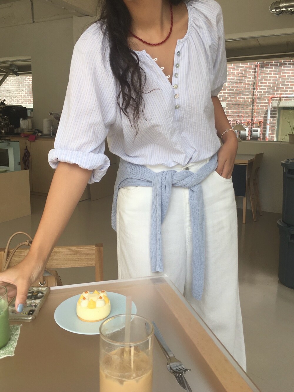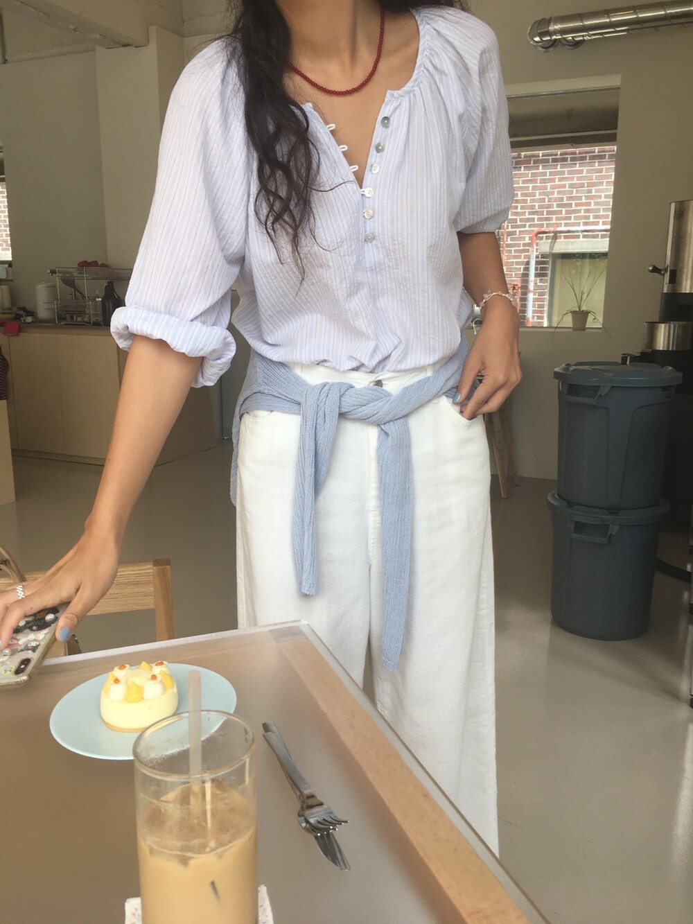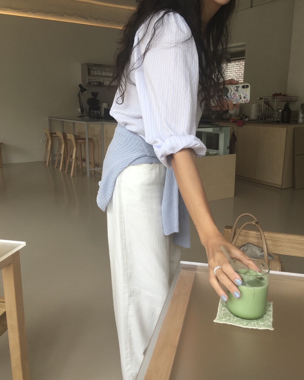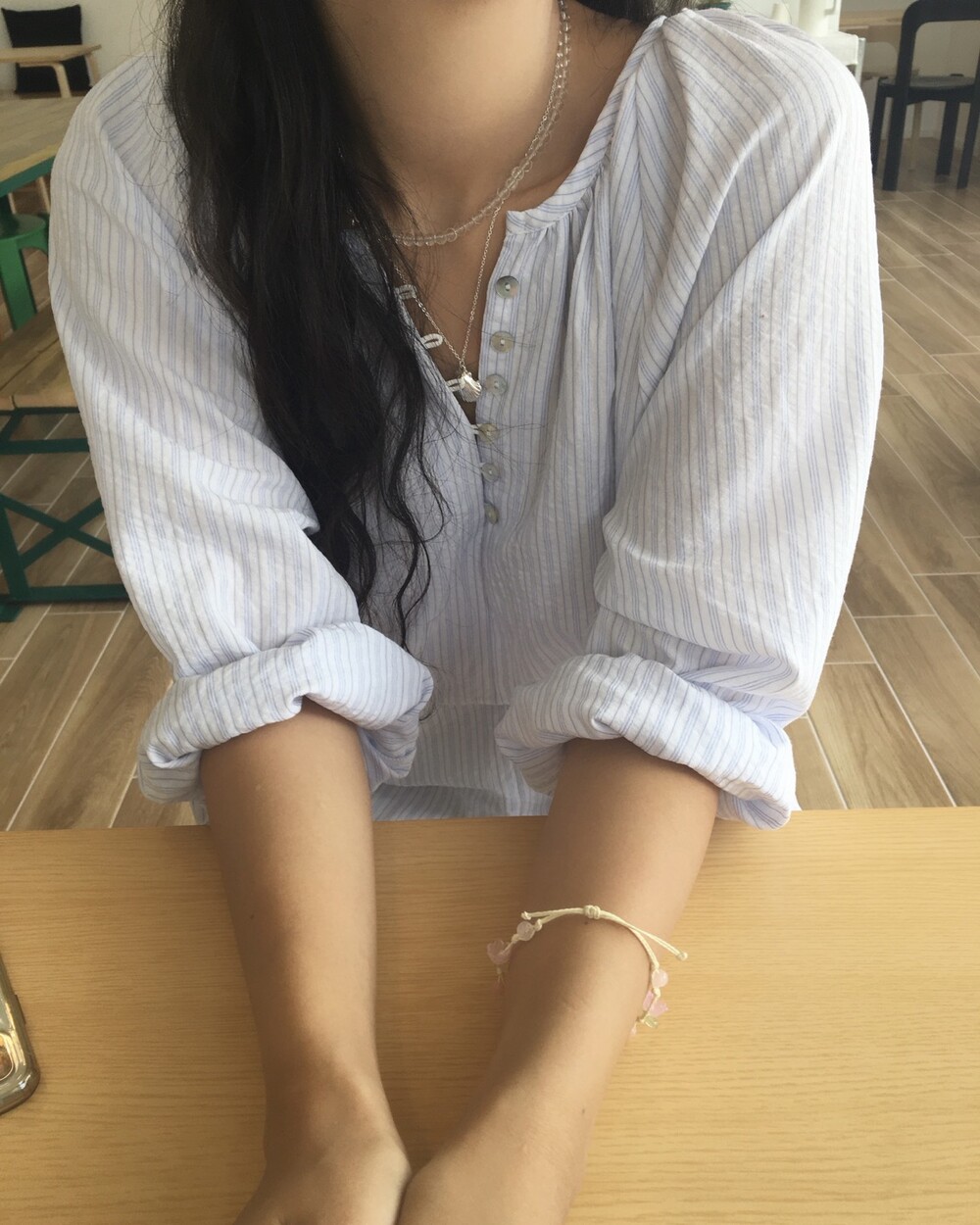 스트라이프 패턴은 클래식하면서도 유행을 타지 않아서, 매 시즌 활용 가능하고, 자연스럽게 떨어지는 루즈핏은몸의 군살은 가려주고, 여리한 실루엣을 완성해 줄거에요! 그래서 더욱 손이 자주 갈 아이템입니다.