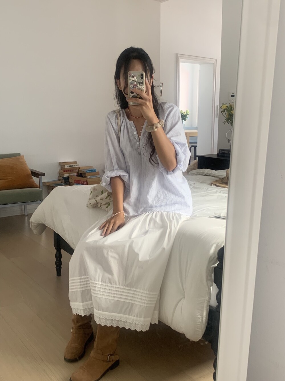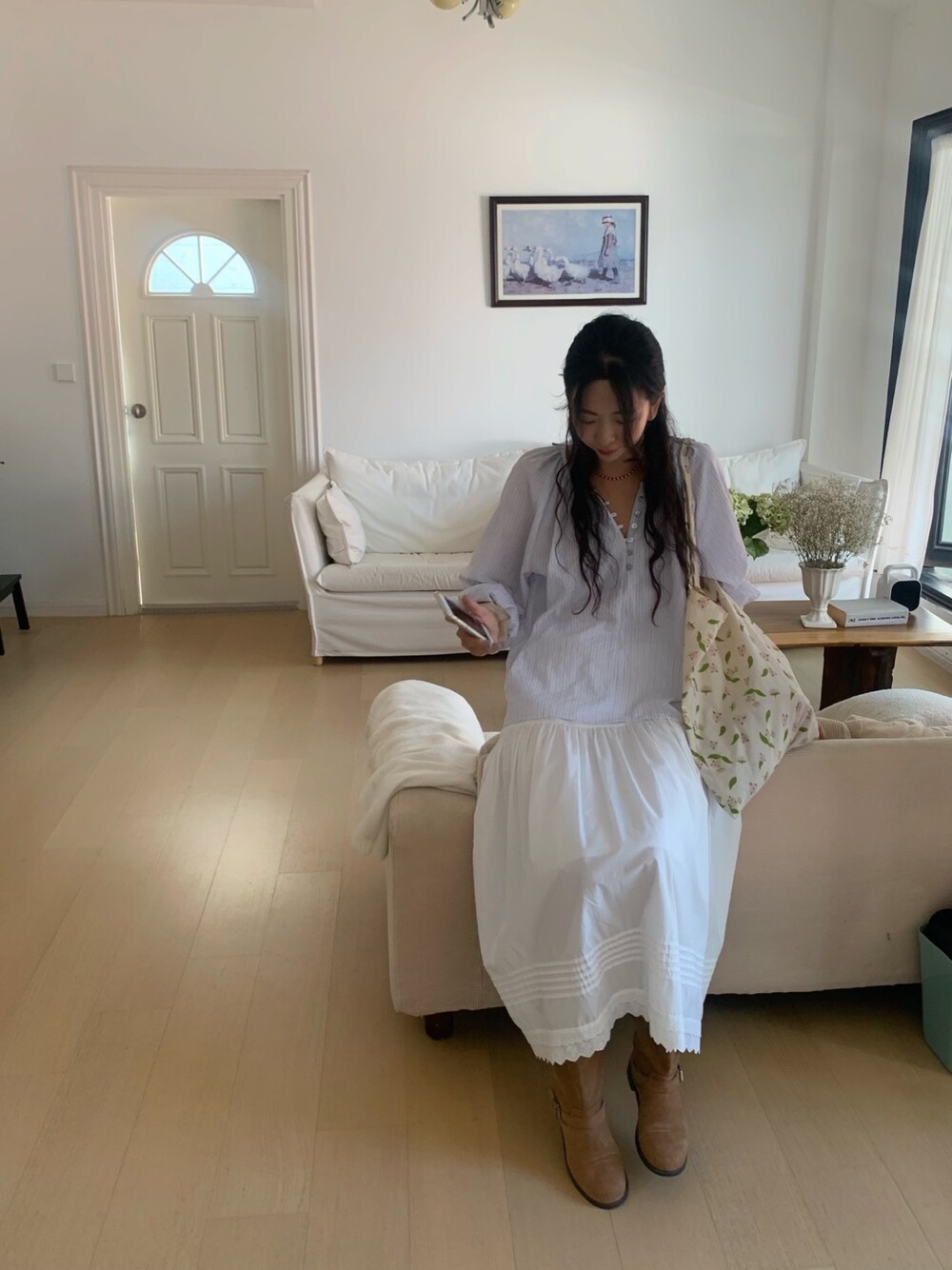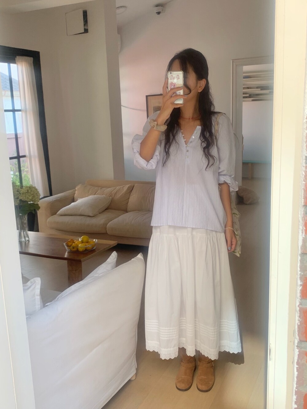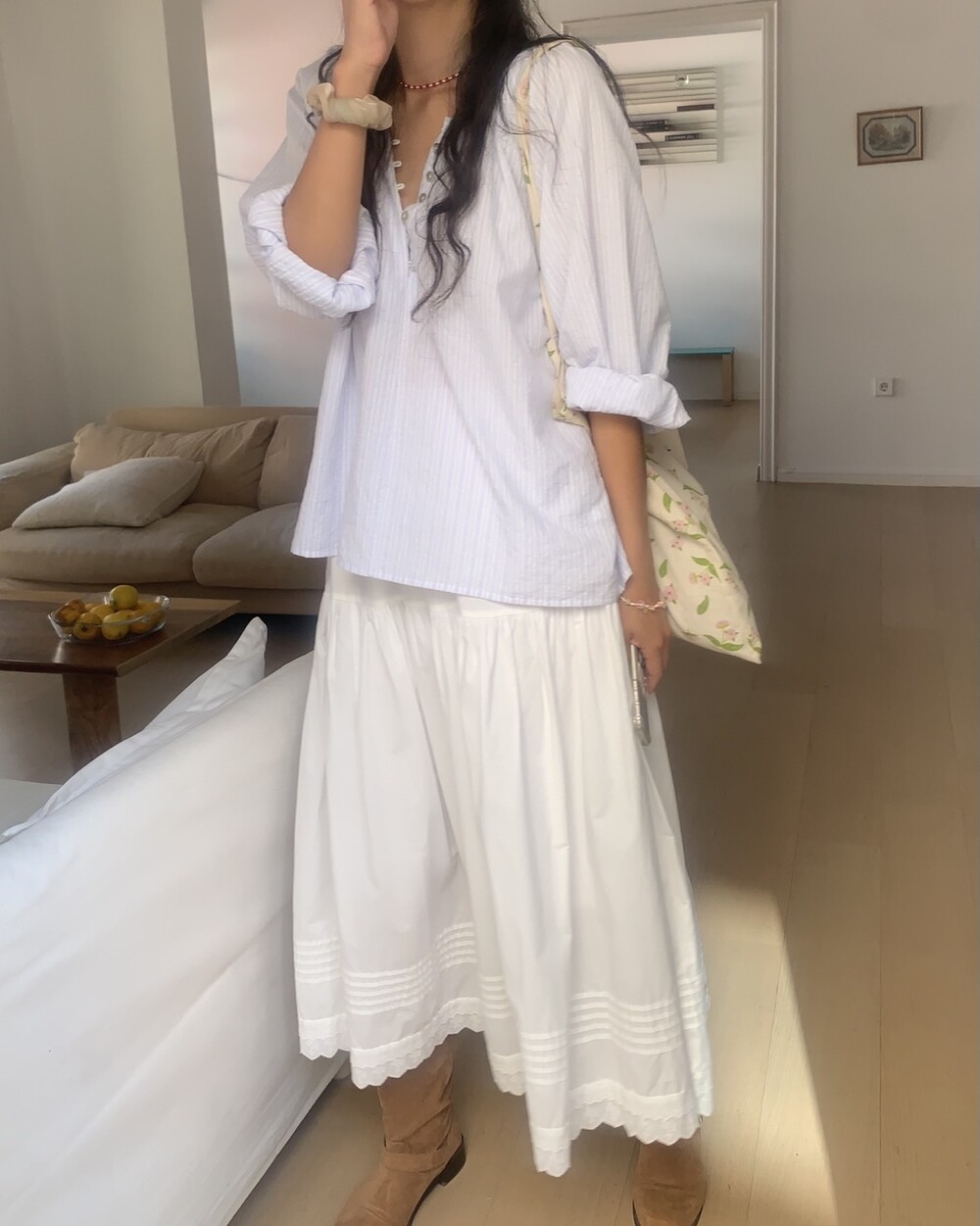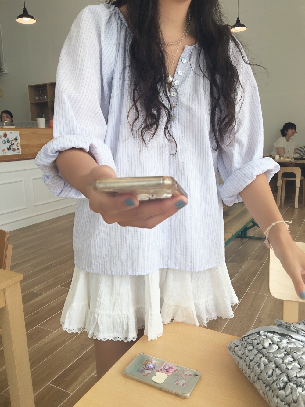 스트라이프 패턴은 클래식하면서도 유행을 타지 않아서, 매 시즌 활용 가능하고, 자연스럽게 떨어지는 루즈핏은몸의 군살은 가려주고, 여리한 실루엣을 완성해 줄거에요! 그래서 더욱 손이 자주 갈 아이템입니다.