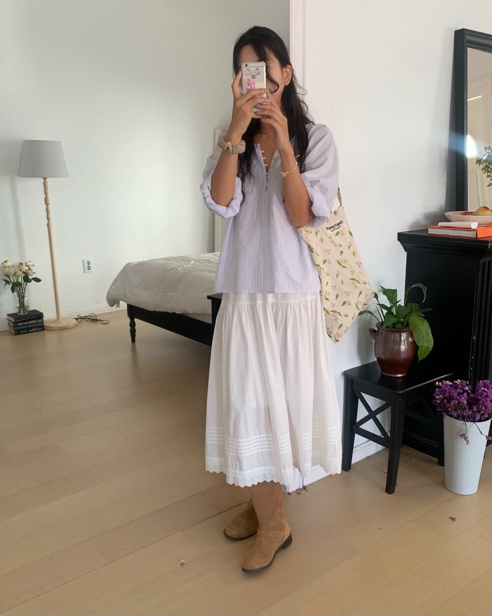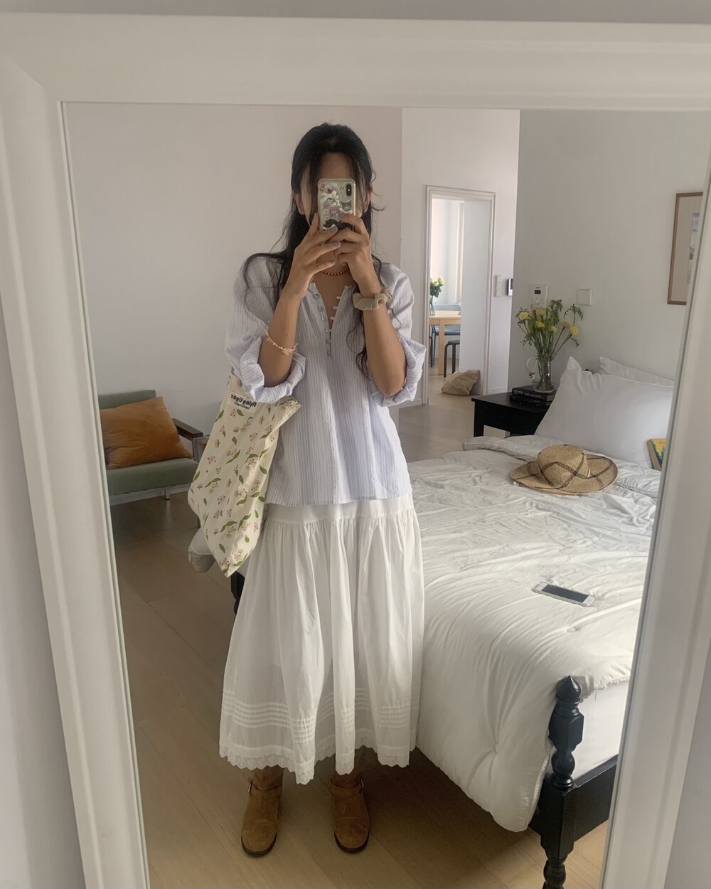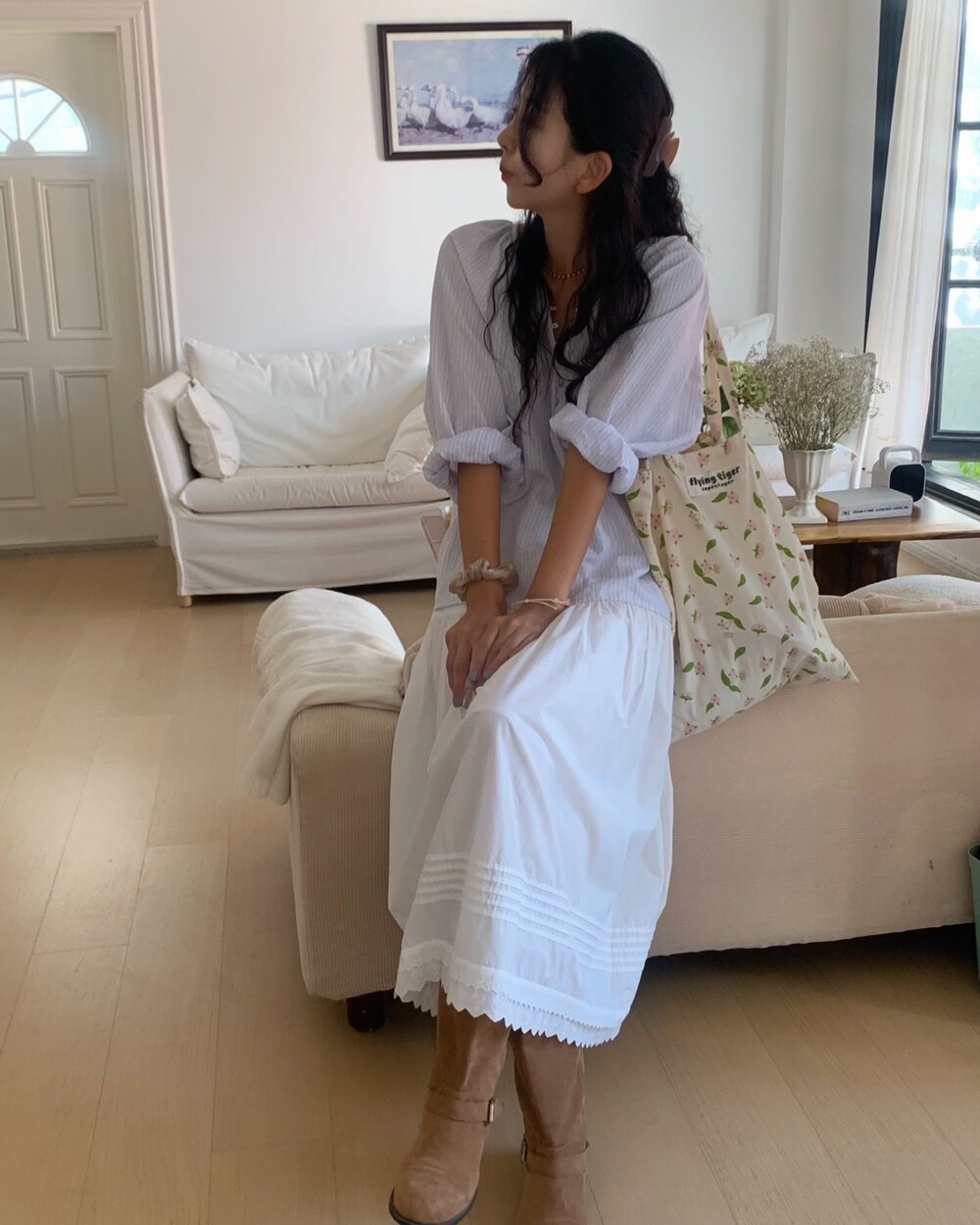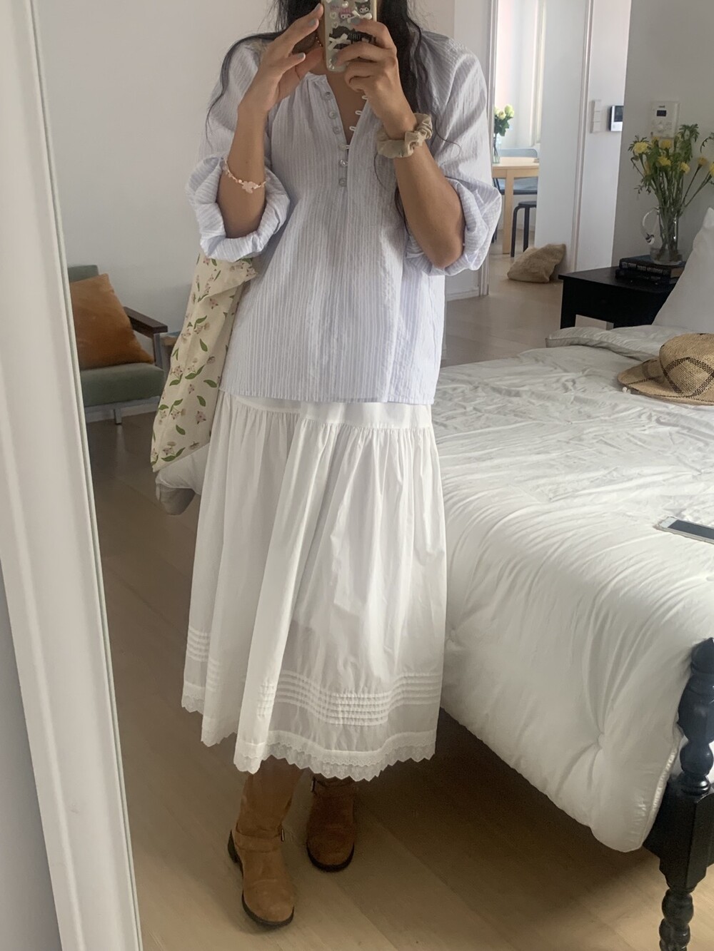 스트라이프 패턴은 클래식하면서도 유행을 타지 않아서, 매 시즌 활용 가능하고, 자연스럽게 떨어지는 루즈핏은몸의 군살은 가려주고, 여리한 실루엣을 완성해 줄거에요! 그래서 더욱 손이 자주 갈 아이템입니다.