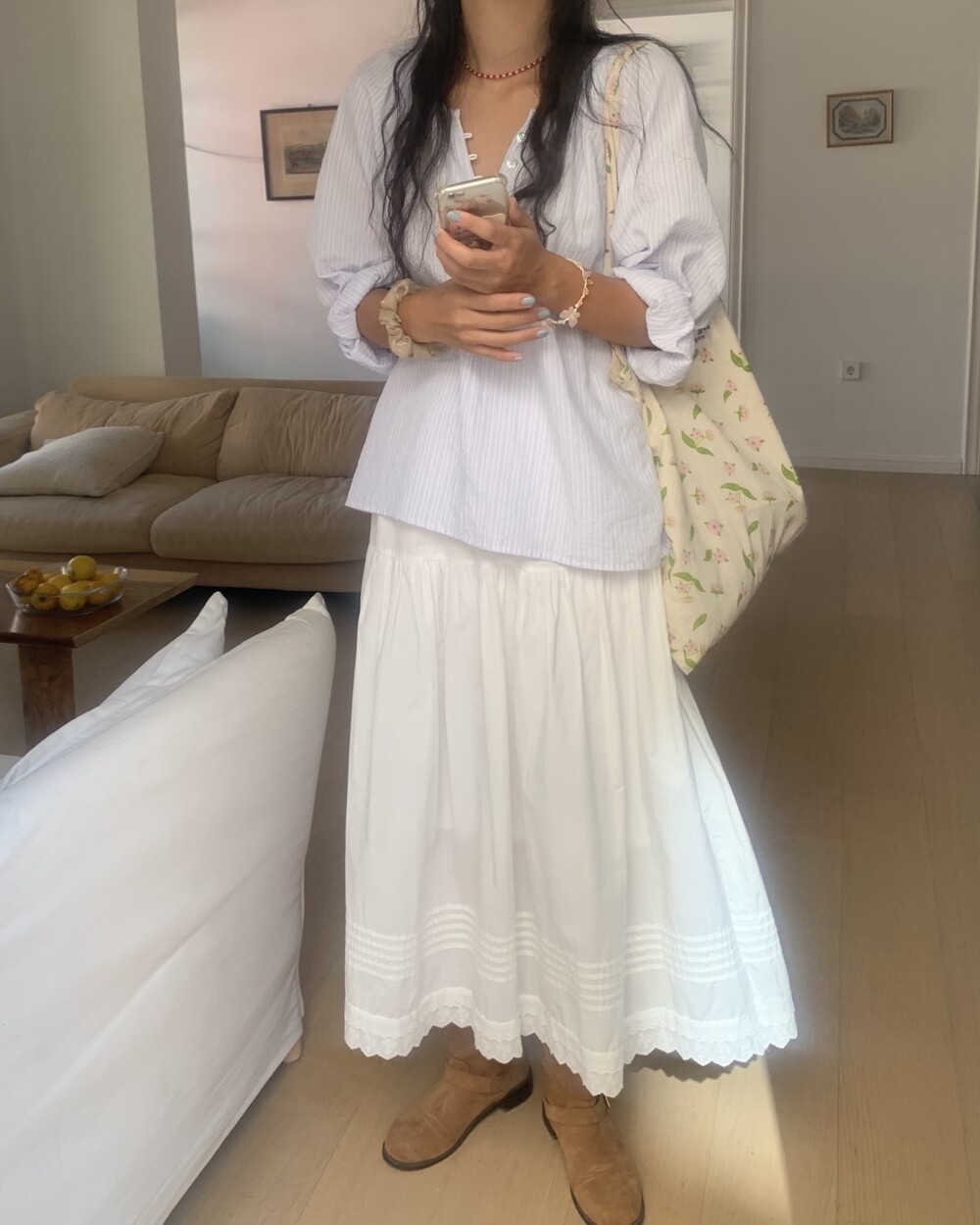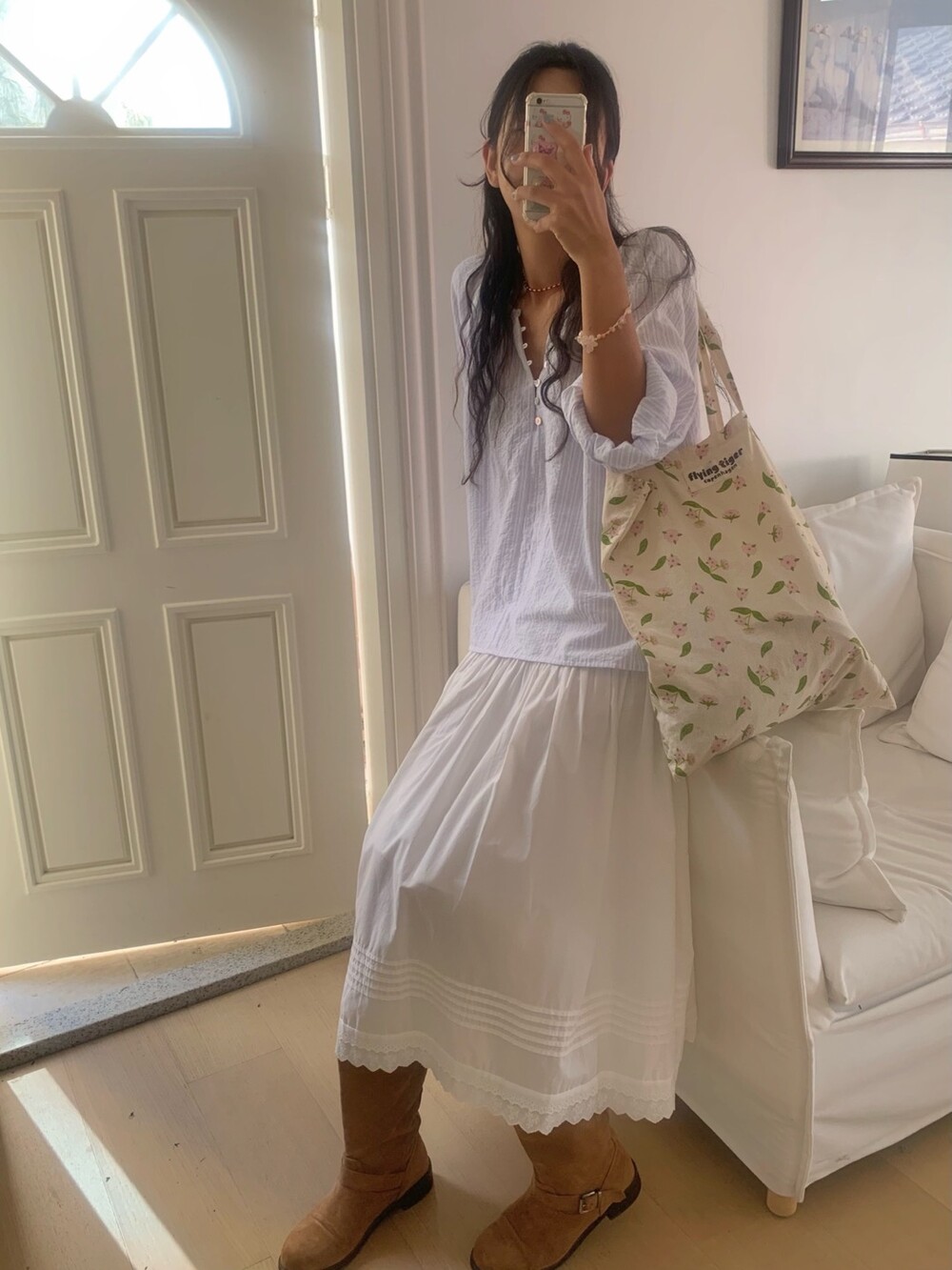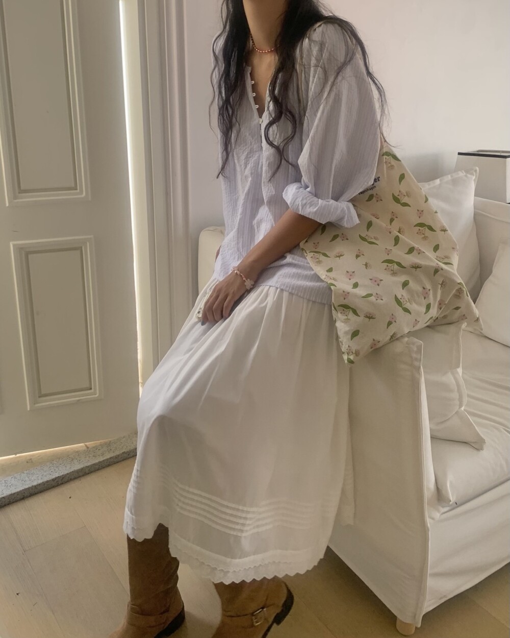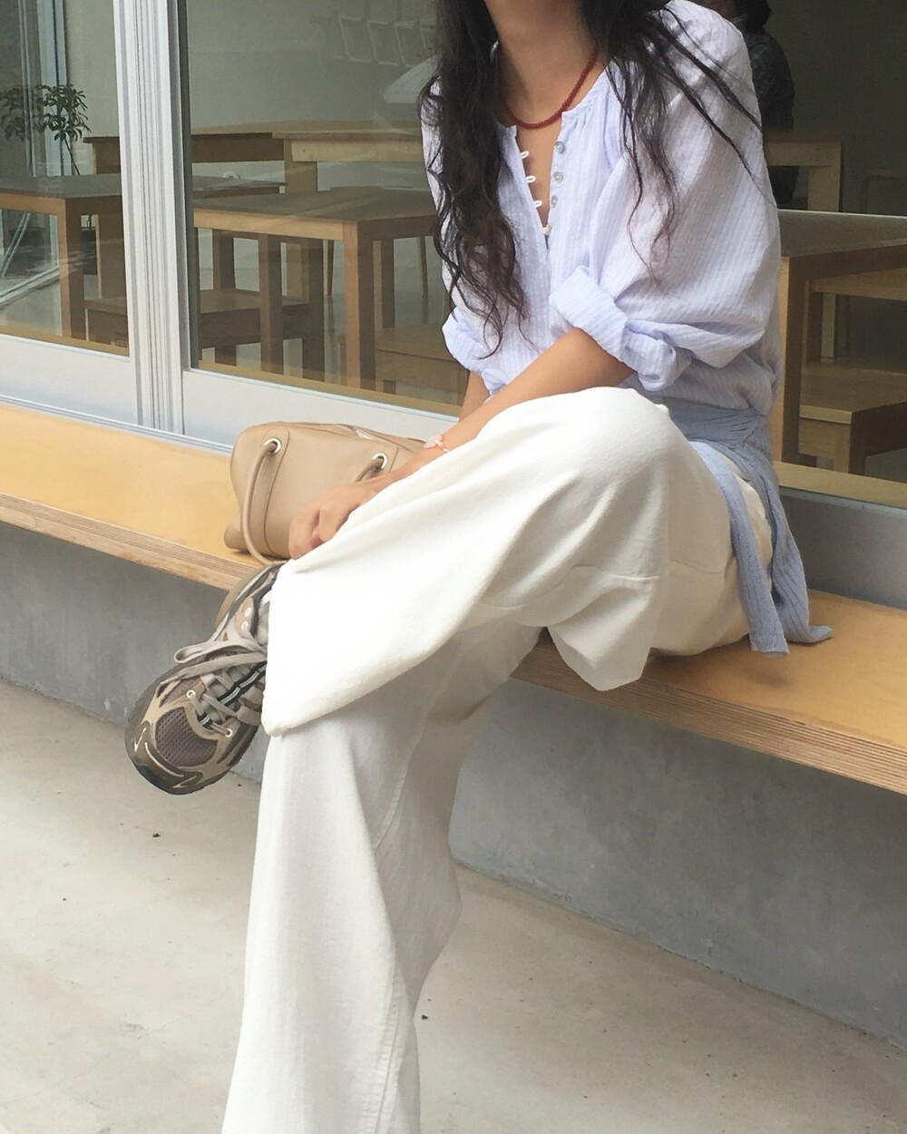 어깨선이 부드럽게 떨어지는 구조라툭 걸쳐 입기만 해도 ‘꾸안꾸 프렌치 무드’가 살아납니다.
