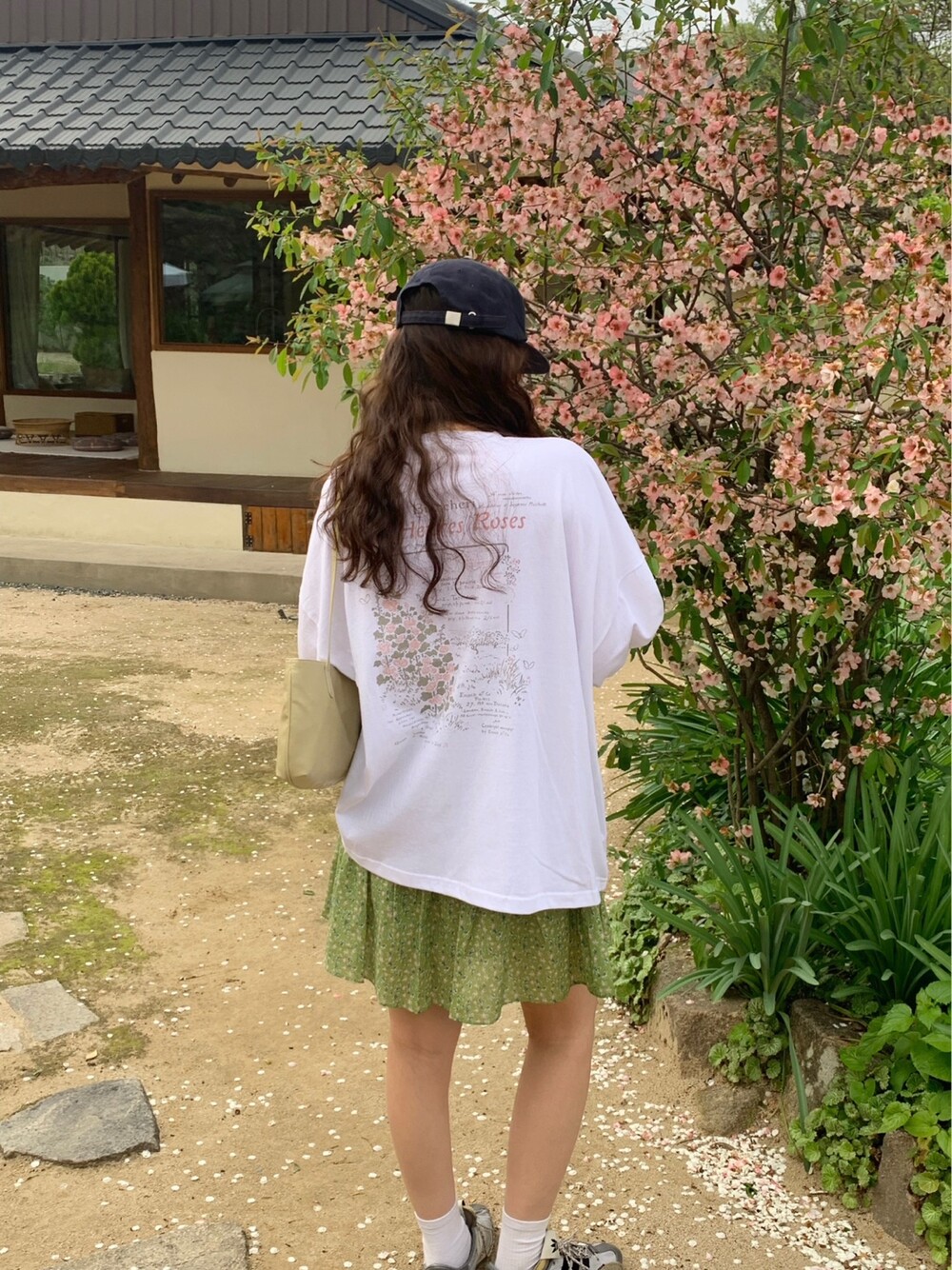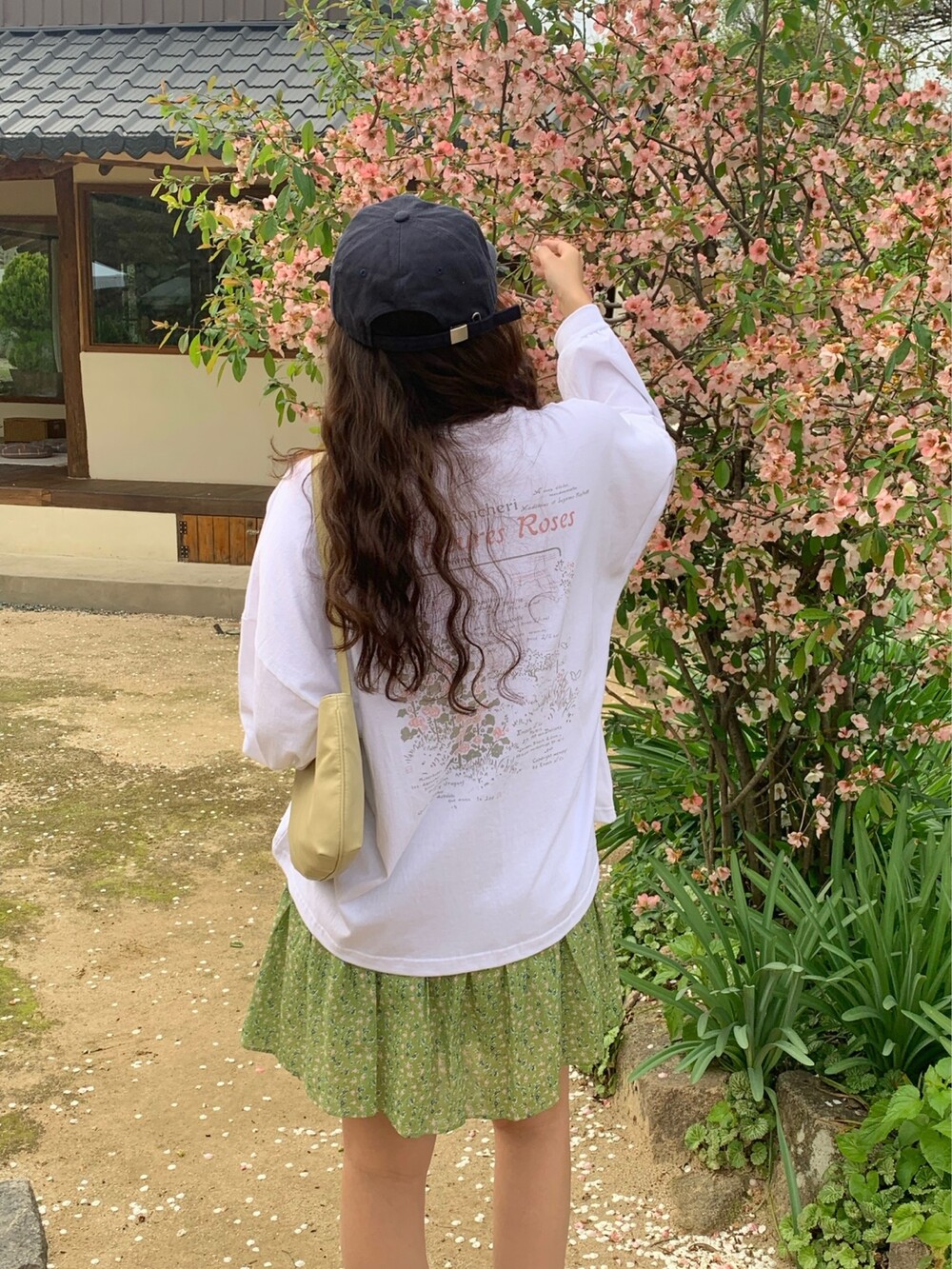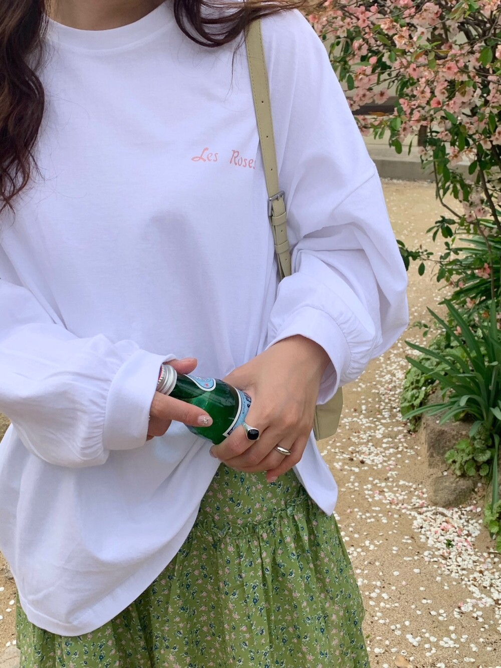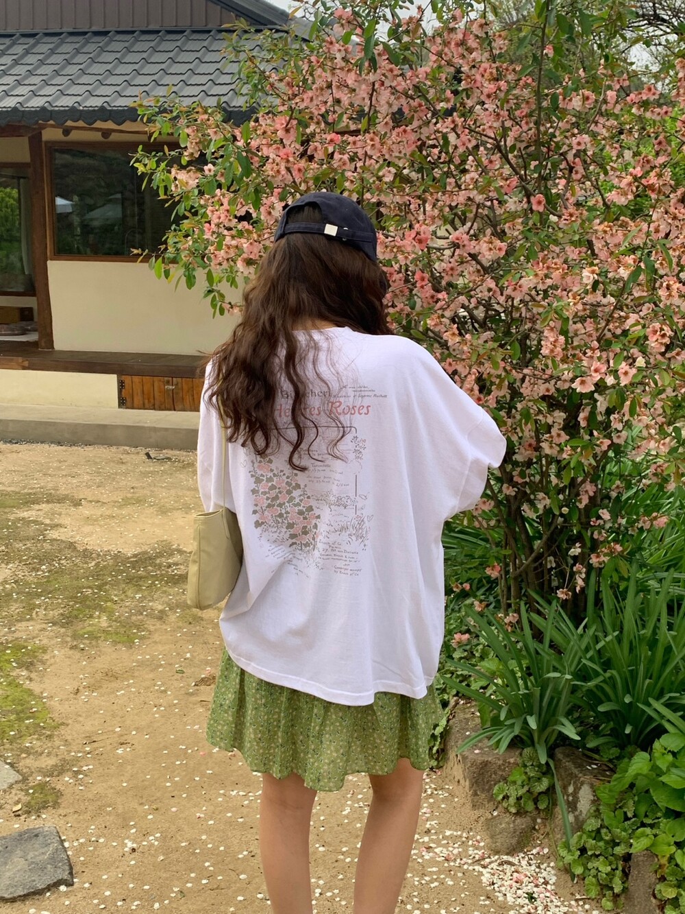 앞면은 심플한 레터링 디테일로 깔끔하게, 뒷면은 빈티지한 로즈 프린팅으로 확실한 포인트를 더해 앞뒤 다른 매력이 돋보이는 아이템이에요.