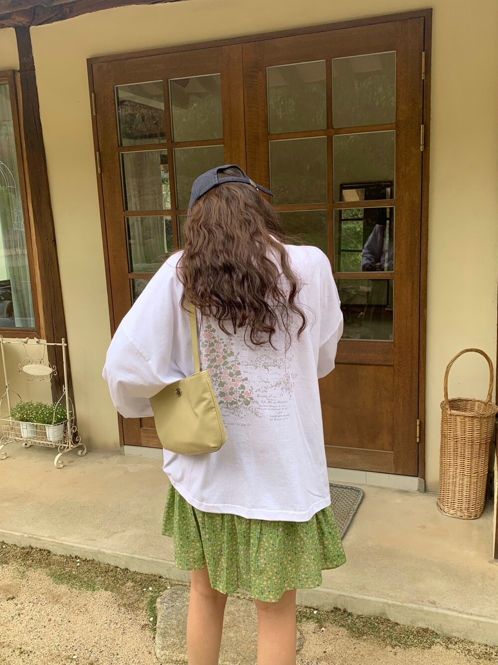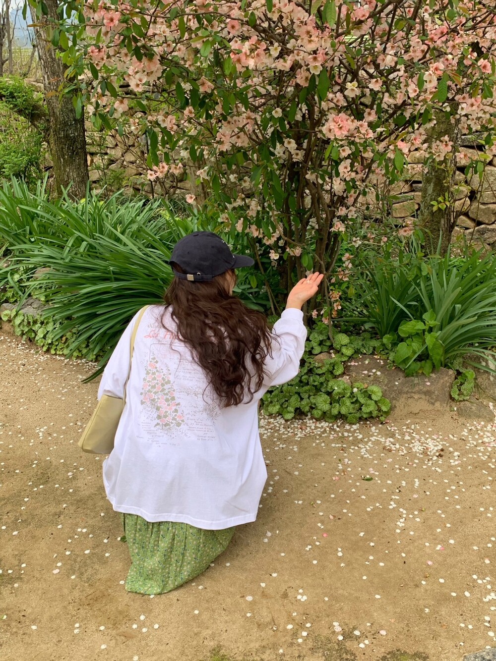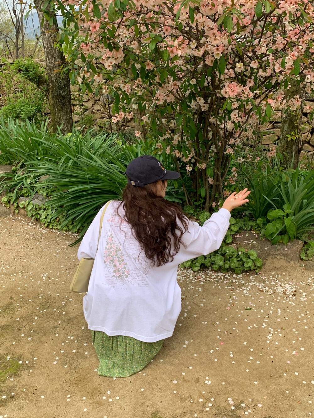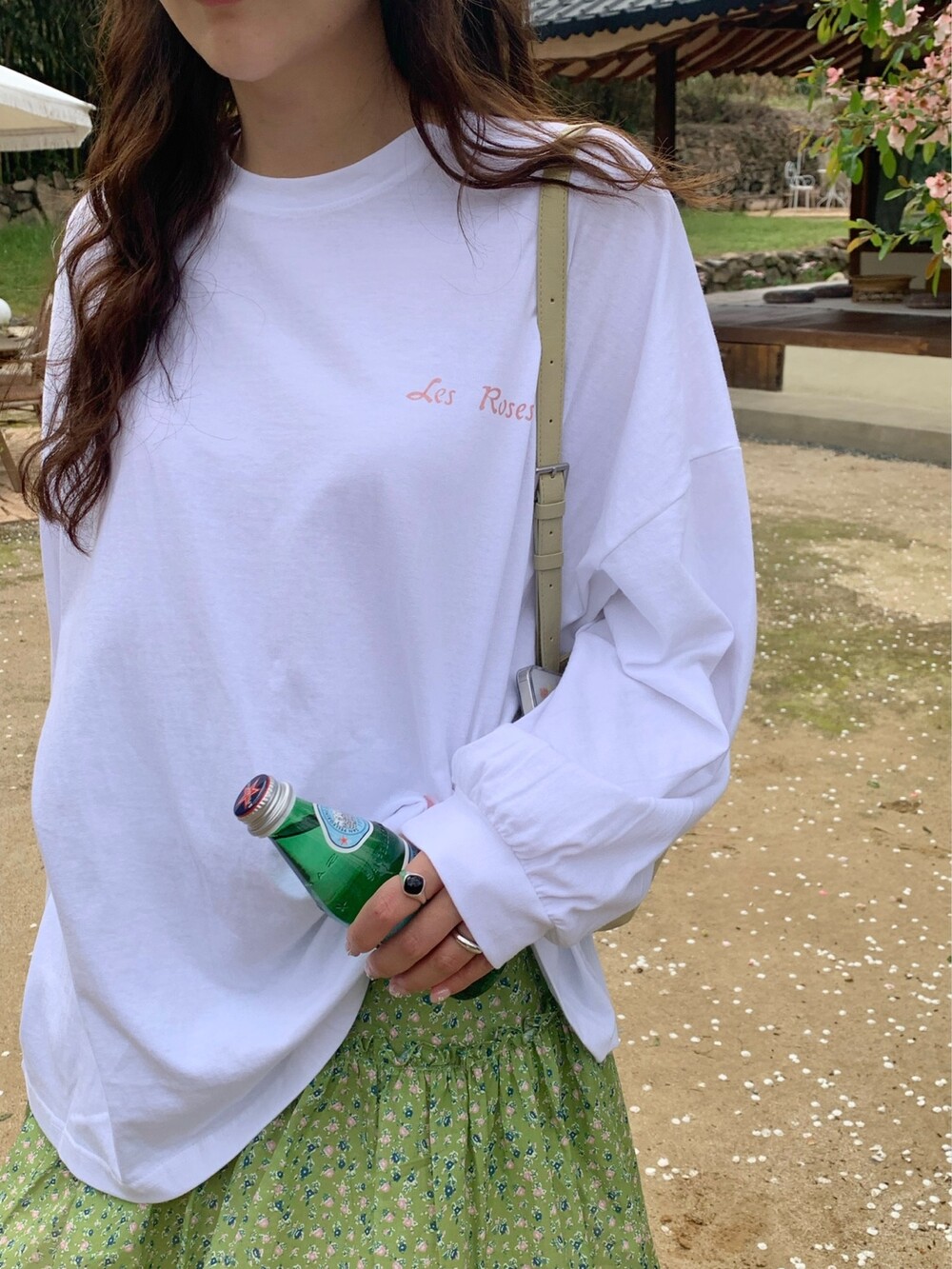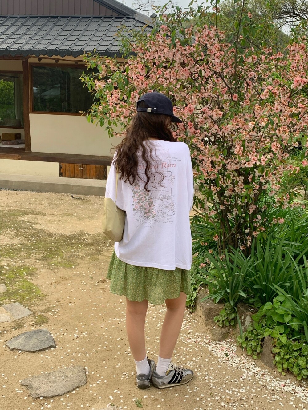 앞면은 심플한 레터링 디테일로 깔끔하게, 뒷면은 빈티지한 로즈 프린팅으로 확실한 포인트를 더해 앞뒤 다른 매력이 돋보이는 아이템이에요.