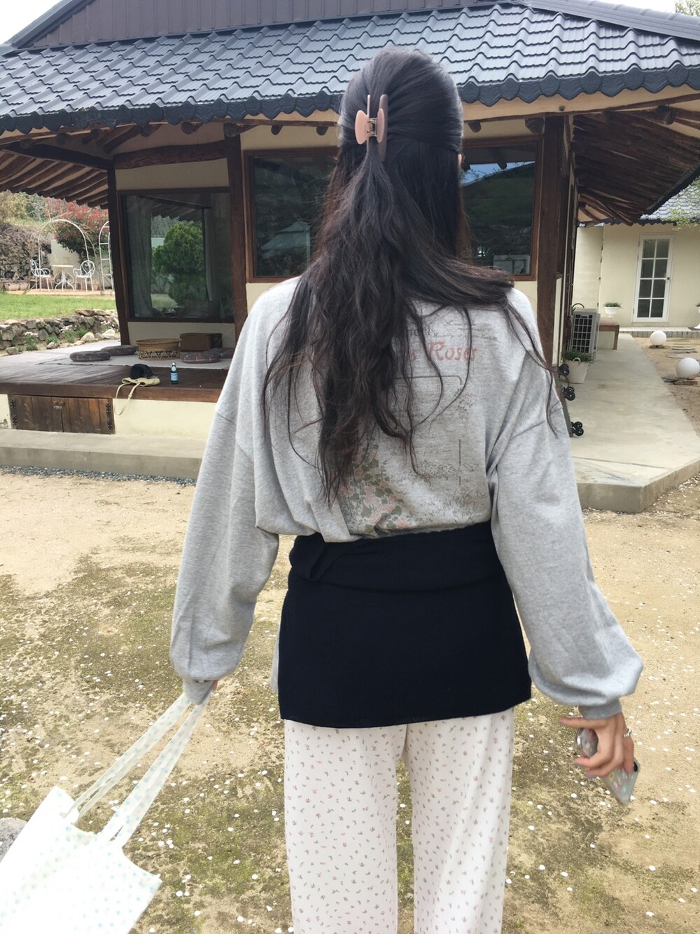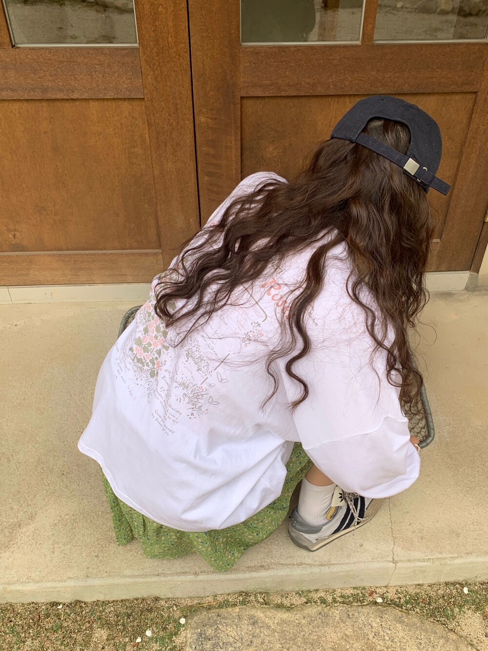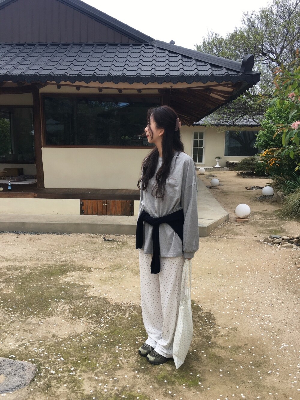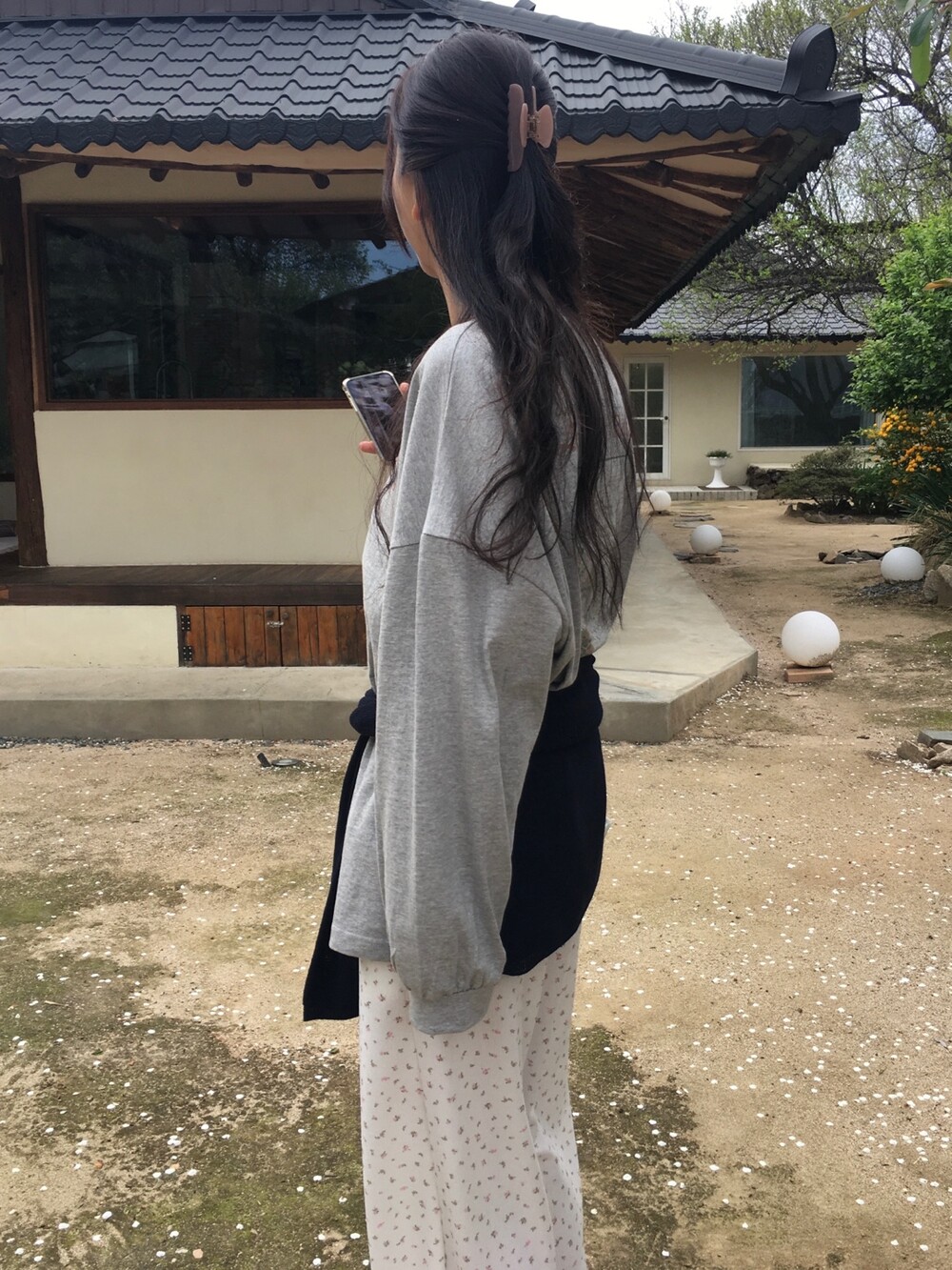 여유롭게 떨어지는 루즈핏 실루엣으로 체형 부담 없이 편안하게 착용되며, 자연스럽게 흐르는 핏이 여리여리한 분위기를 연출해줍니다.
