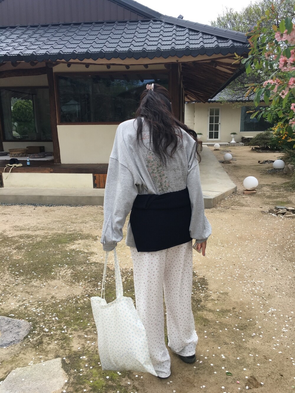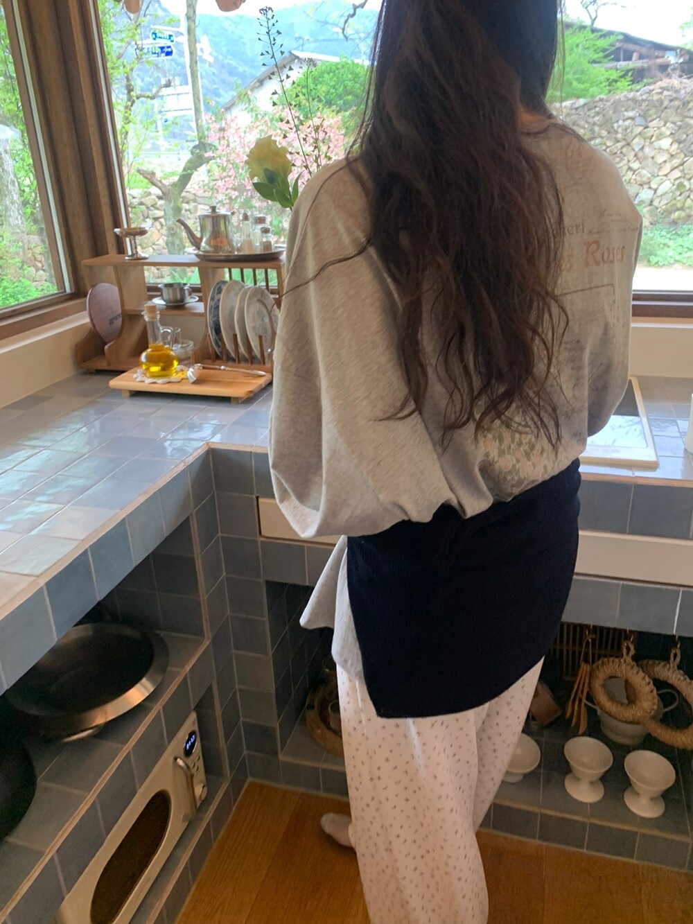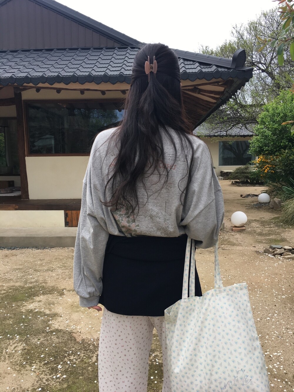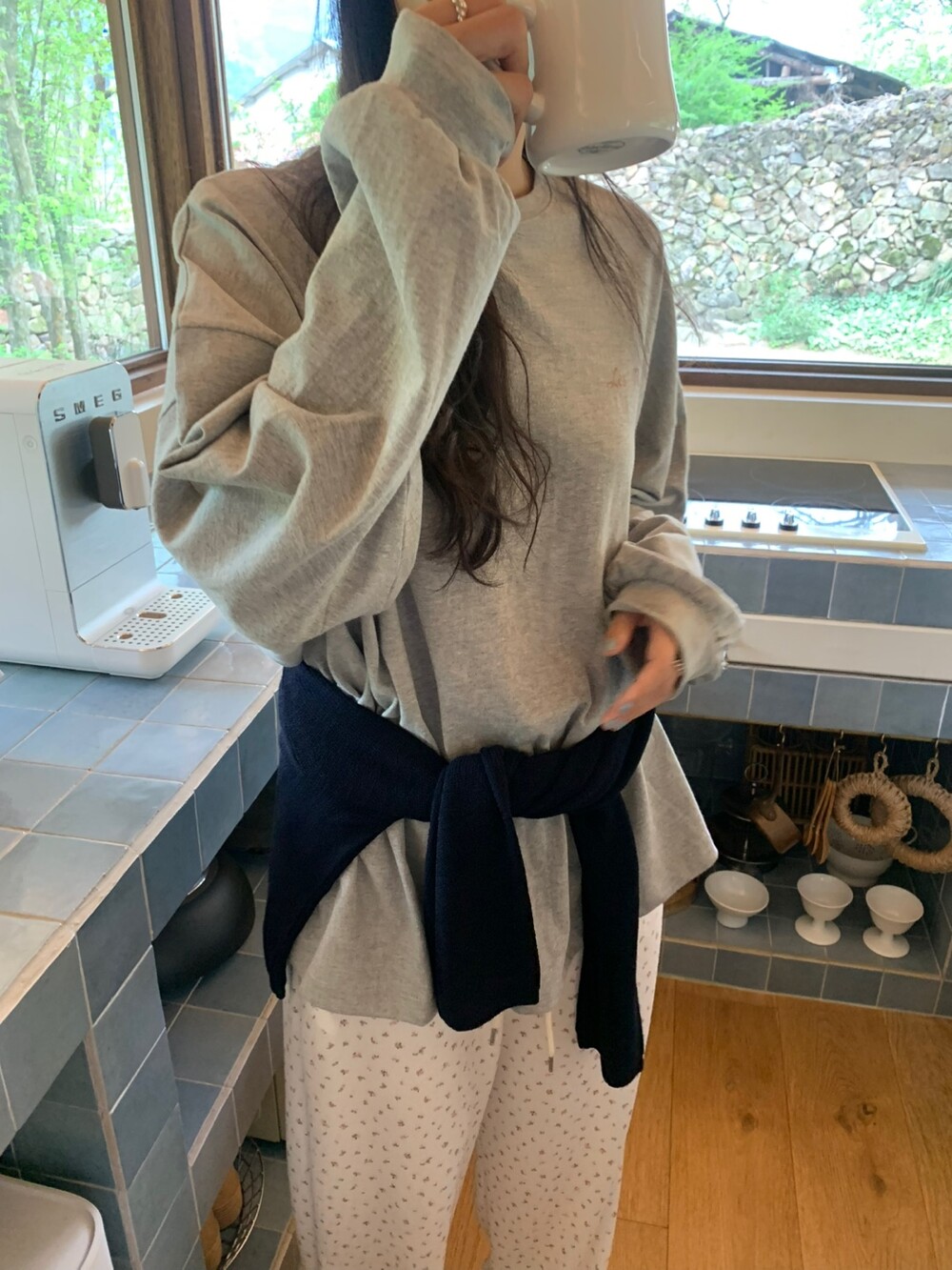 여유롭게 떨어지는 루즈핏 실루엣으로 체형 부담 없이 편안하게 착용되며, 자연스럽게 흐르는 핏이 여리여리한 분위기를 연출해줍니다.