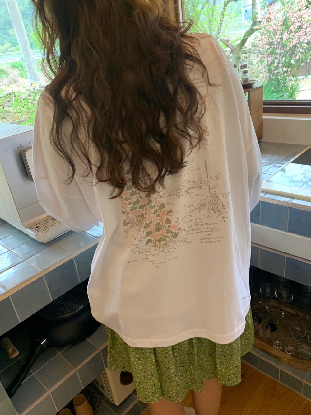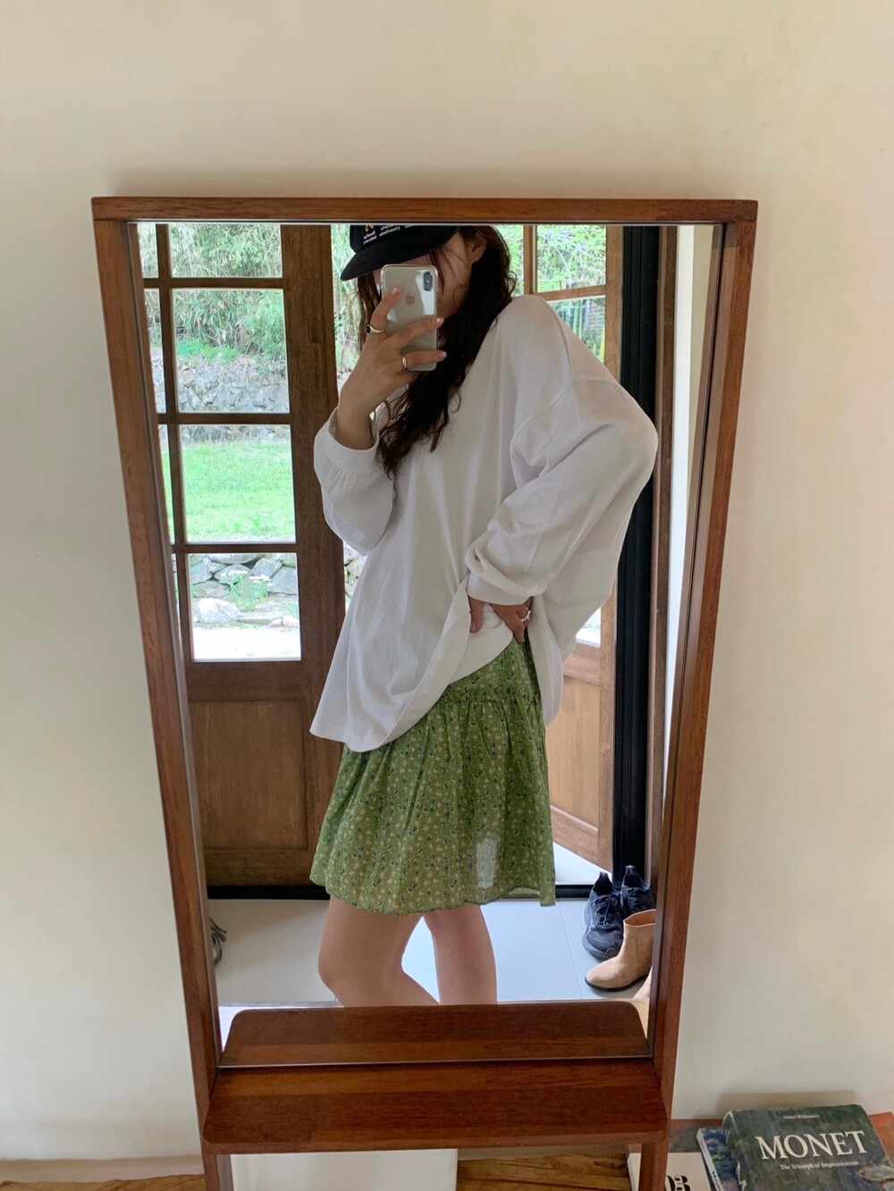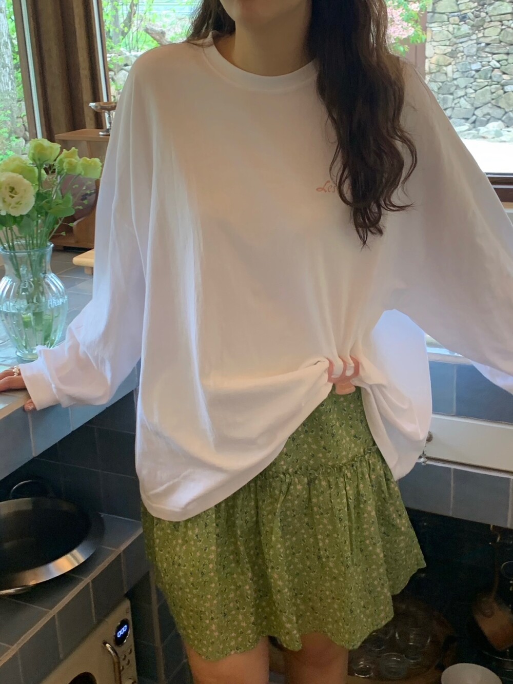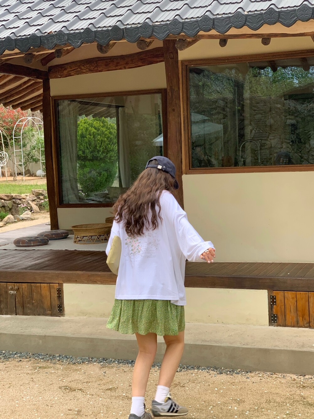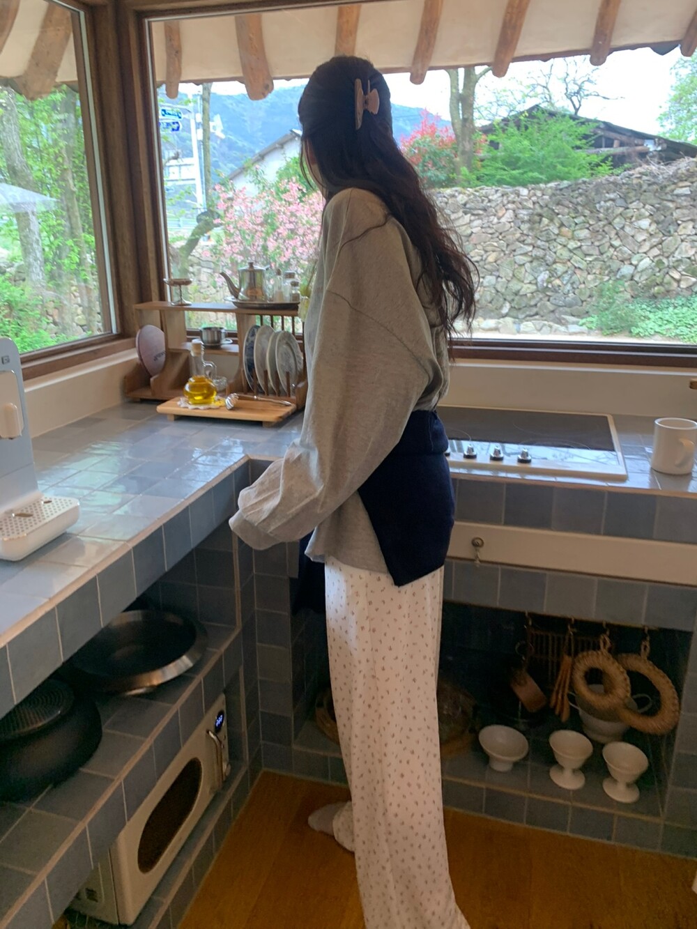 여유롭게 떨어지는 루즈핏 실루엣으로 체형 부담 없이 편안하게 착용되며, 자연스럽게 흐르는 핏이 여리여리한 분위기를 연출해줍니다.