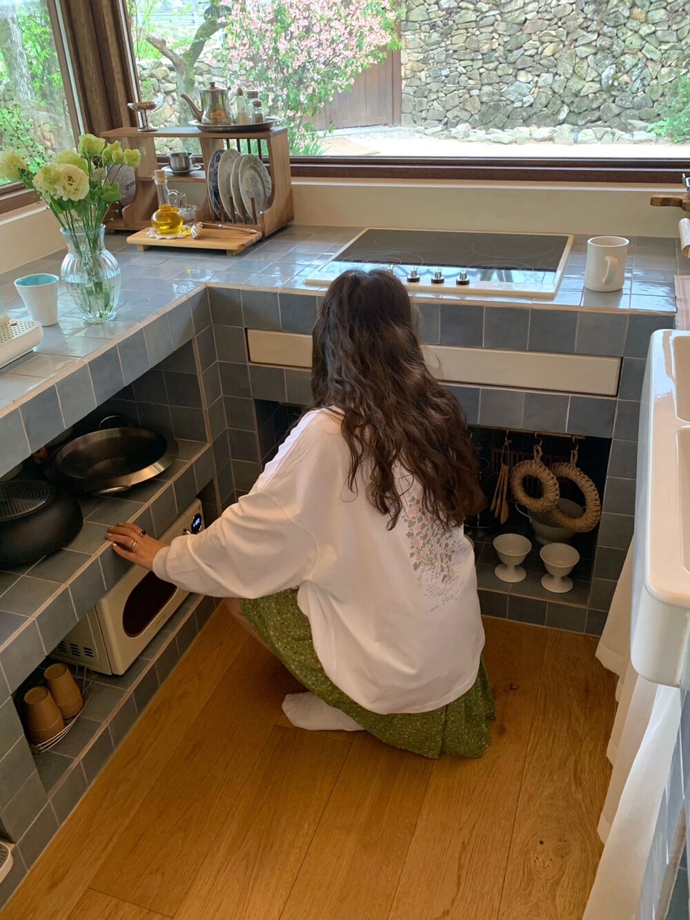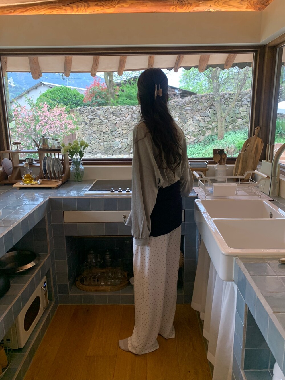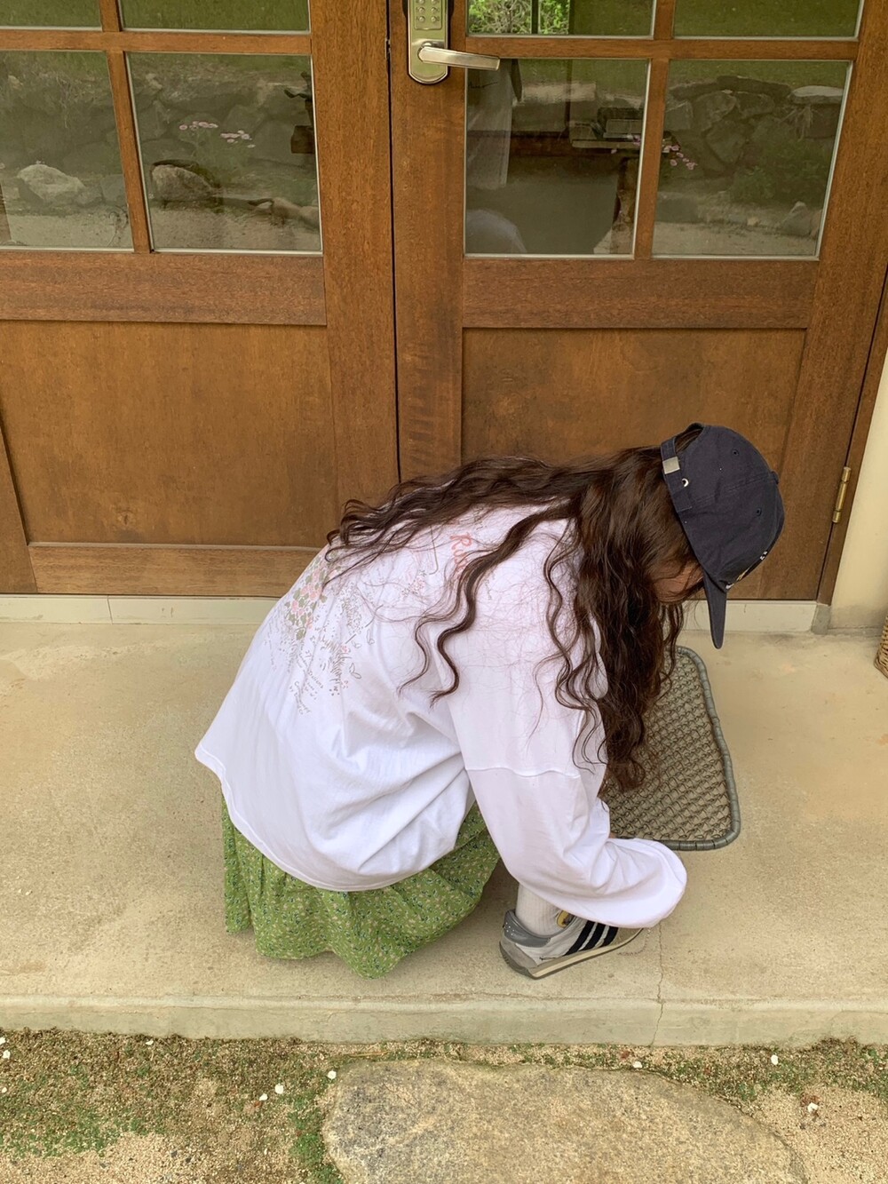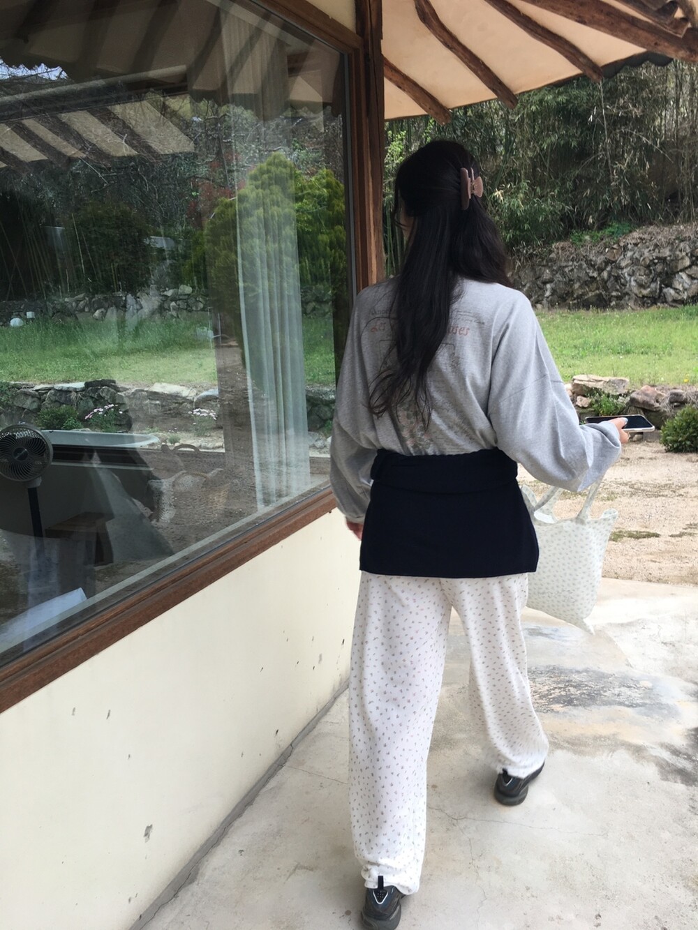 여유롭게 떨어지는 루즈핏 실루엣으로 체형 부담 없이 편안하게 착용되며, 자연스럽게 흐르는 핏이 여리여리한 분위기를 연출해줍니다.