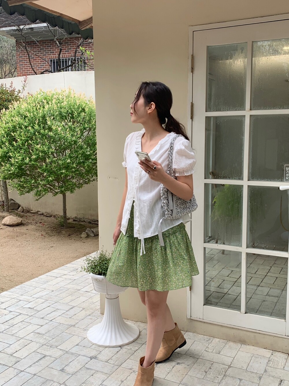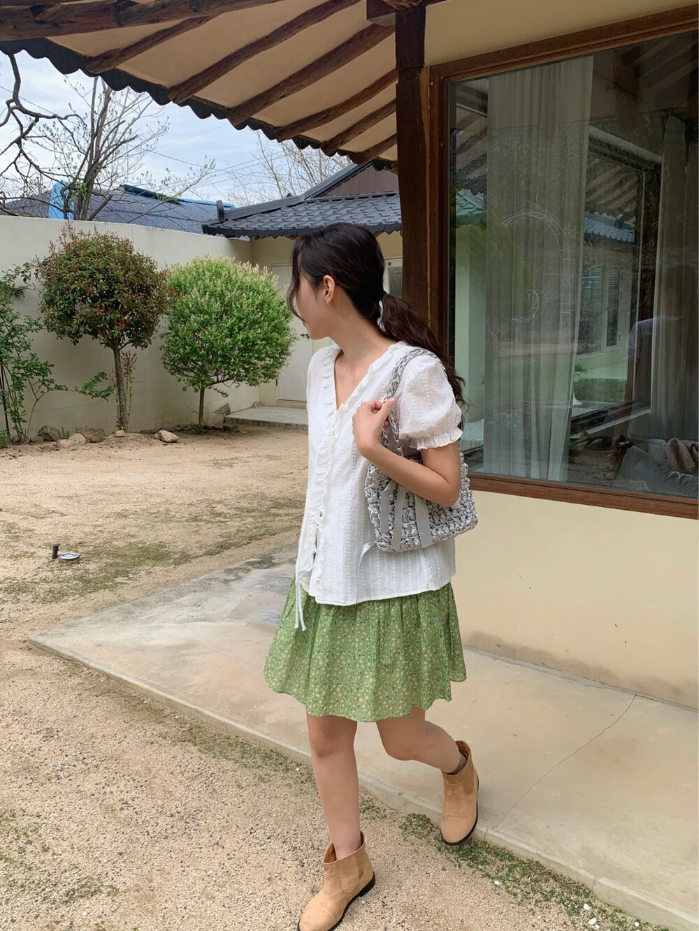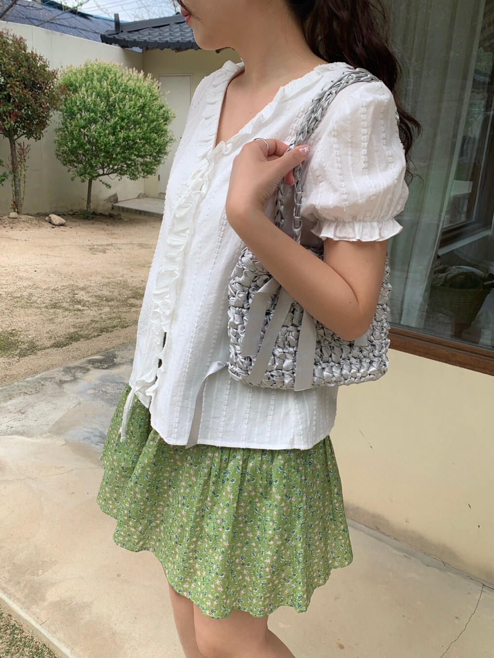 에이 라인으로 이어지는 플레어 핏이 걸을 때마다 가볍게 퍼져 러블리한 무드를 완성해주어요.