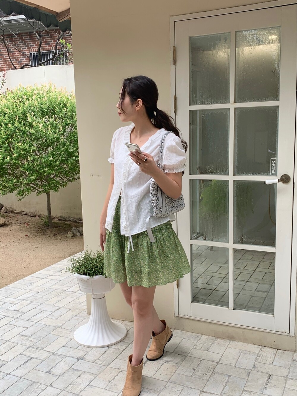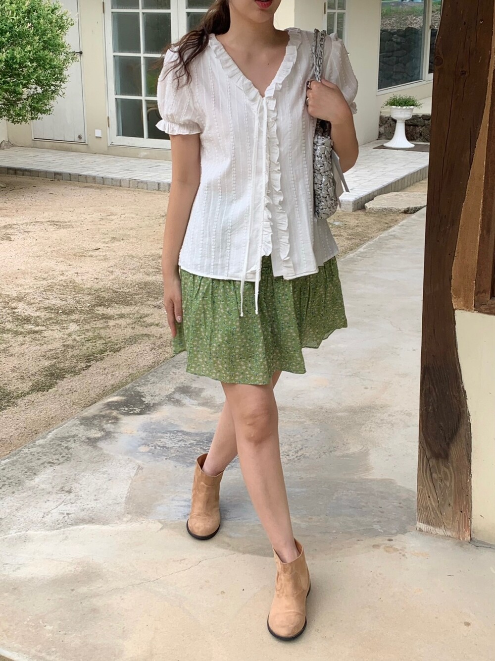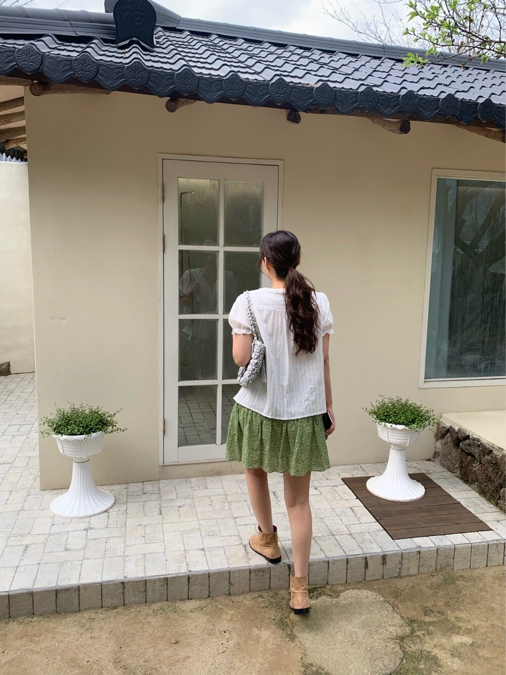 에이 라인으로 이어지는 플레어 핏이 걸을 때마다 가볍게 퍼져 러블리한 무드를 완성해주어요.