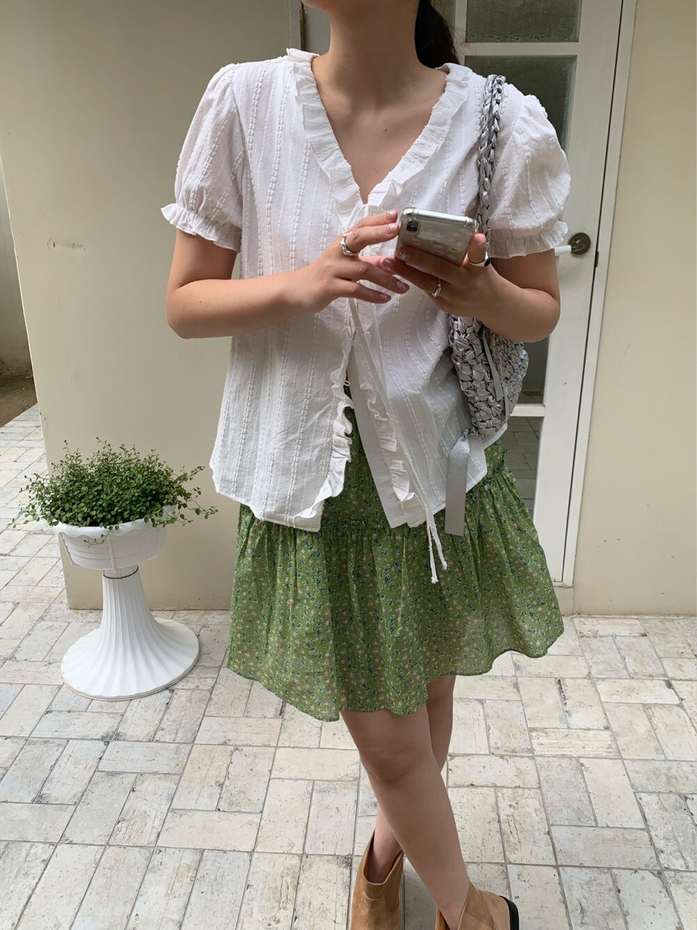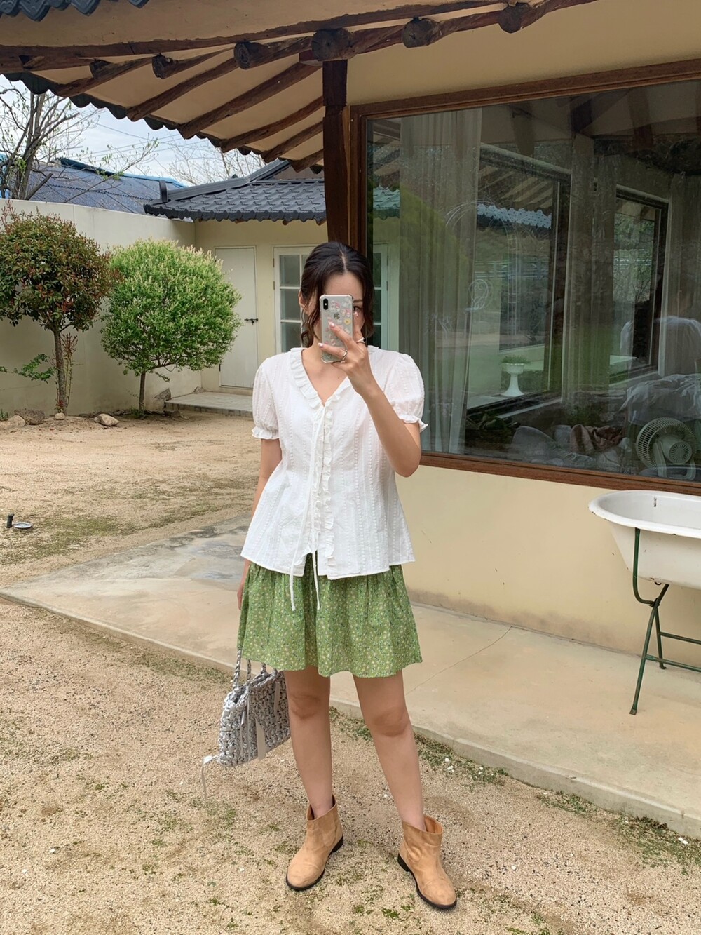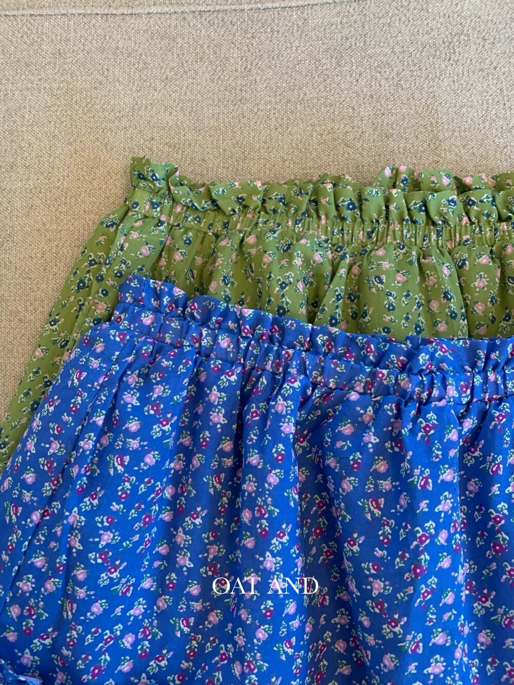 잔잔하게 들어간 플라워 프린팅과 산뜻한 컬러감이 어우러져 입는 순간 화사한 분위기를 더해주는 아이템이에요. 허리 전체 밴딩 디자인으로 편안하게 착용되며, 자연스럽게 잡히는 셔링 디테일이 풍성한 실루엣을 연출해줍니다.