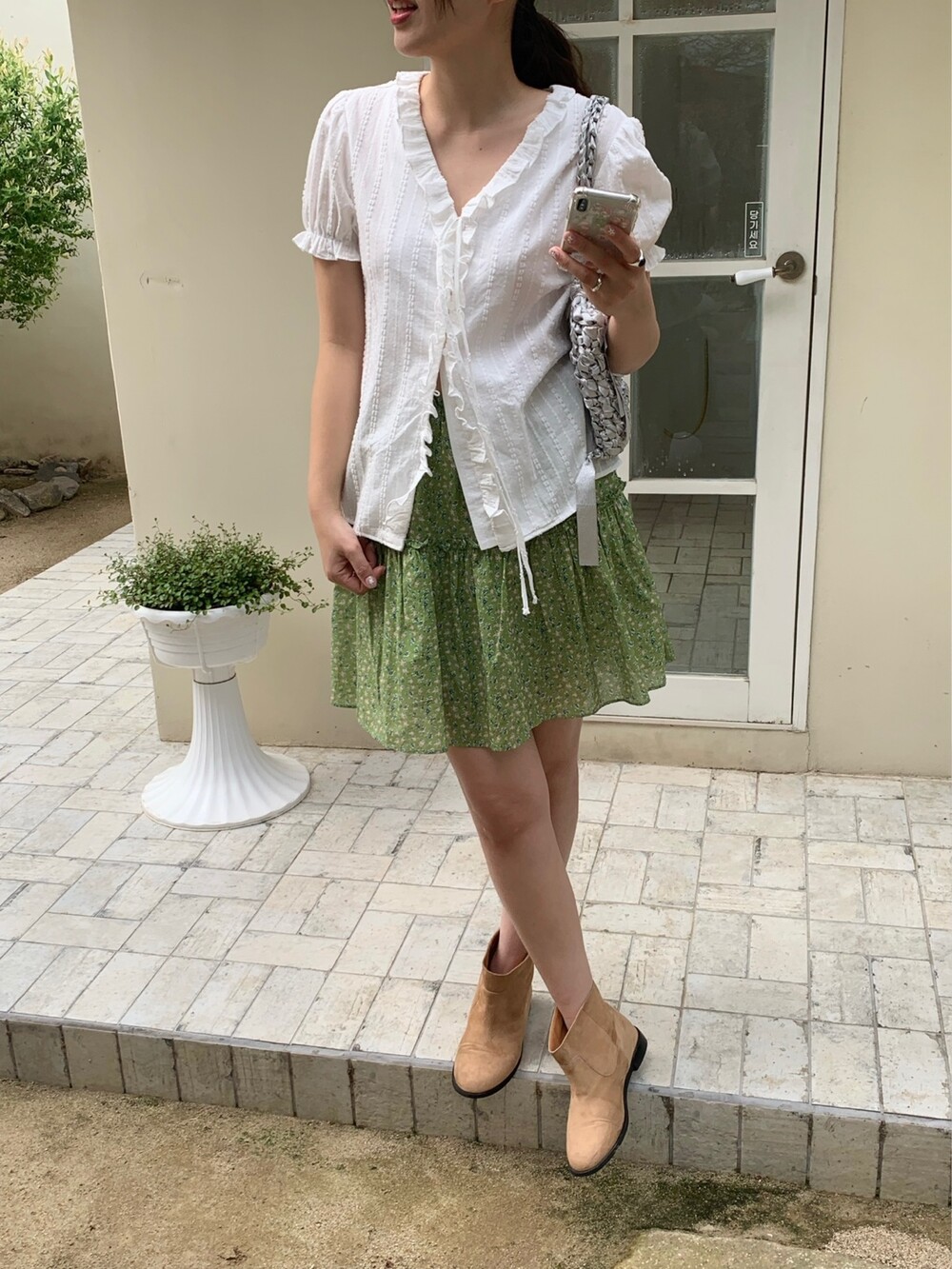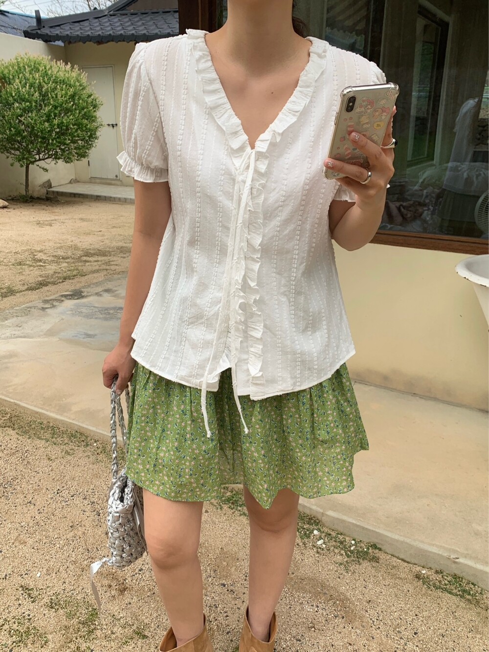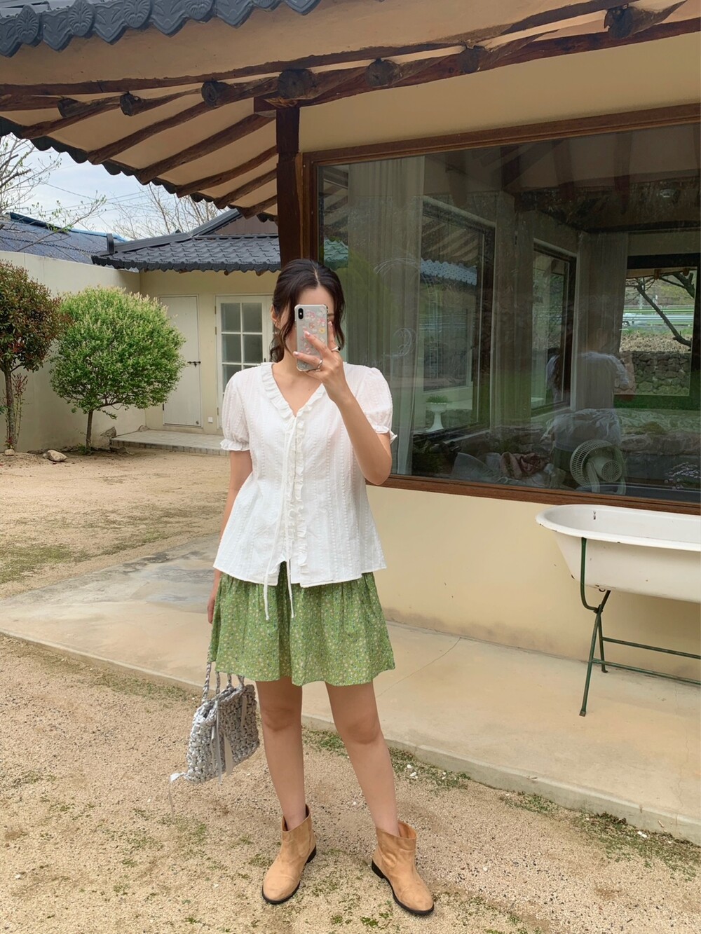 잔잔하게 들어간 플라워 프린팅과 산뜻한 컬러감이 어우러져 입는 순간 화사한 분위기를 더해주는 아이템이에요. 허리 전체 밴딩 디자인으로 편안하게 착용되며, 자연스럽게 잡히는 셔링 디테일이 풍성한 실루엣을 연출해줍니다.