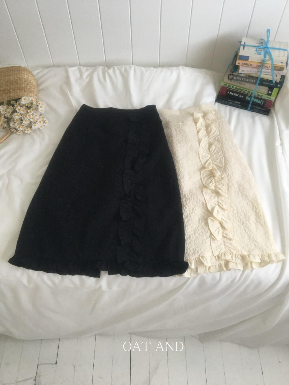 프릴 미디 스커트 (2color)