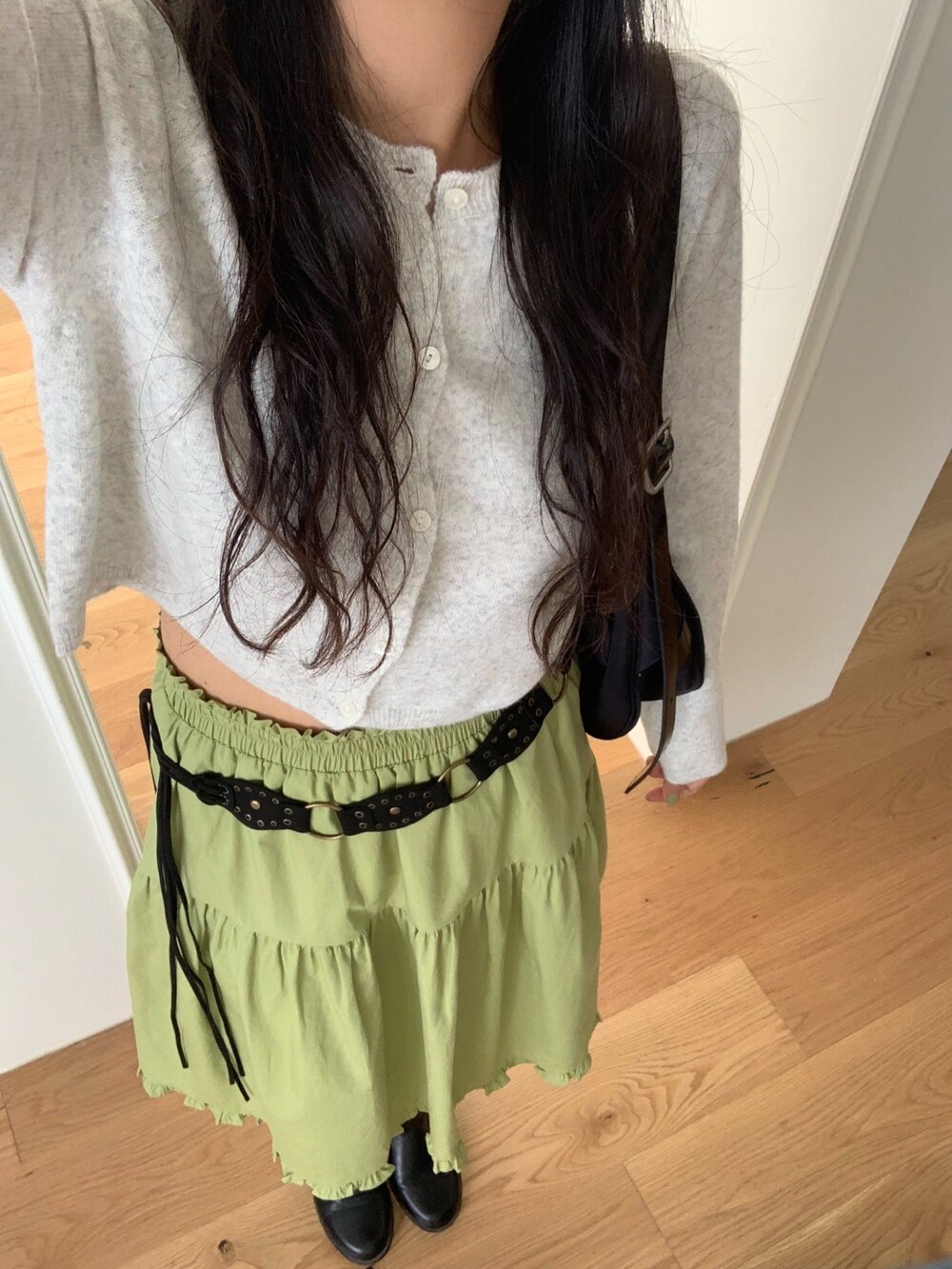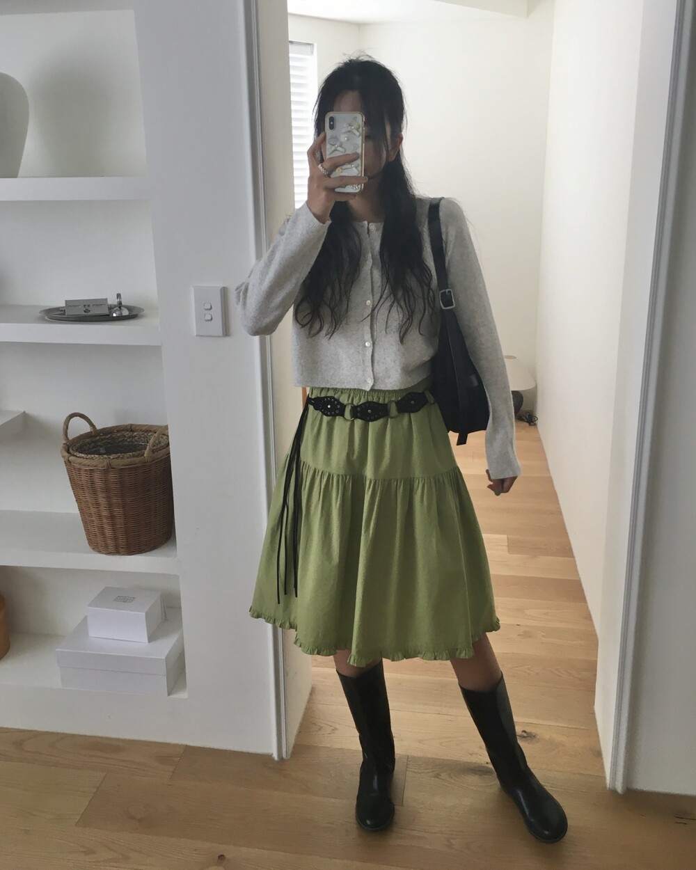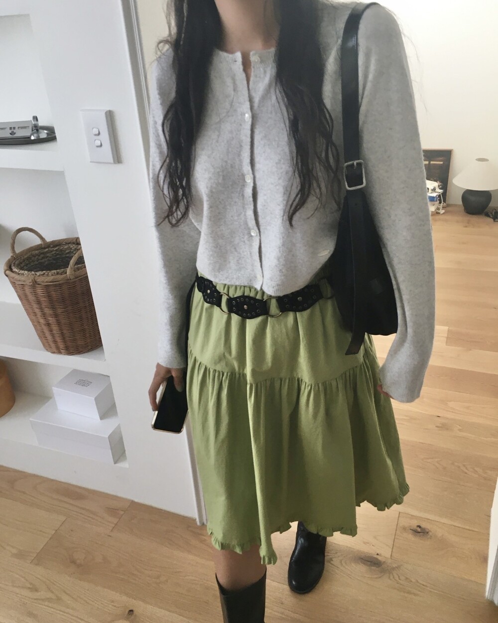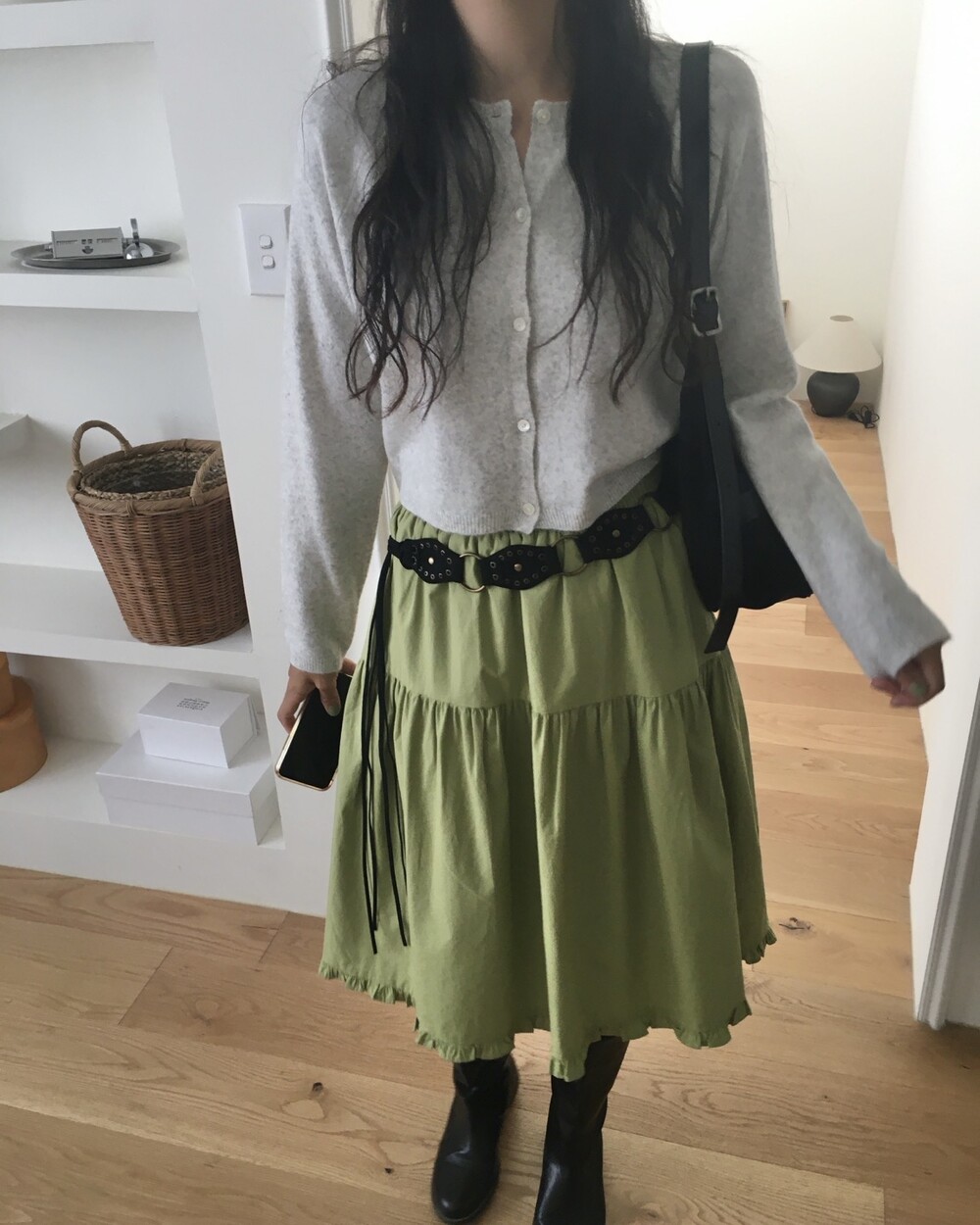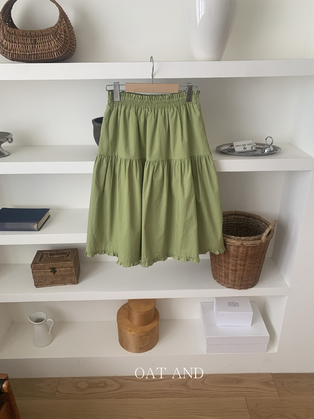 올리브 미디 스커트