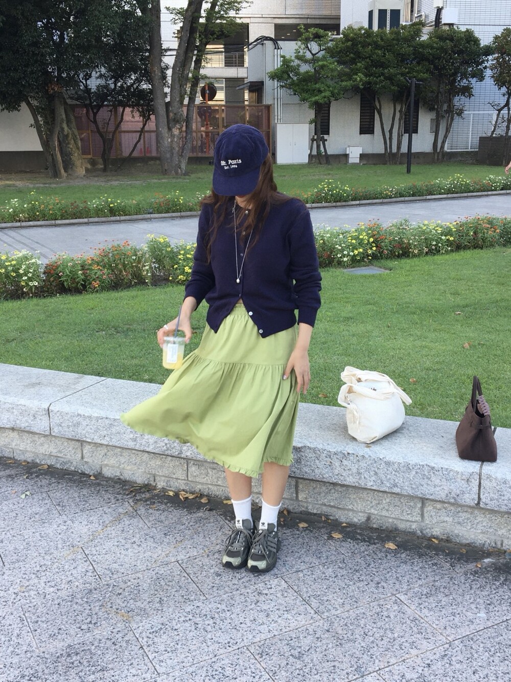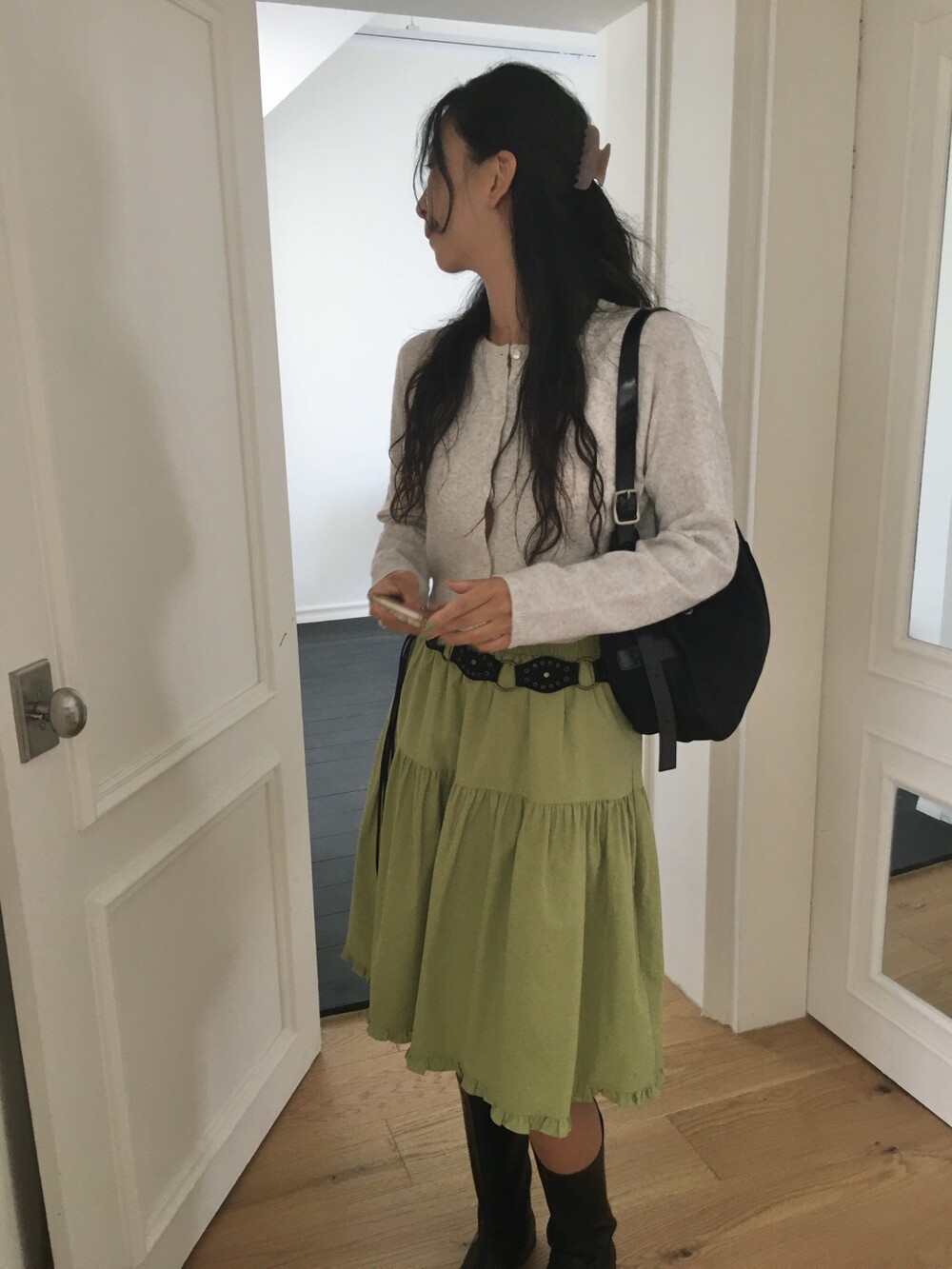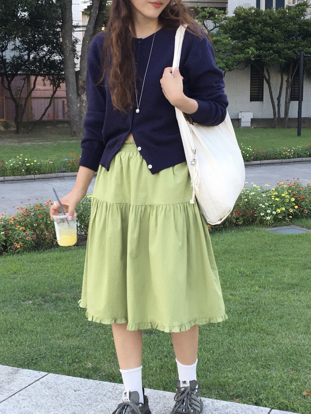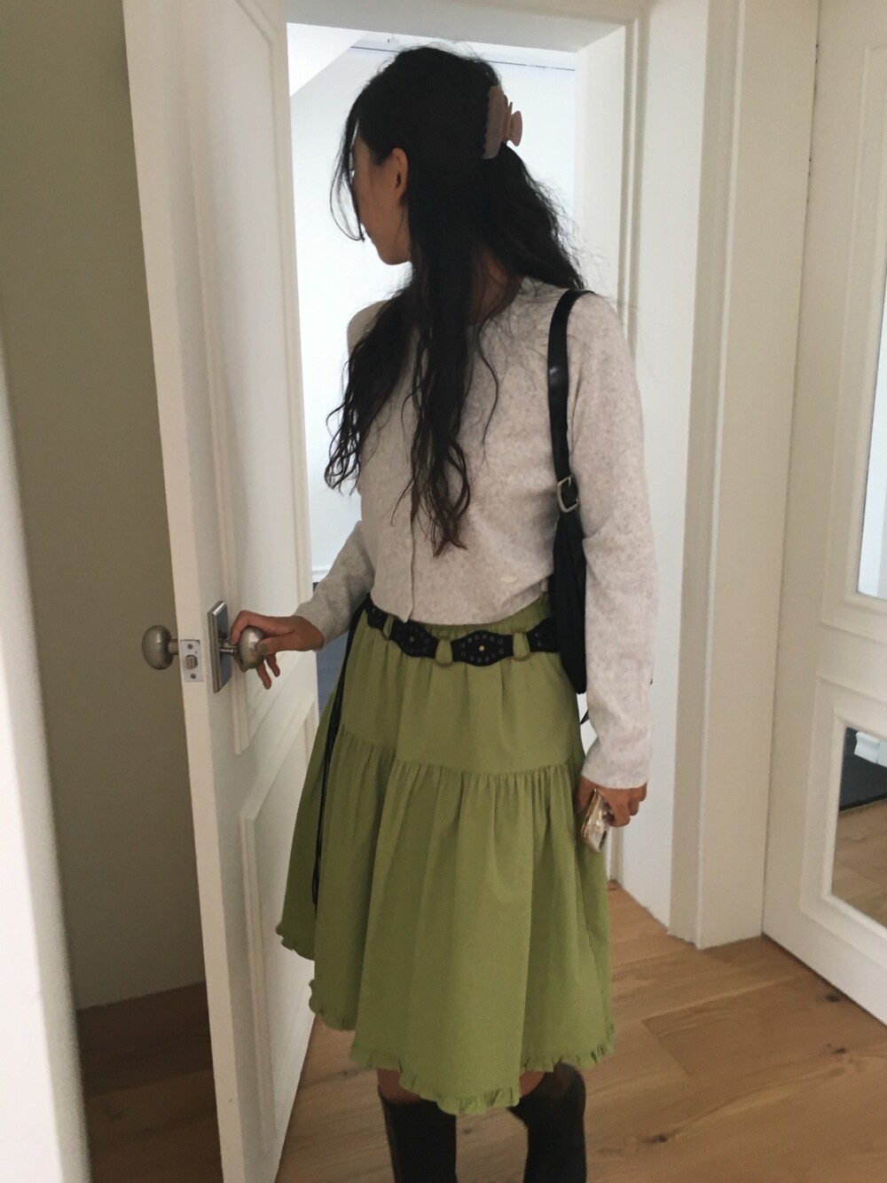 올리브 미디 스커트