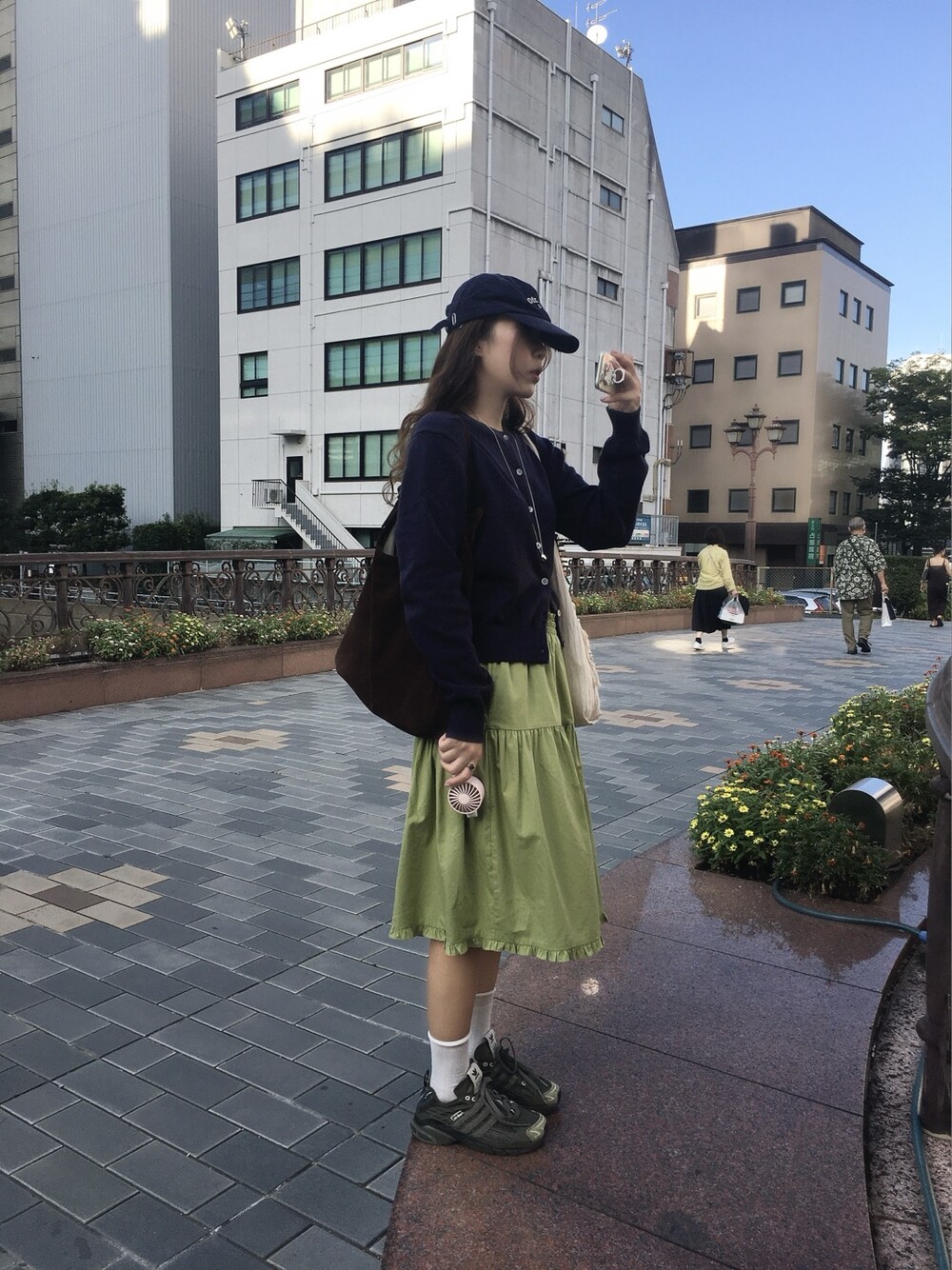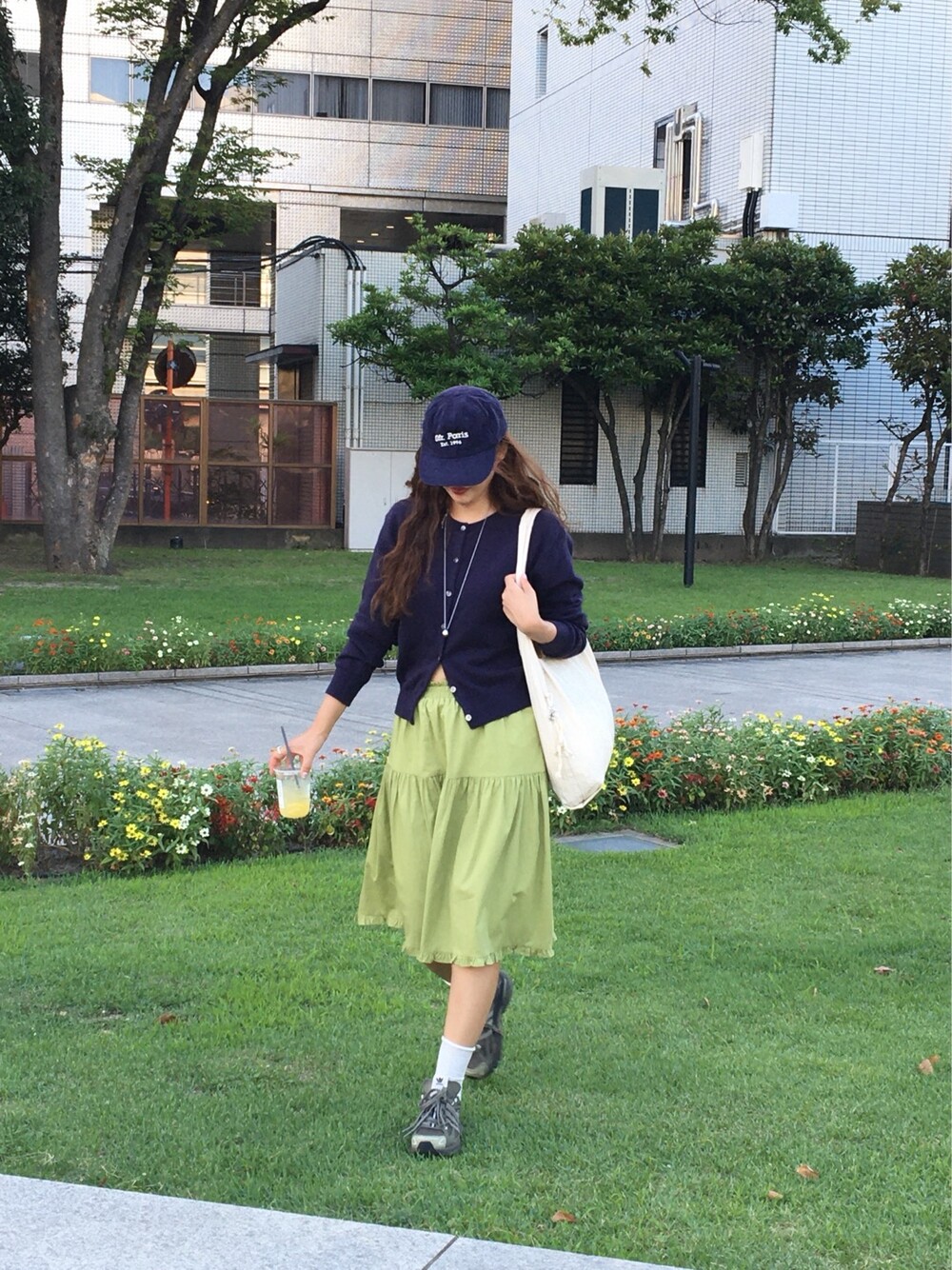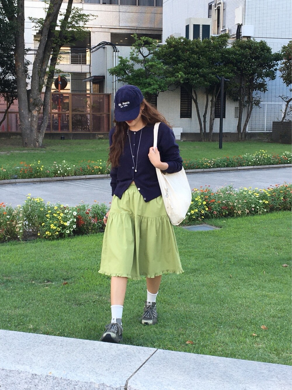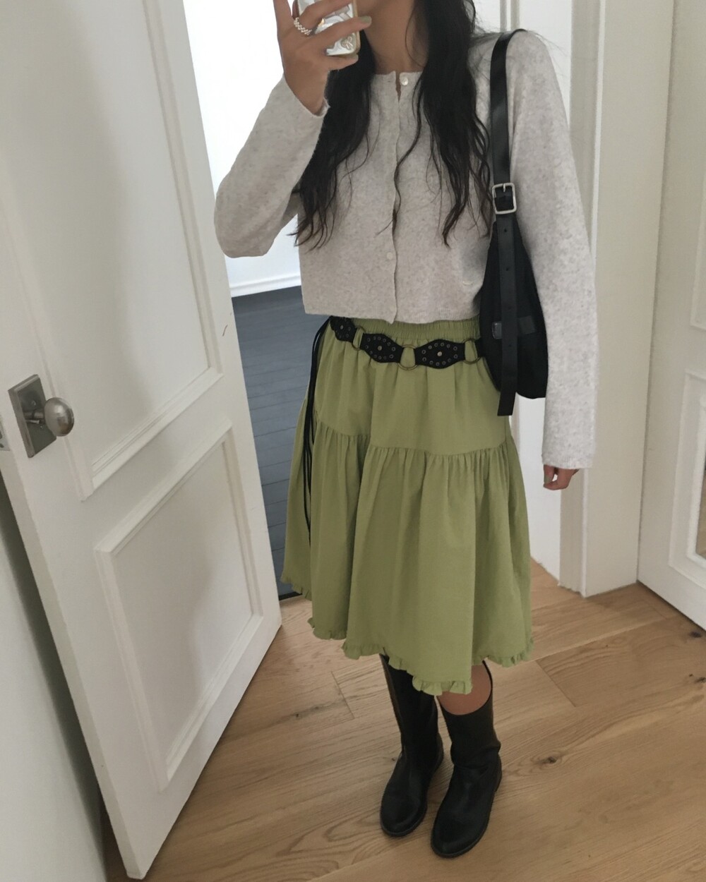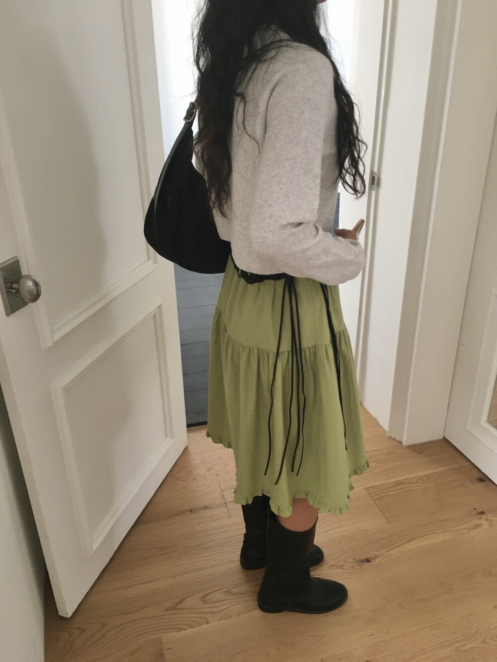 올리브 미디 스커트