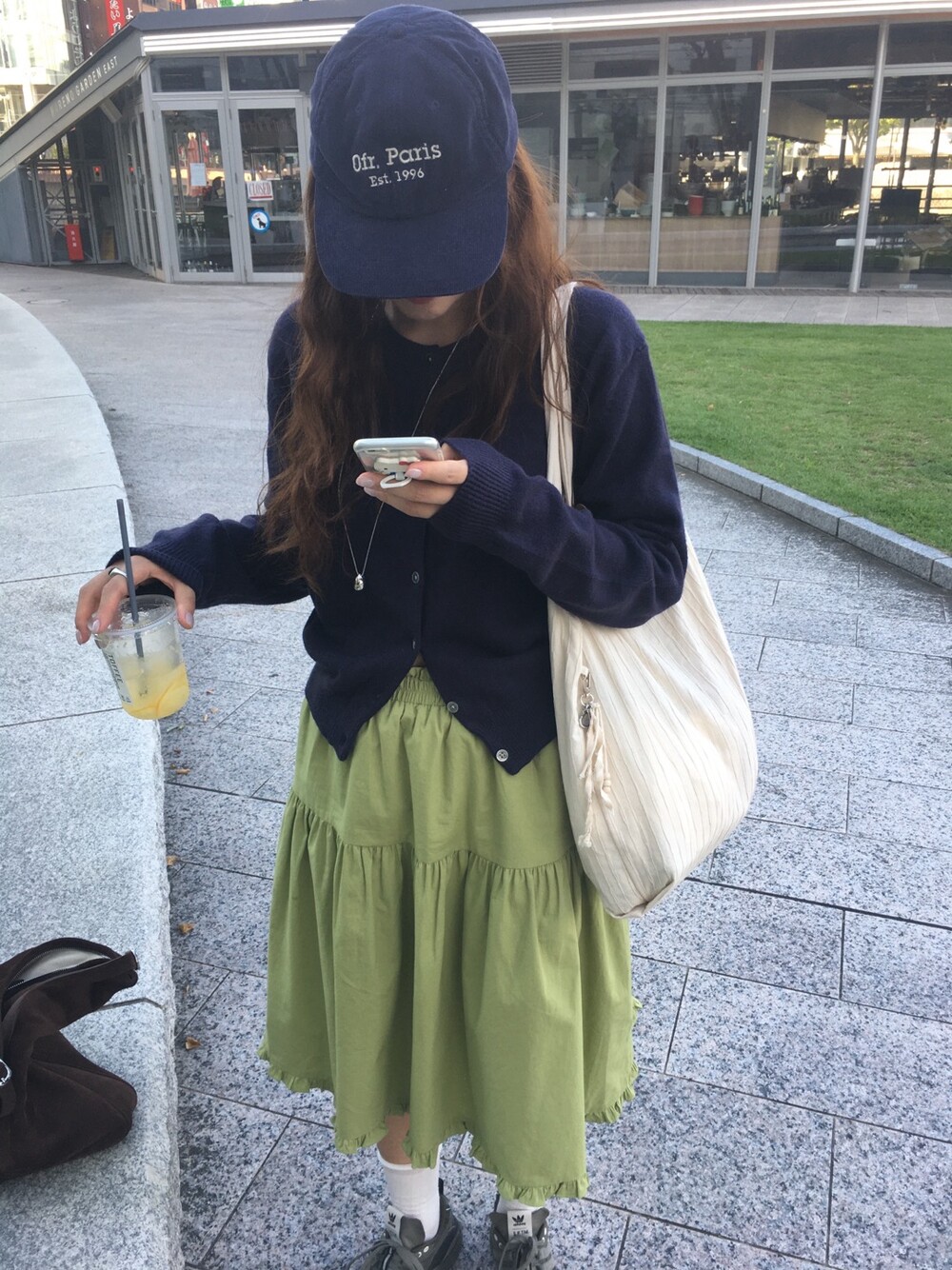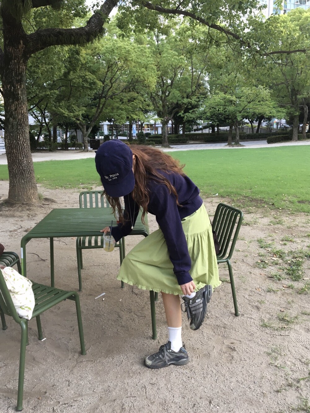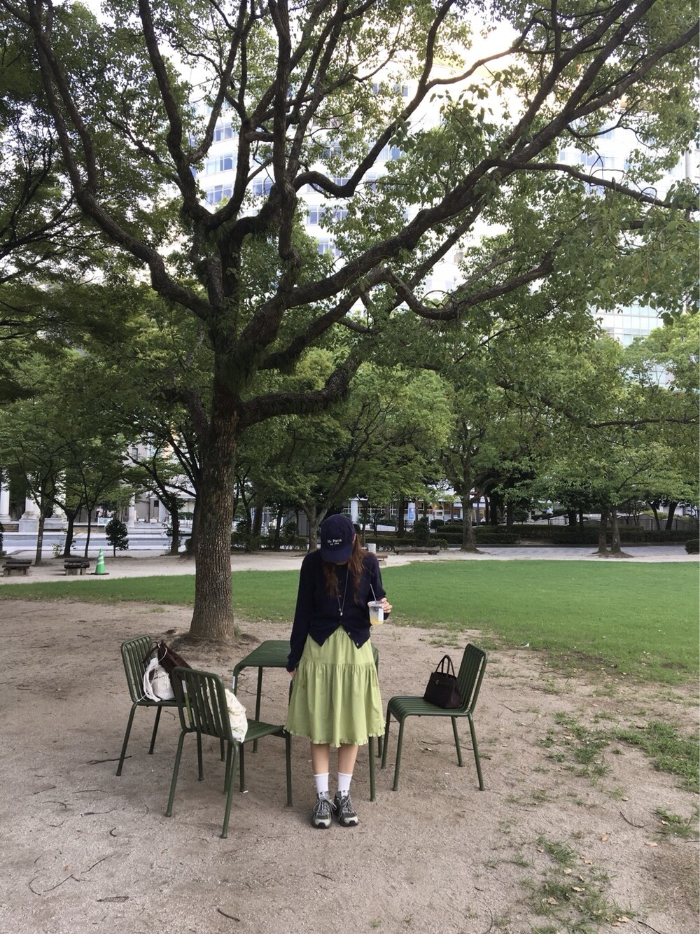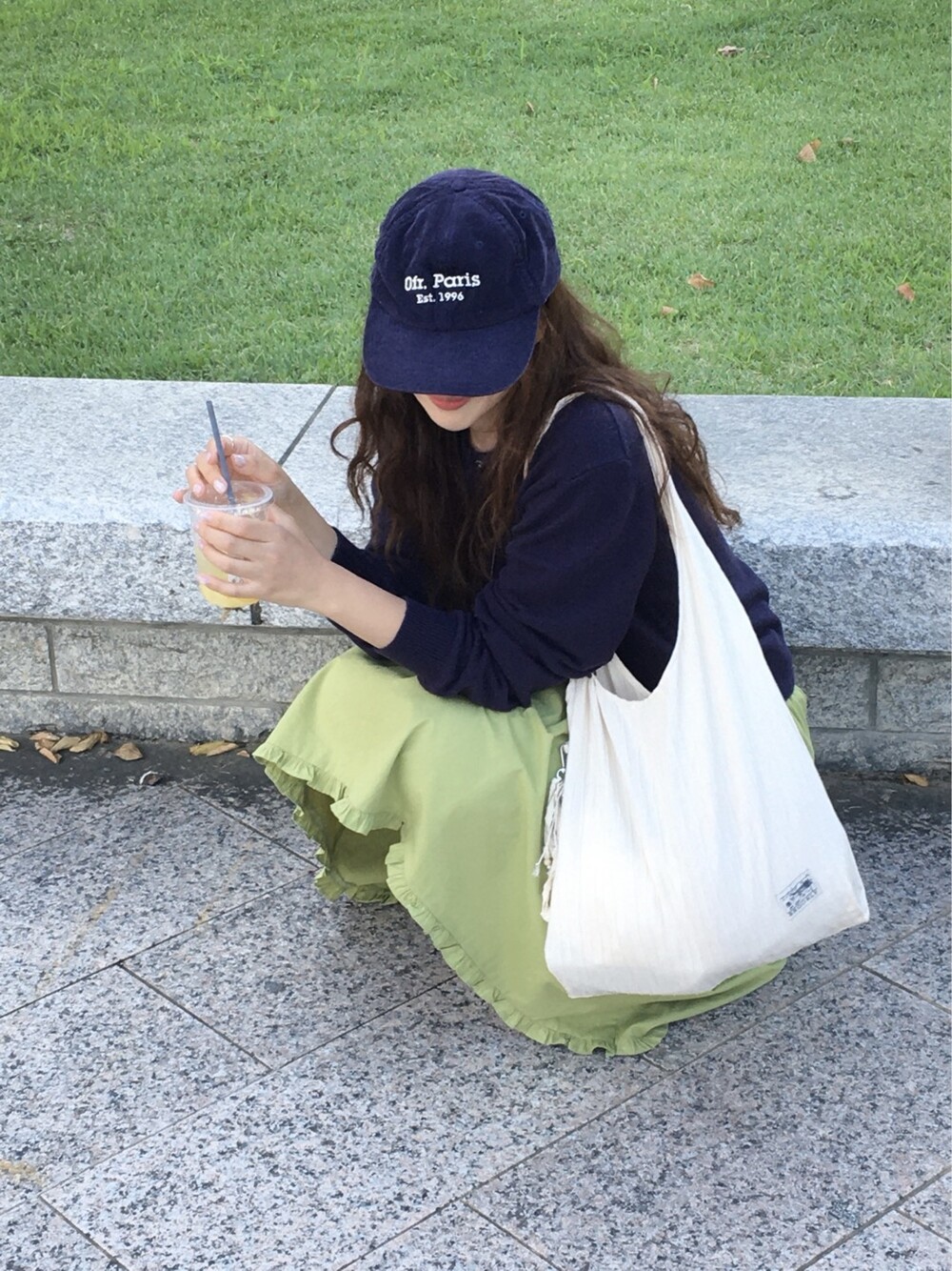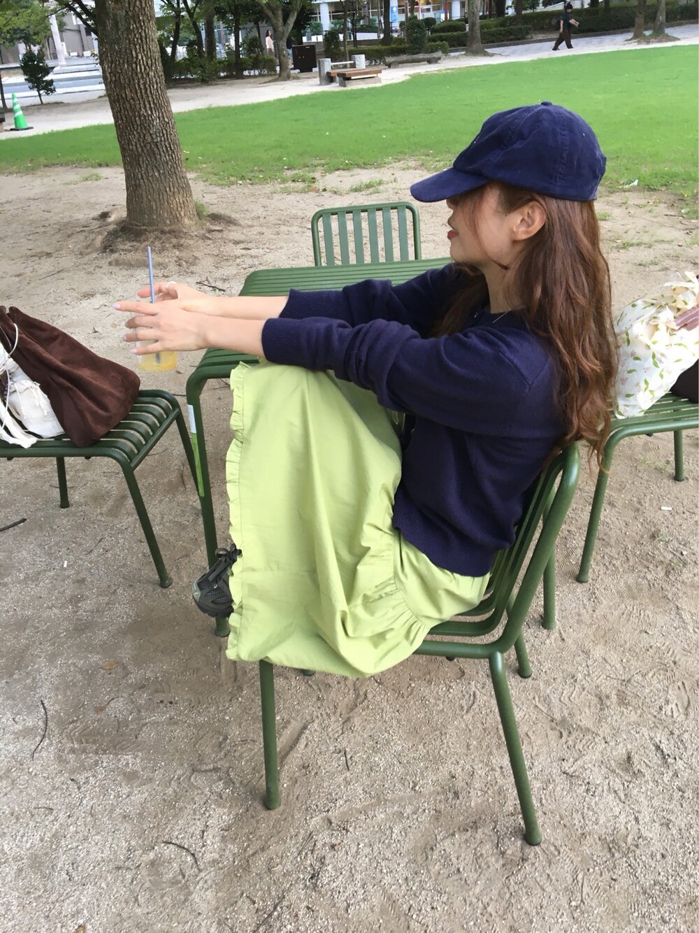 올리브 미디 스커트