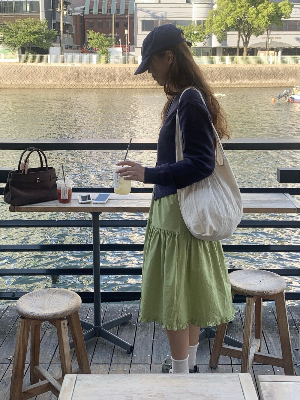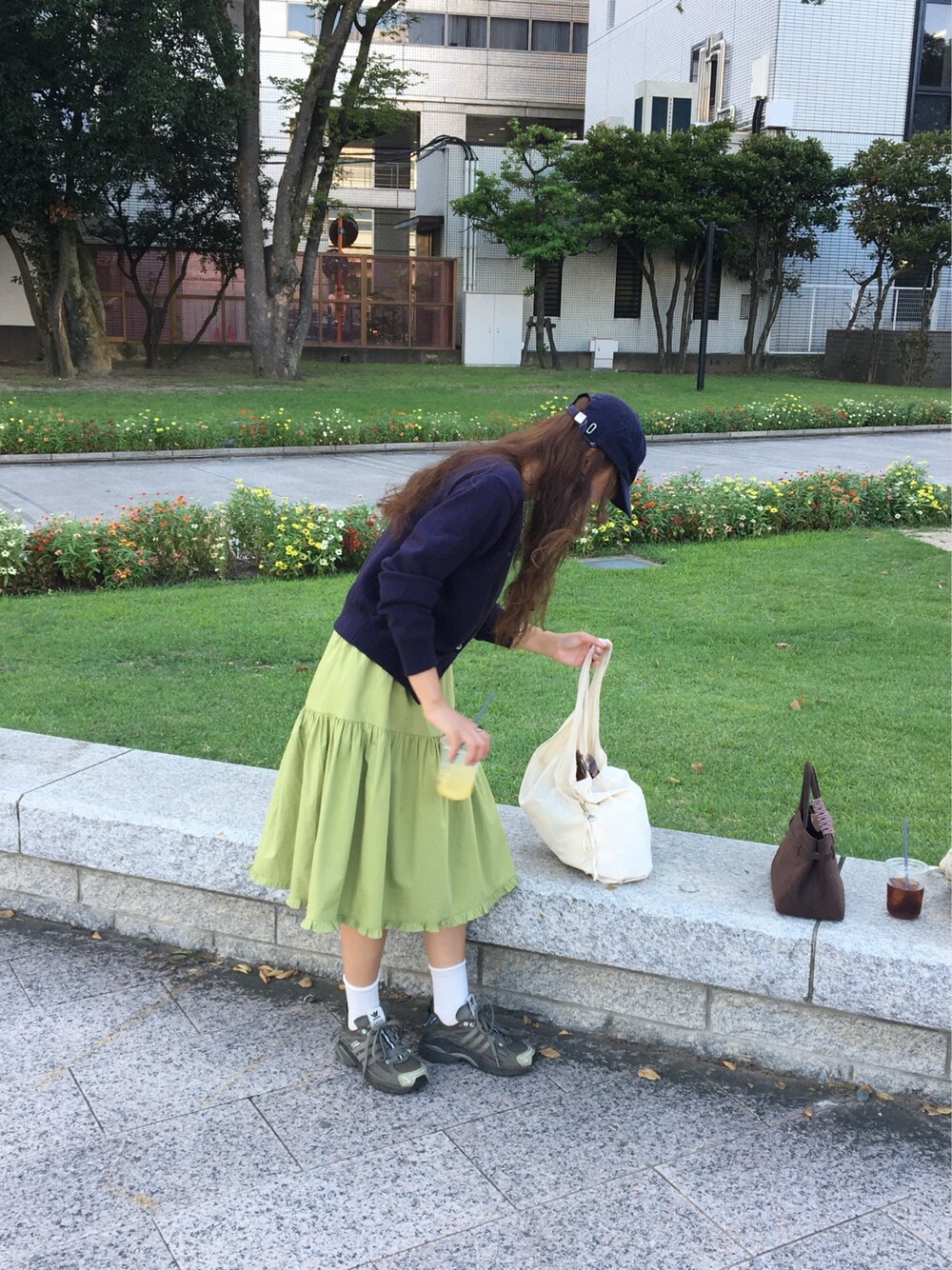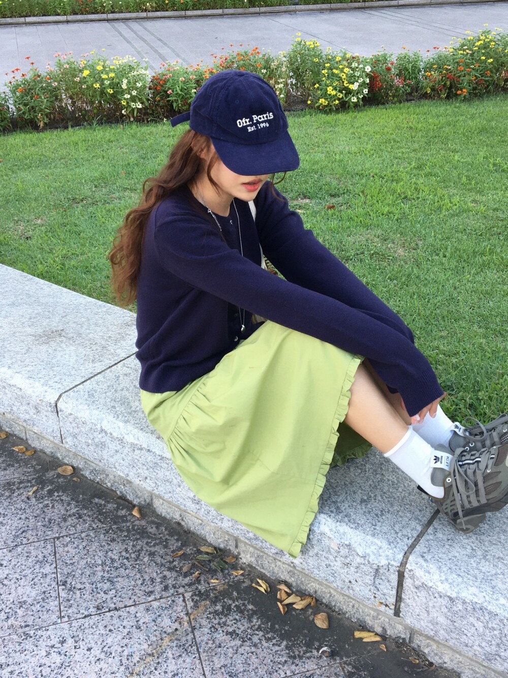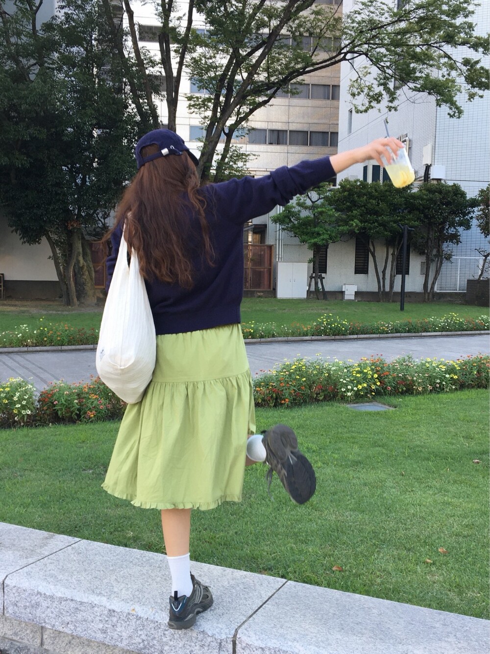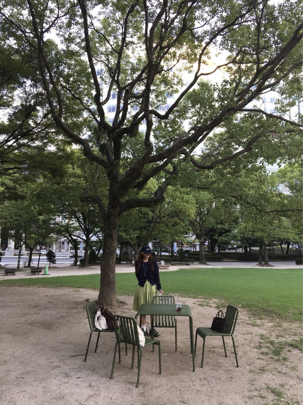 올리브 미디 스커트