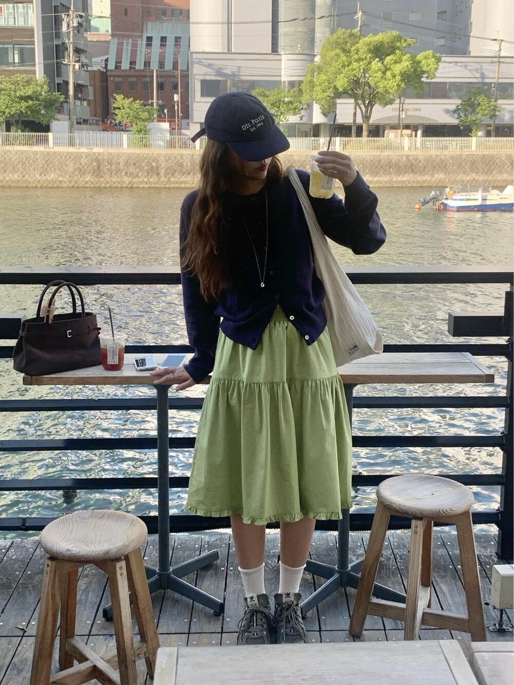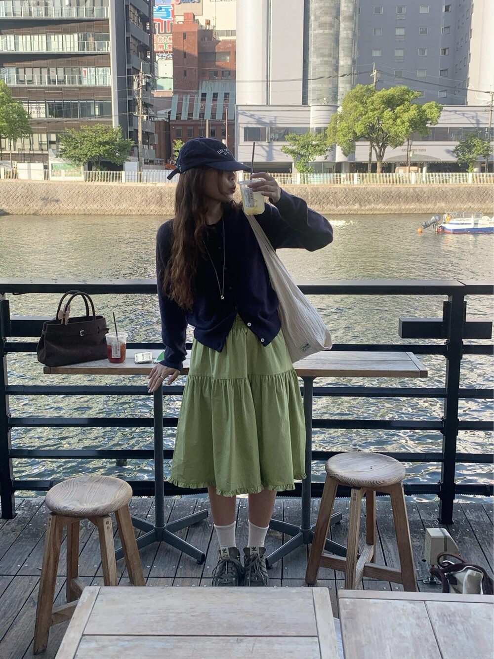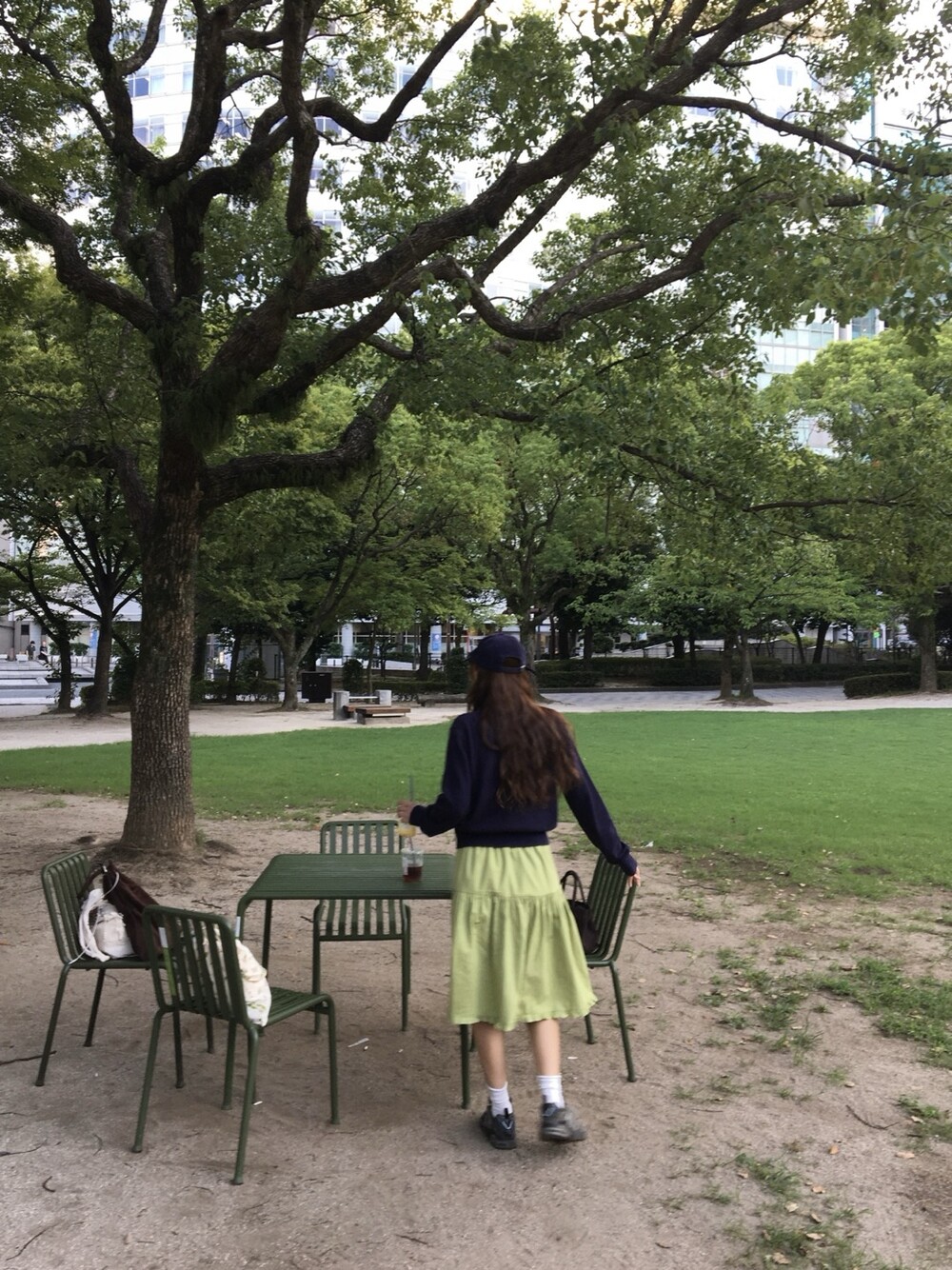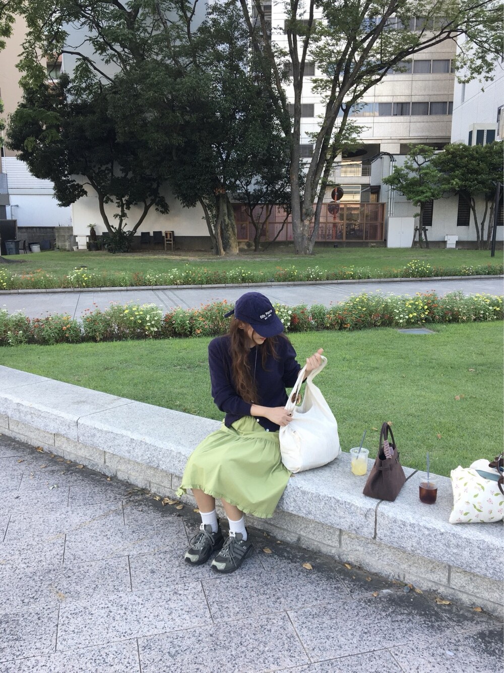 올리브 미디 스커트