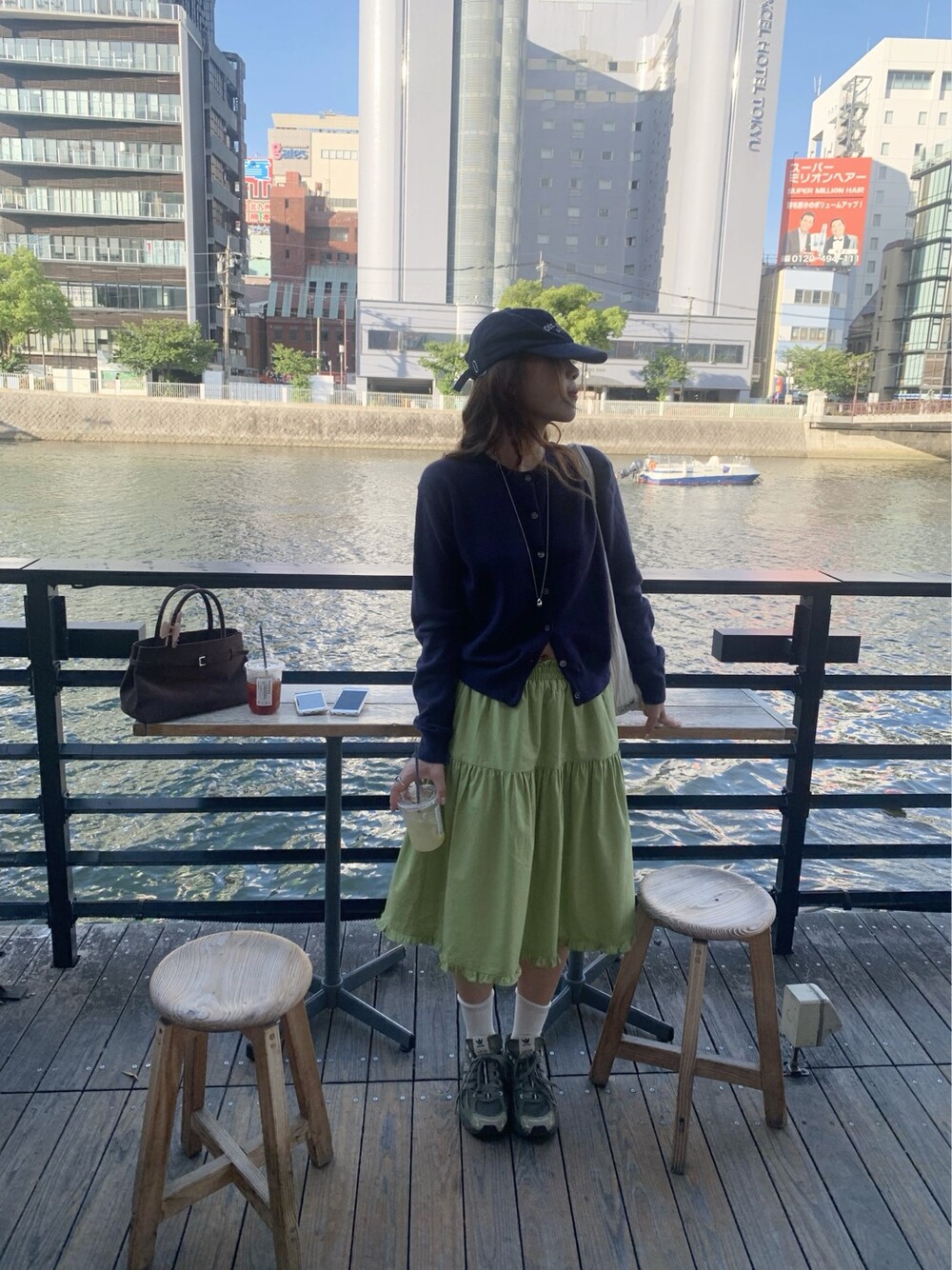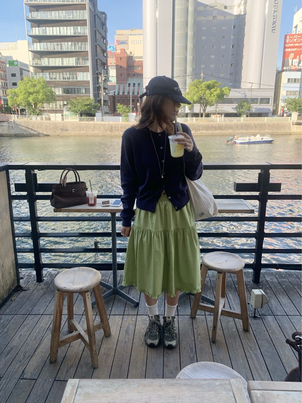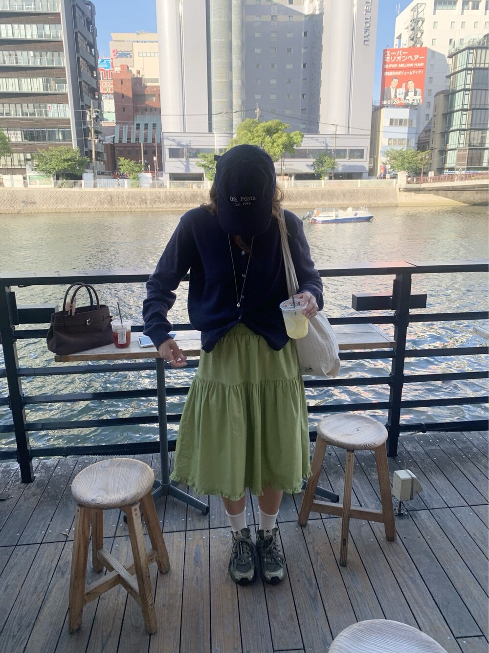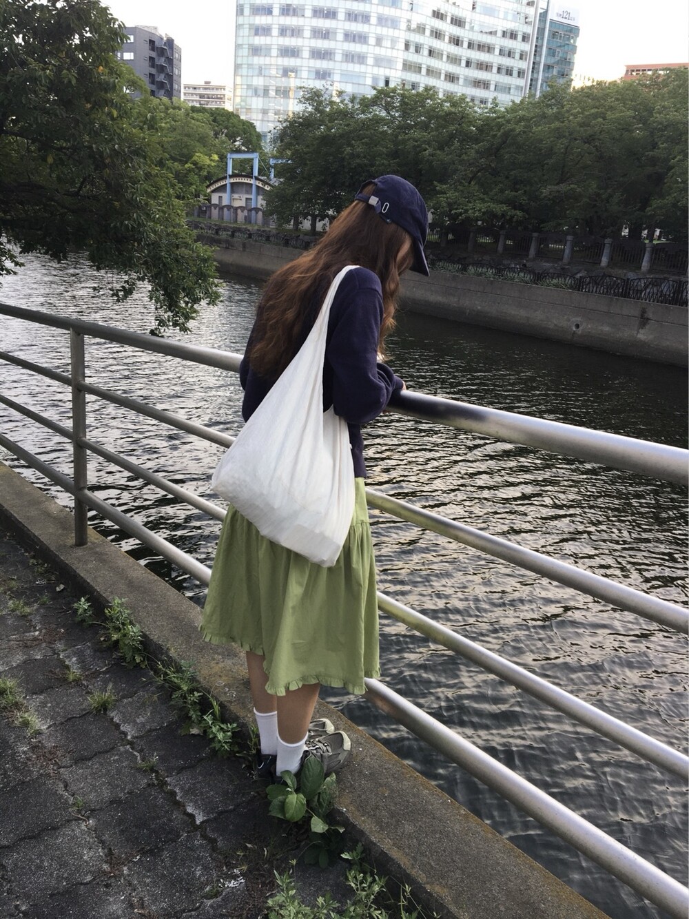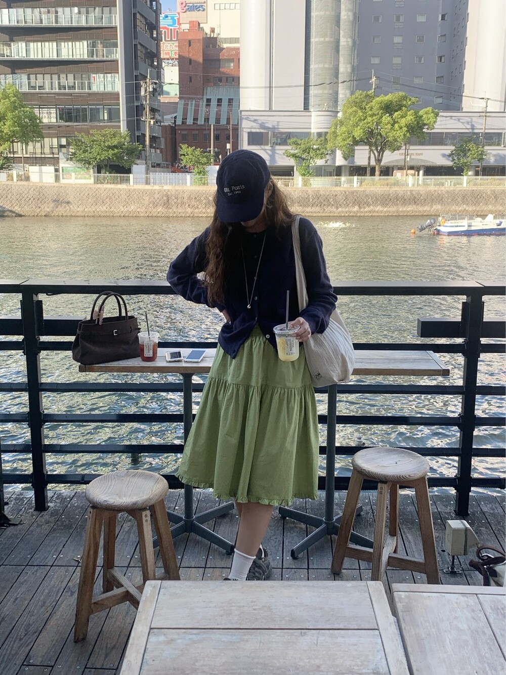 올리브 미디 스커트