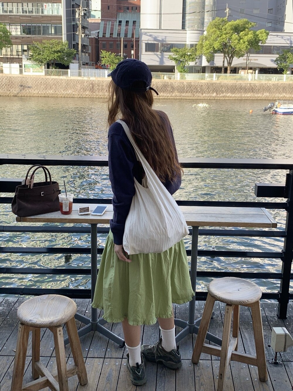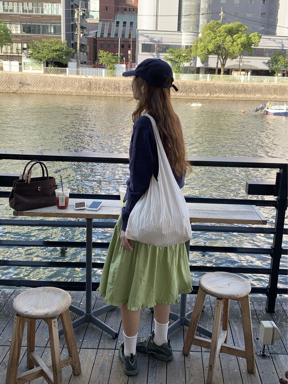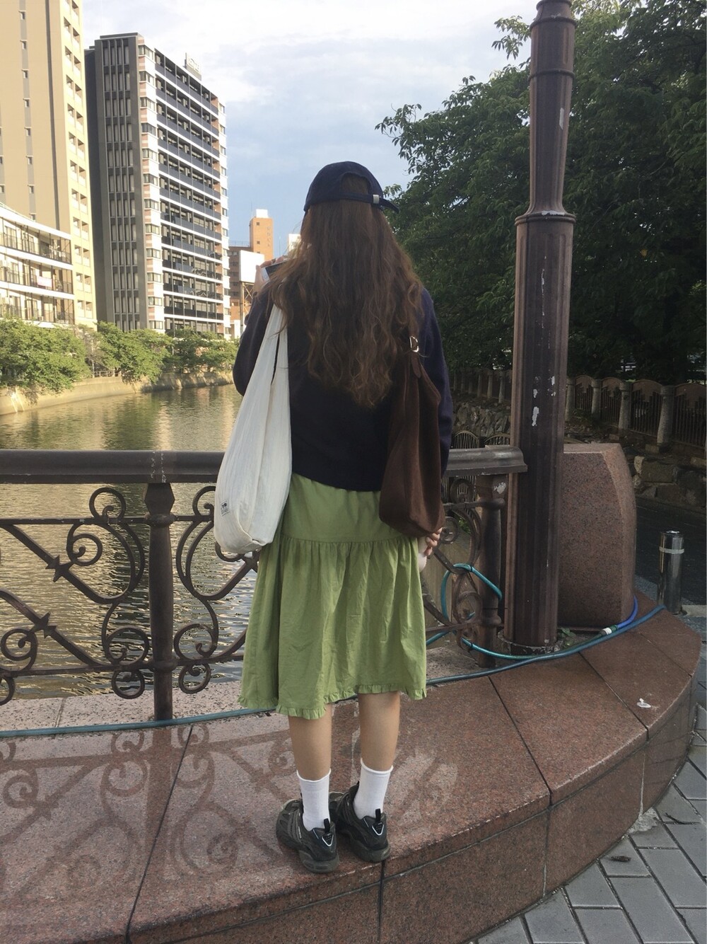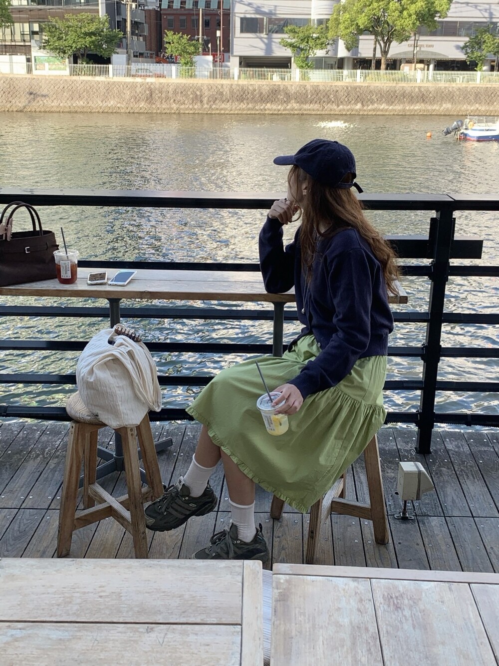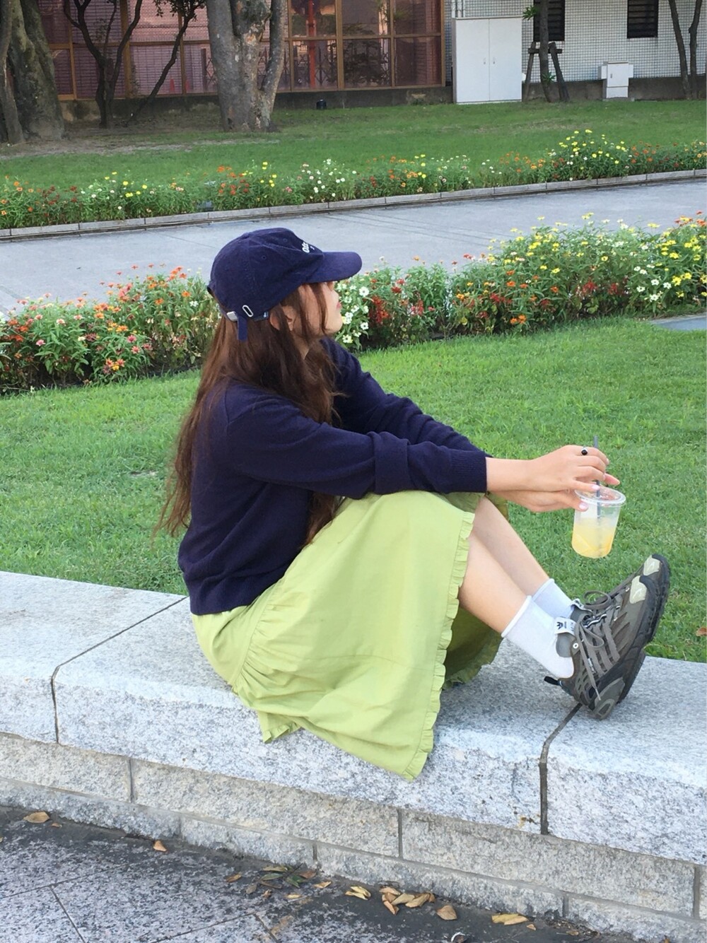 올리브 미디 스커트