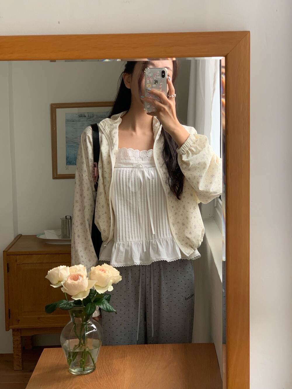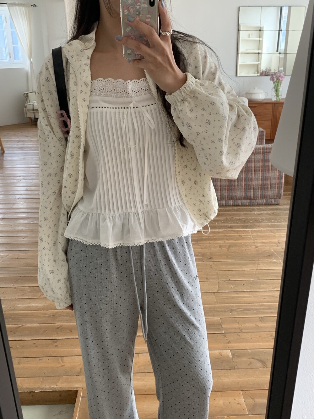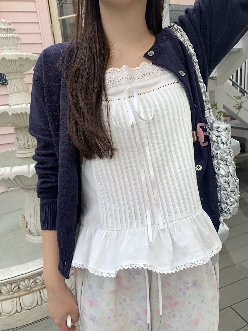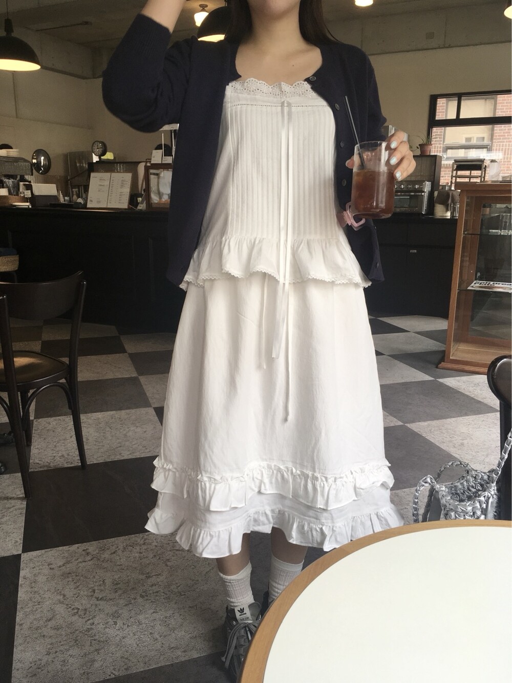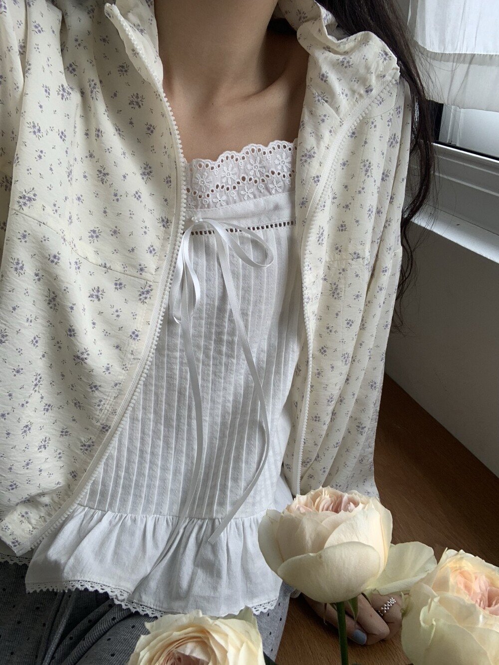 네크라인에 빈티지한 무드의 레이스 디테일이 더해지고, 그 밑으로 사다리 레이스를 더해 사랑스러움이 20000%