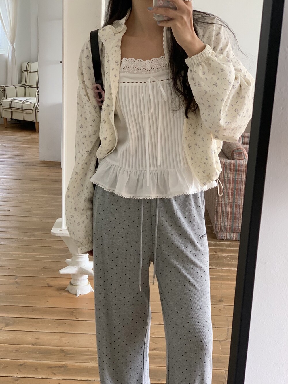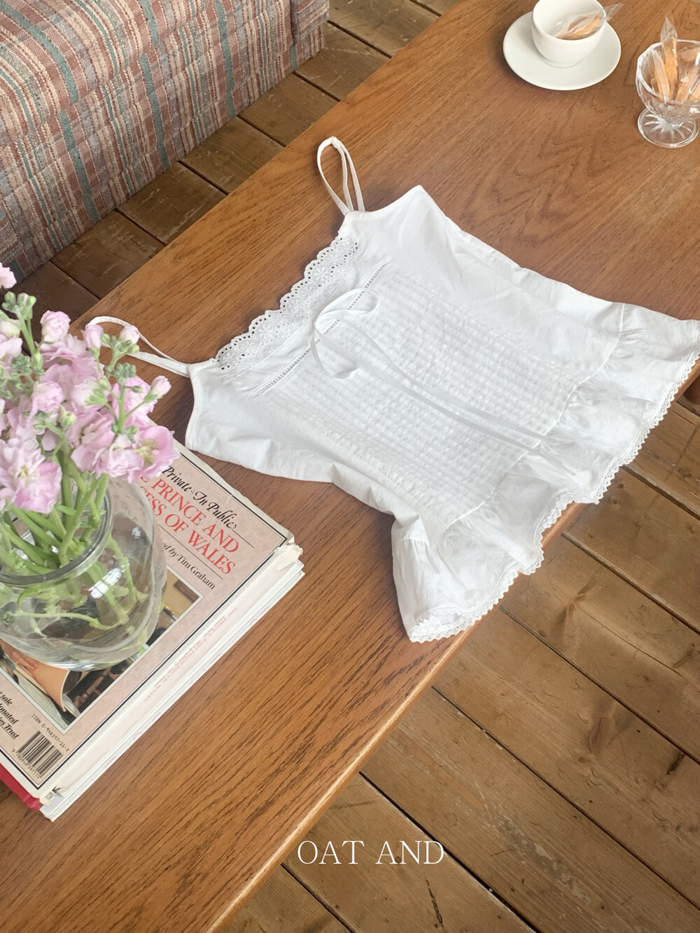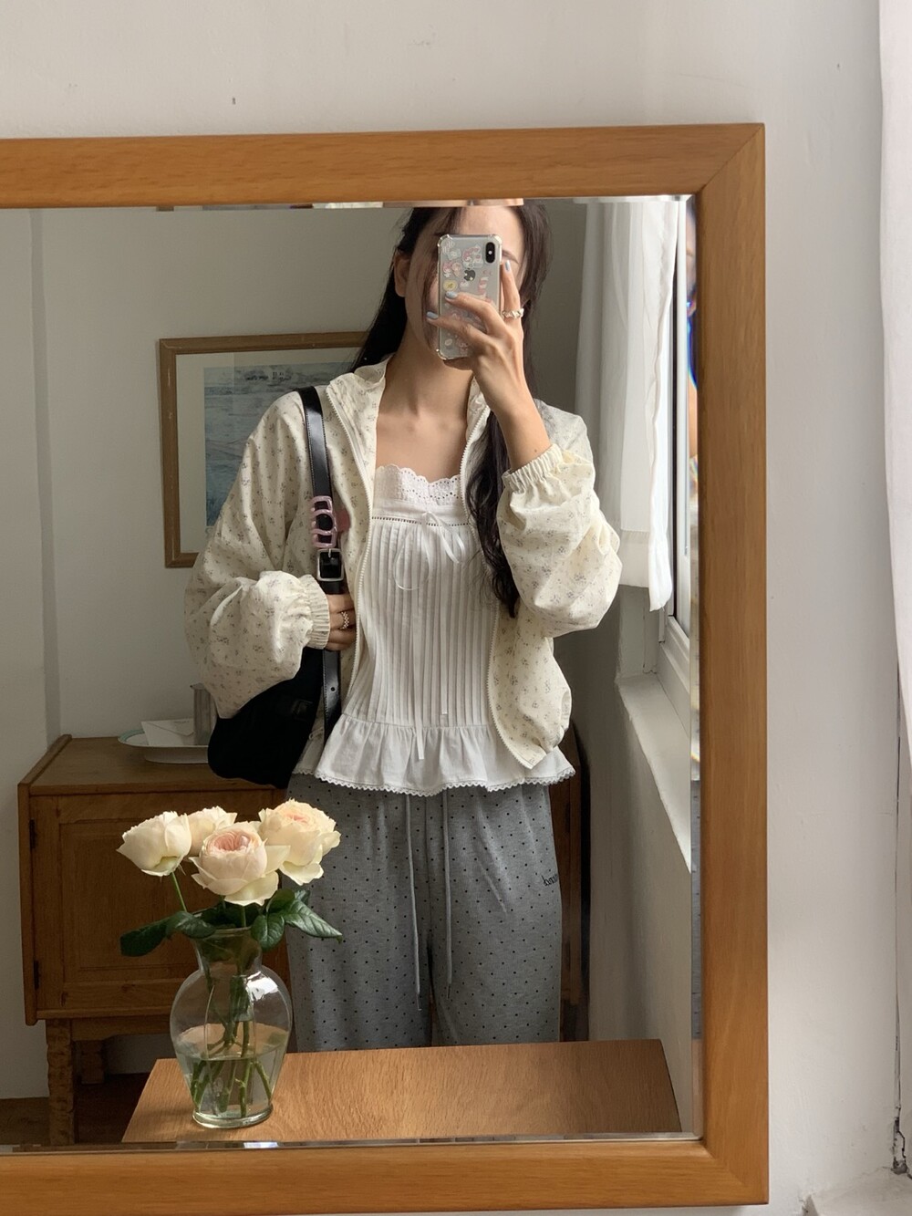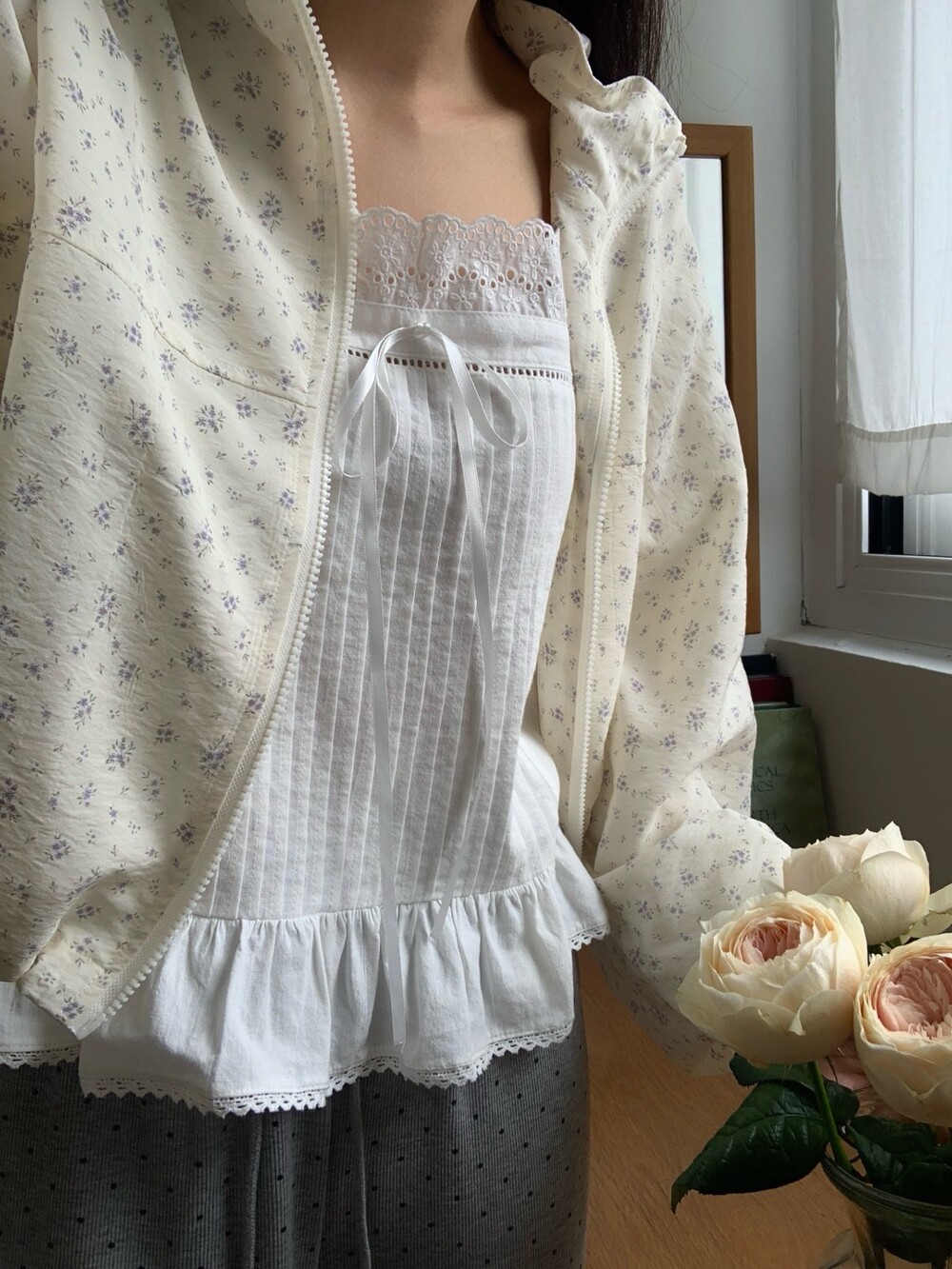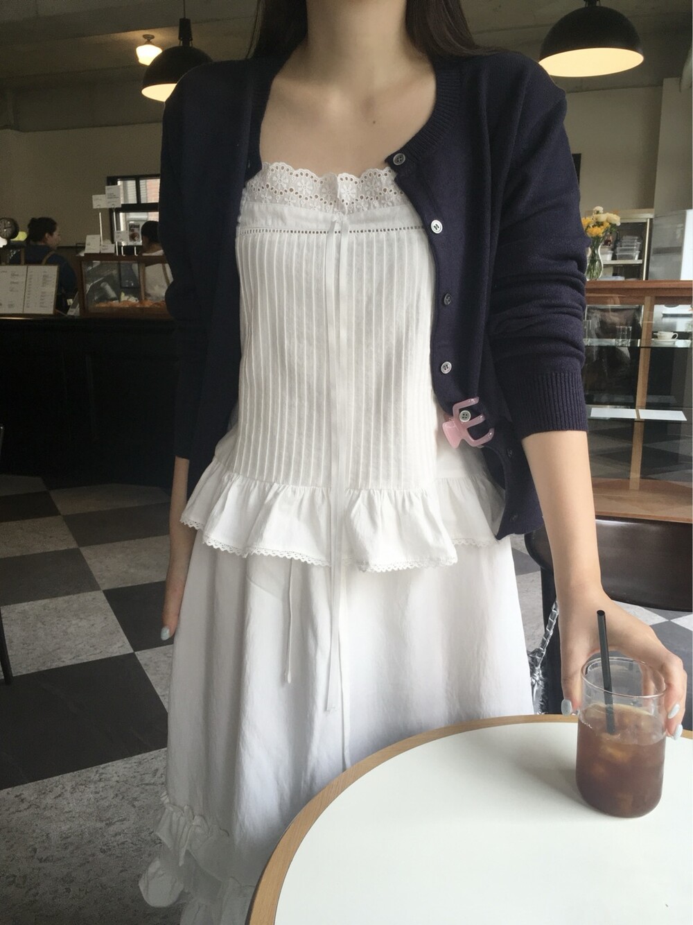 네크라인에 빈티지한 무드의 레이스 디테일이 더해지고, 그 밑으로 사다리 레이스를 더해 사랑스러움이 20000%