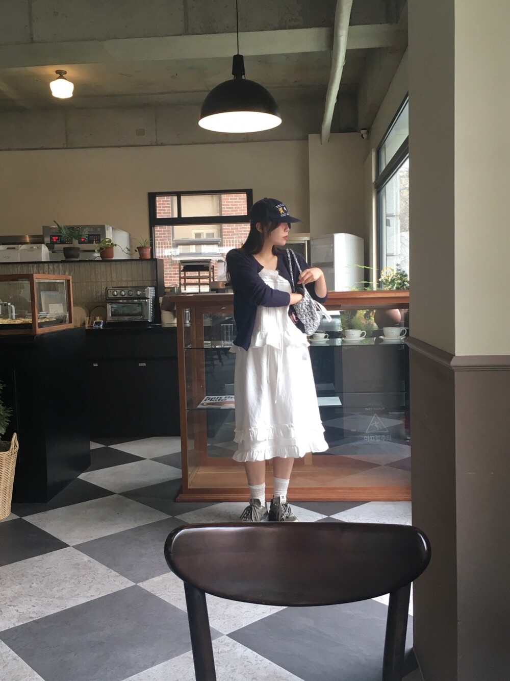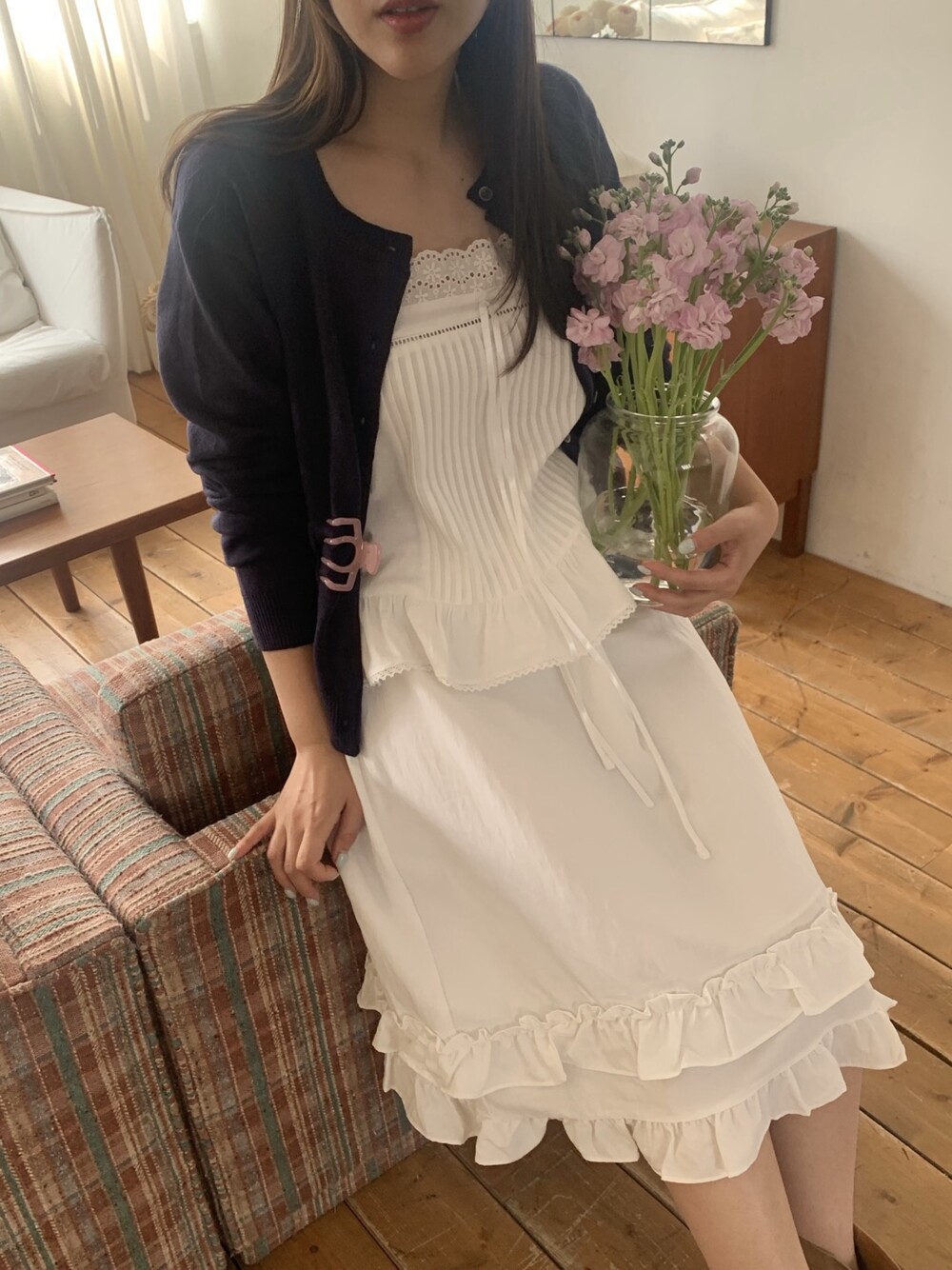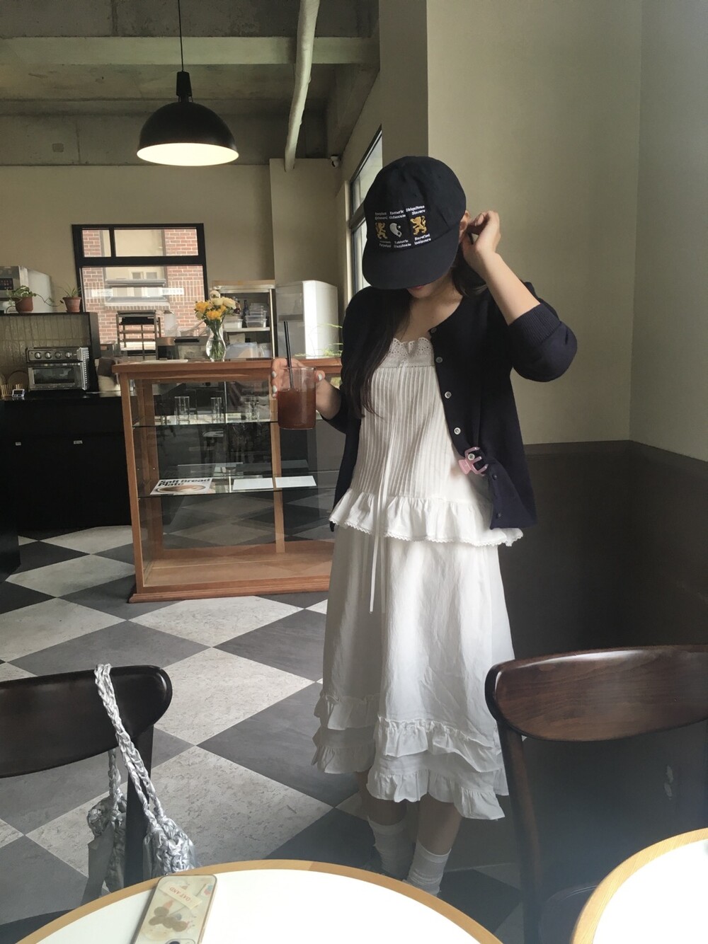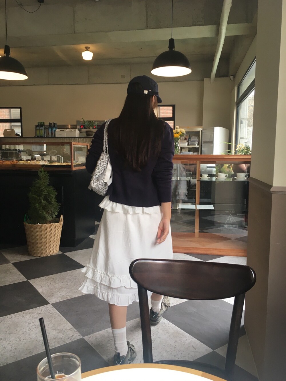 밑단 프릴 디테일로 움직일 때마다 살짝 퍼지는 라인이사랑스럽고 여성스러운 느낌을 더욱 강조해줘요.