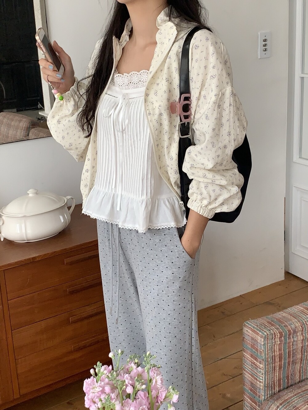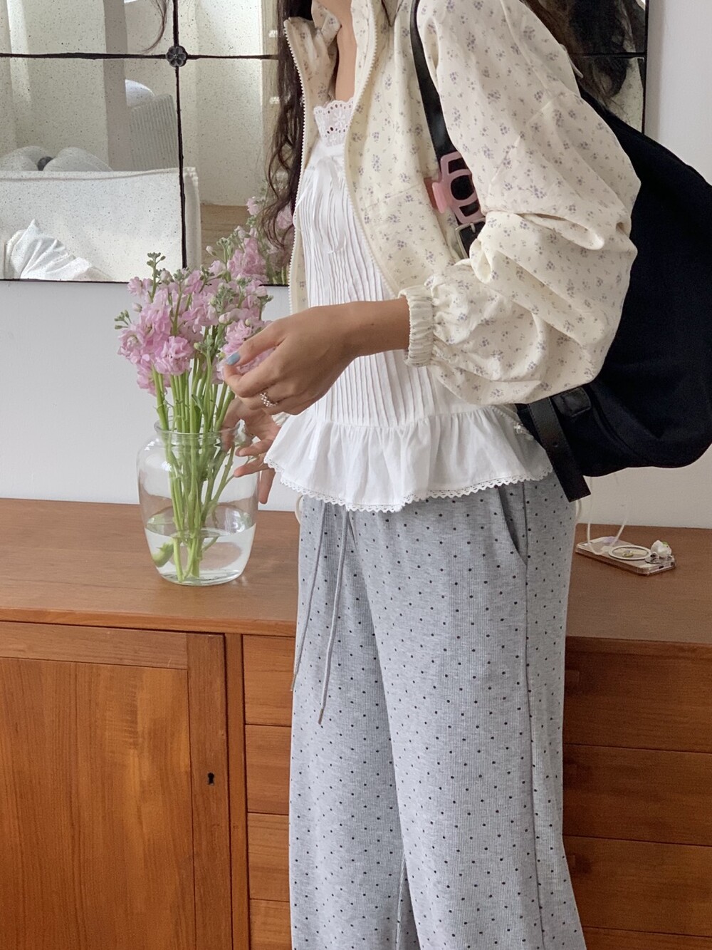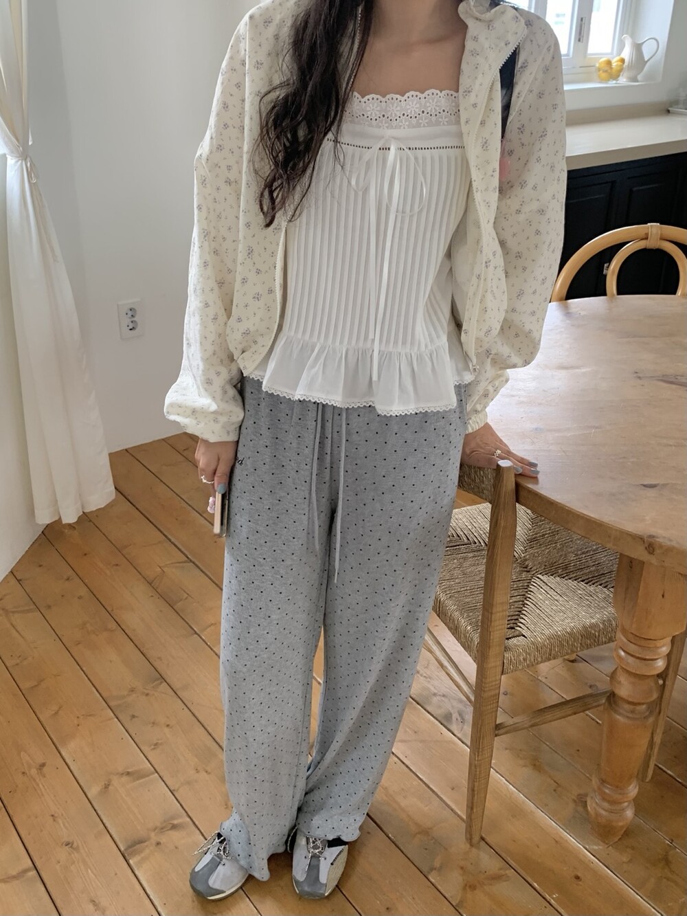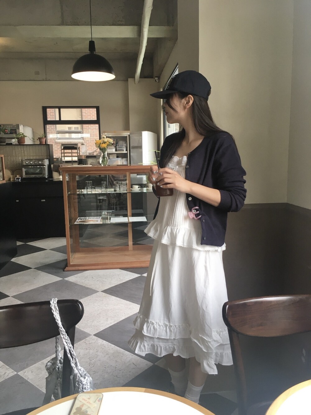 밑단 프릴 디테일로 움직일 때마다 살짝 퍼지는 라인이사랑스럽고 여성스러운 느낌을 더욱 강조해줘요.