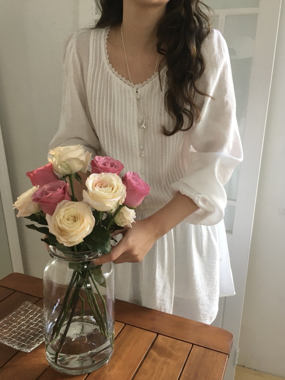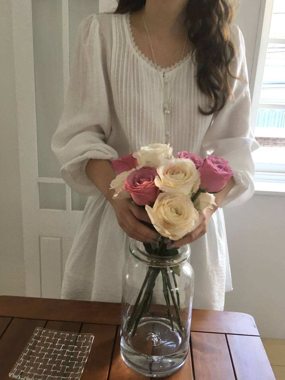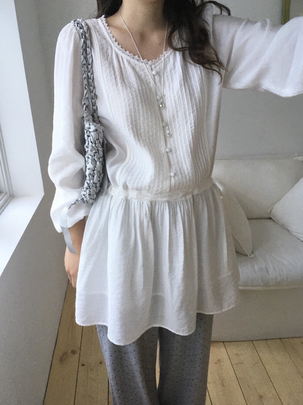 은은한 소재감으로 내추럴하면서 로맨틱한 분위기를 연출해줍니다