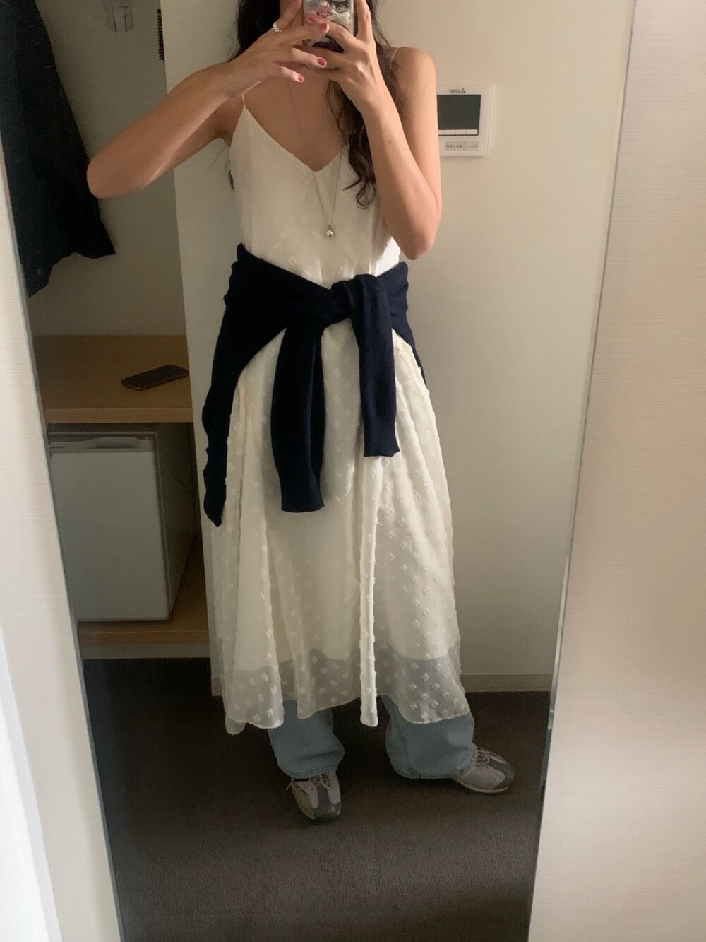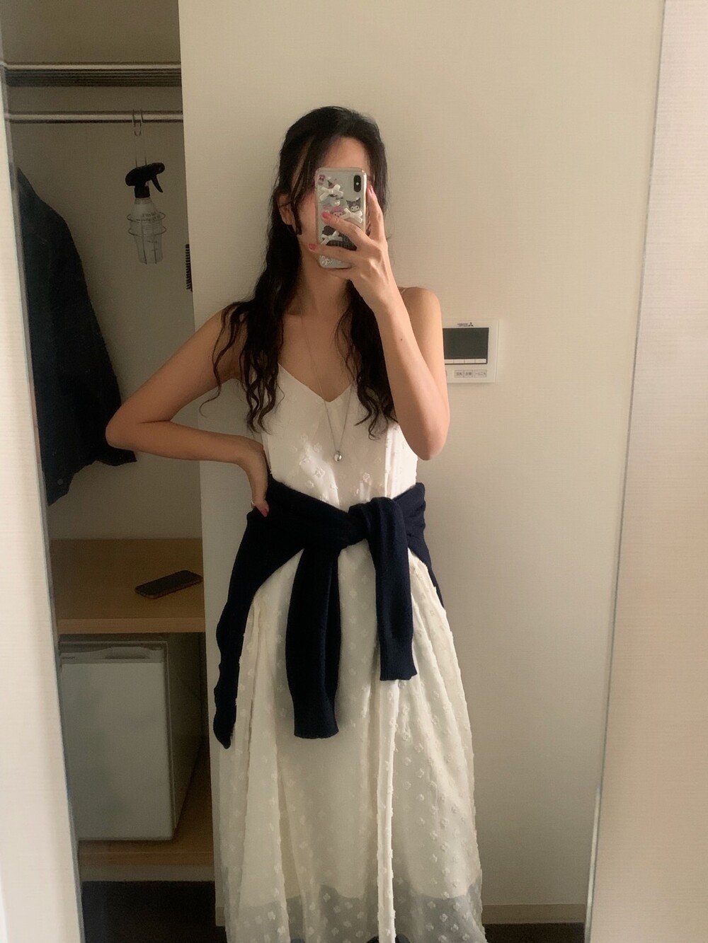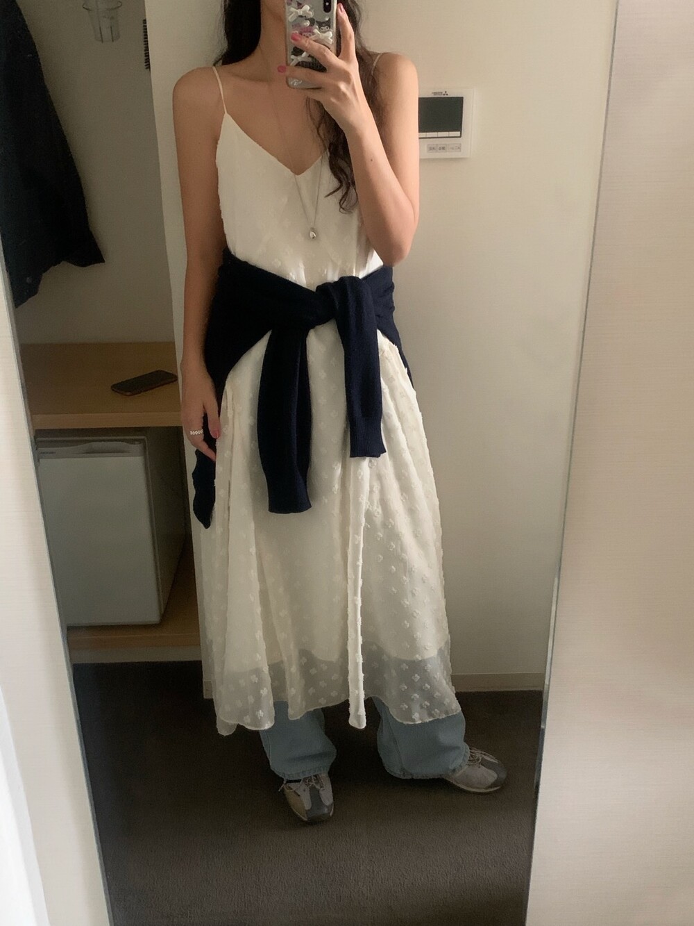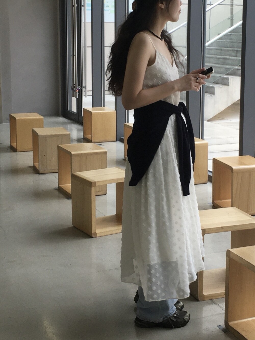 민소매가 부담스러우신 분들은 안에 티셔츠를 레이어드하거, 가디건 또는 자켓, 셔츠를 걸쳐 입어주시면