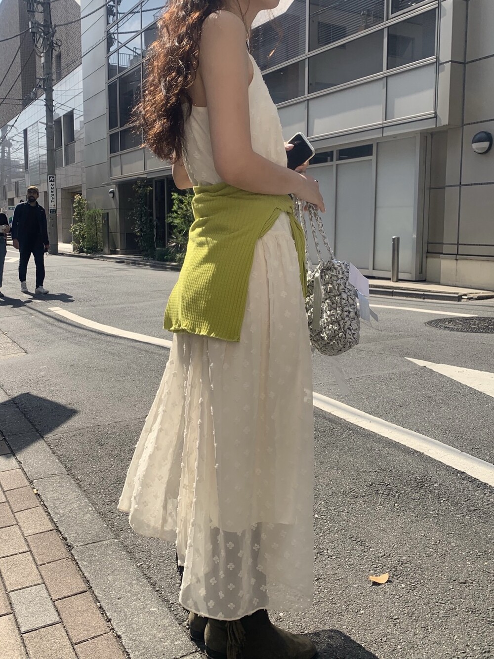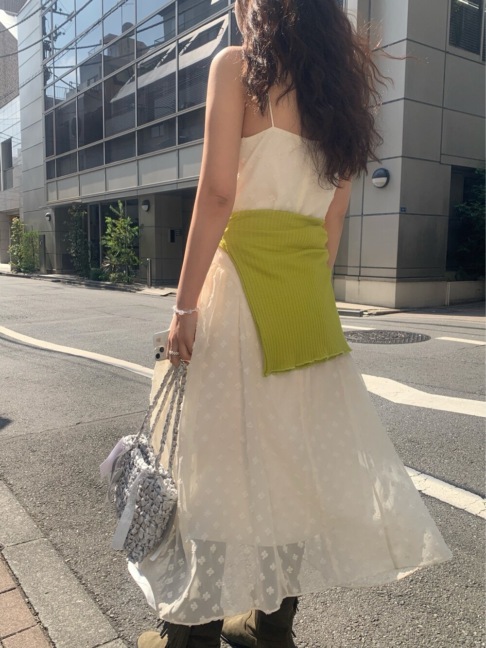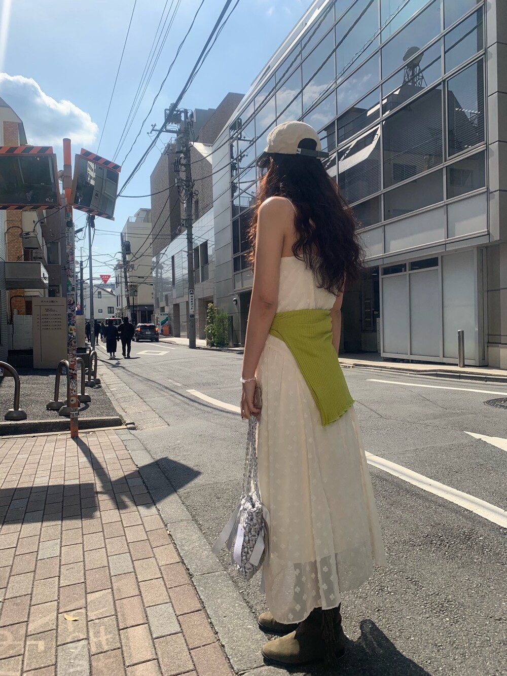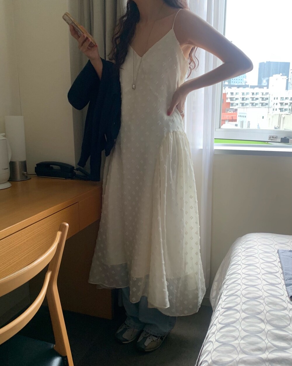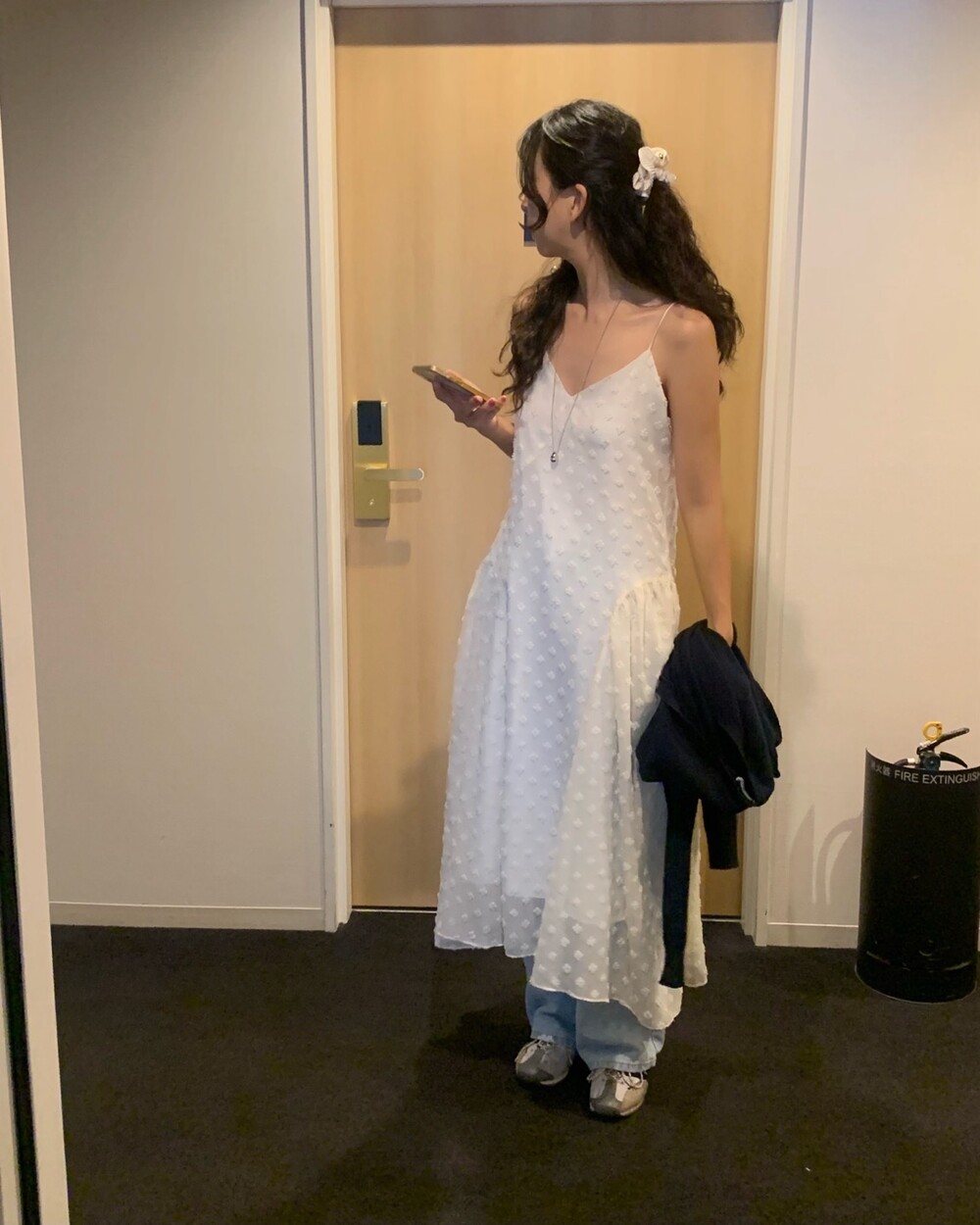 민소매가 부담스러우신 분들은 안에 티셔츠를 레이어드하거, 가디건 또는 자켓, 셔츠를 걸쳐 입어주시면